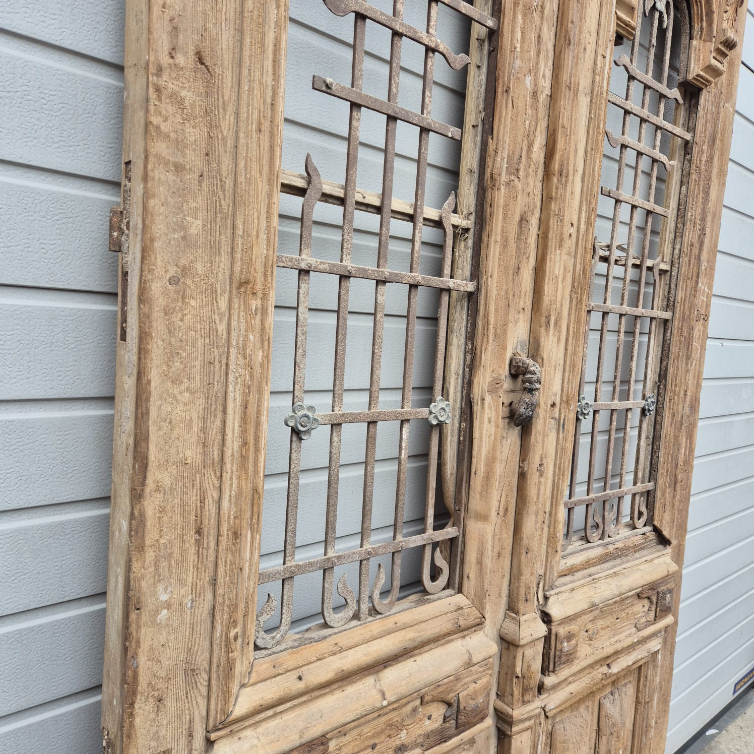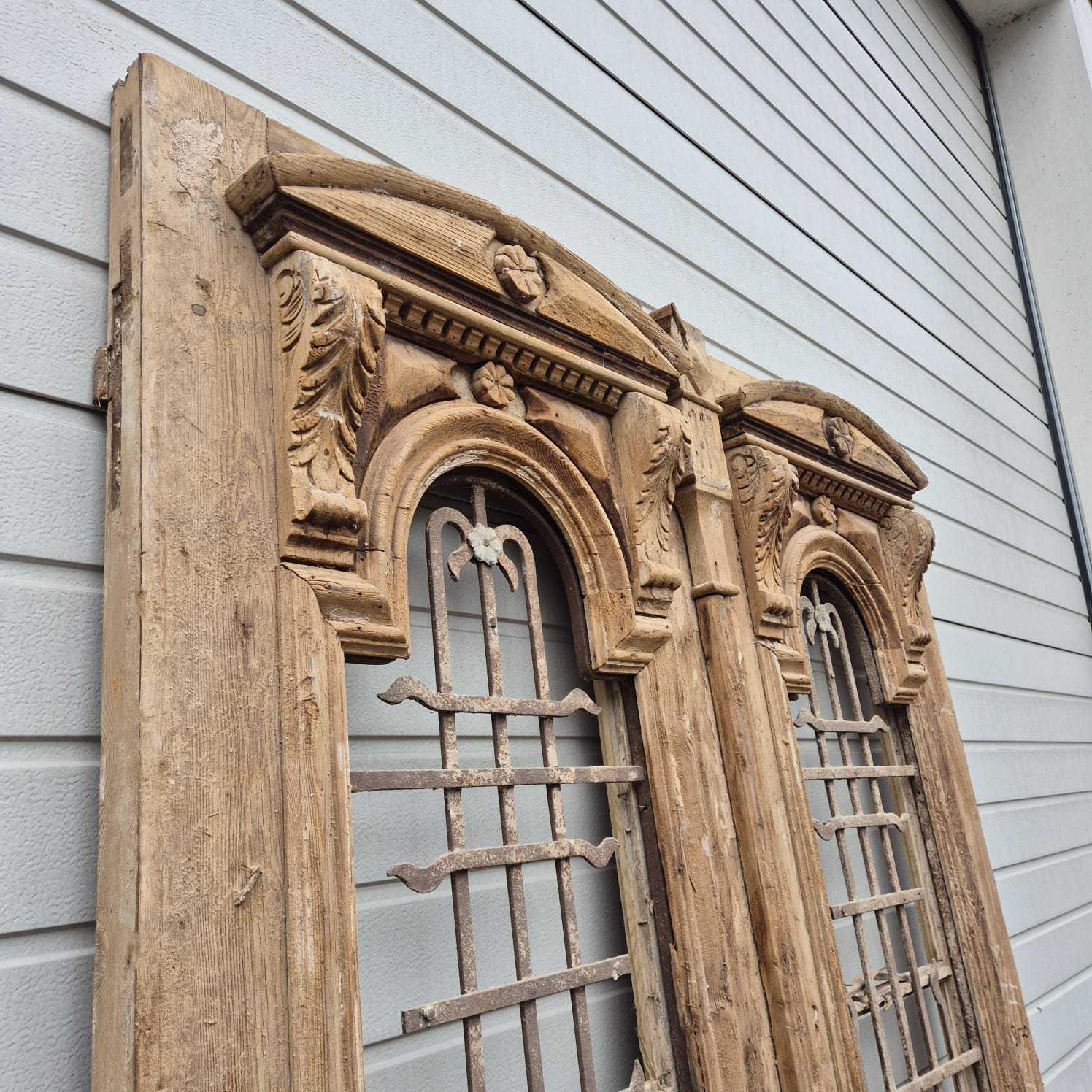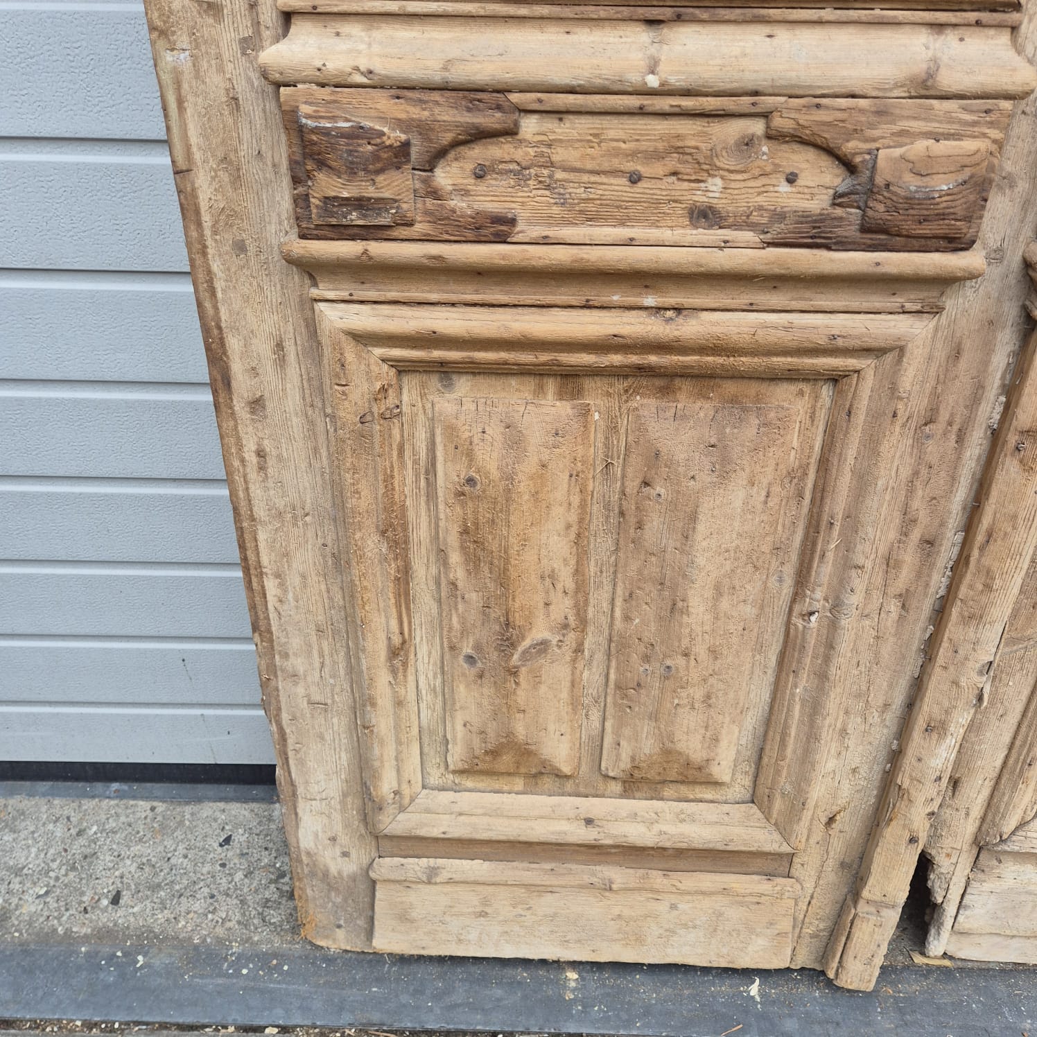 Geef uw huis een uniek karakter met dit originele exemplaar uit de beginjaren van de twintigste eeuw. Deze dubbele voordeur imponeert met zijn authentieke patina en het hoogwaardige vakmanschap dat typerend is voor het Gründerzeit tijdperk. Of hij nu professioneel gerestaureerd wordt of in zijn charmante 'shabby chic'-staat behouden blijft, het is een echte blikvanger voor historische panden, landhuizen of als opvallend contrasterend element in moderne architectuur.