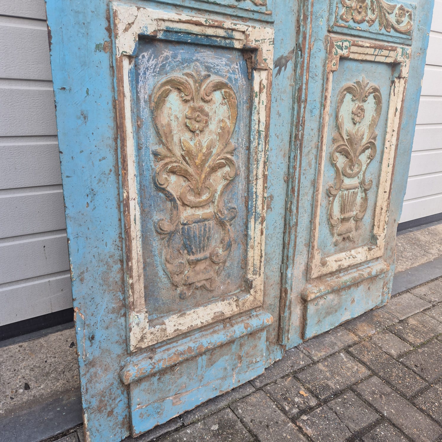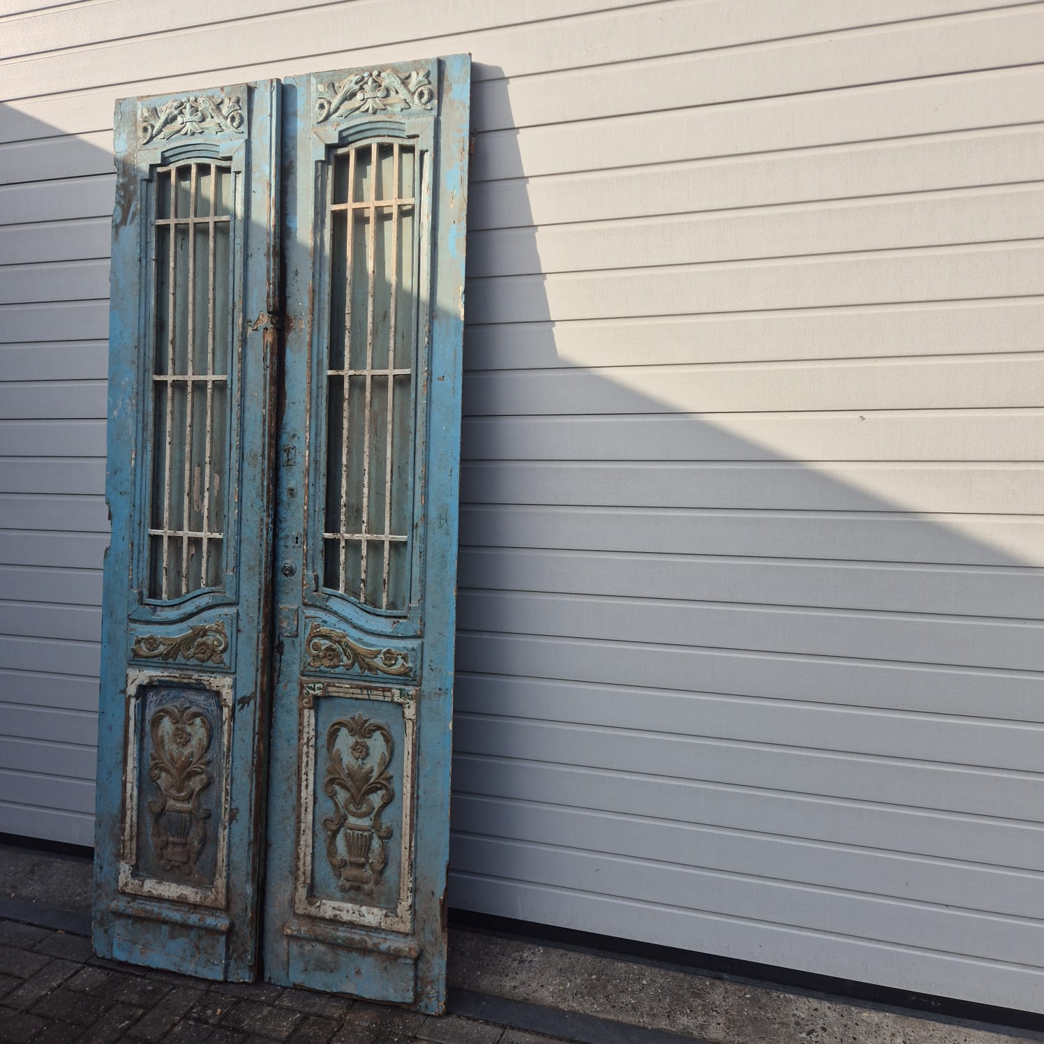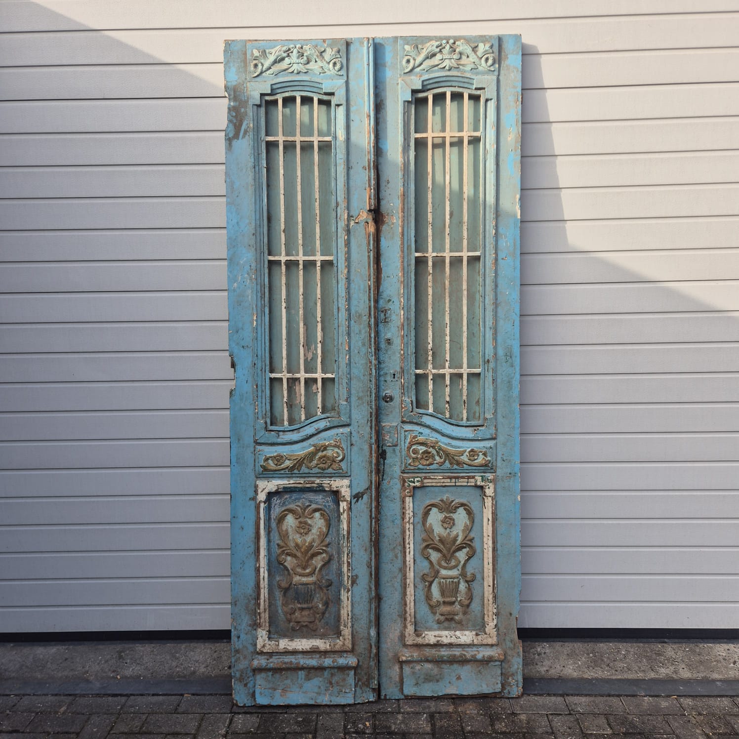 Geef uw huis een uniek karakter met dit originele exemplaar uit de beginjaren van de vorige eeuw. Deze dubbele voordeur imponeert met zijn authentieke patina en hoogwaardige Jugendstil -vakmanschap. Of u hem nu professioneel laat restaureren of in zijn charmante 'shabby chic'-staat laat, het is een echte blikvanger voor historische panden, landhuizen of als opvallend contrasterend element in moderne architectuur.
