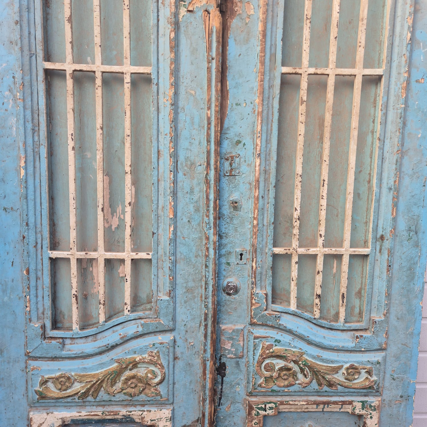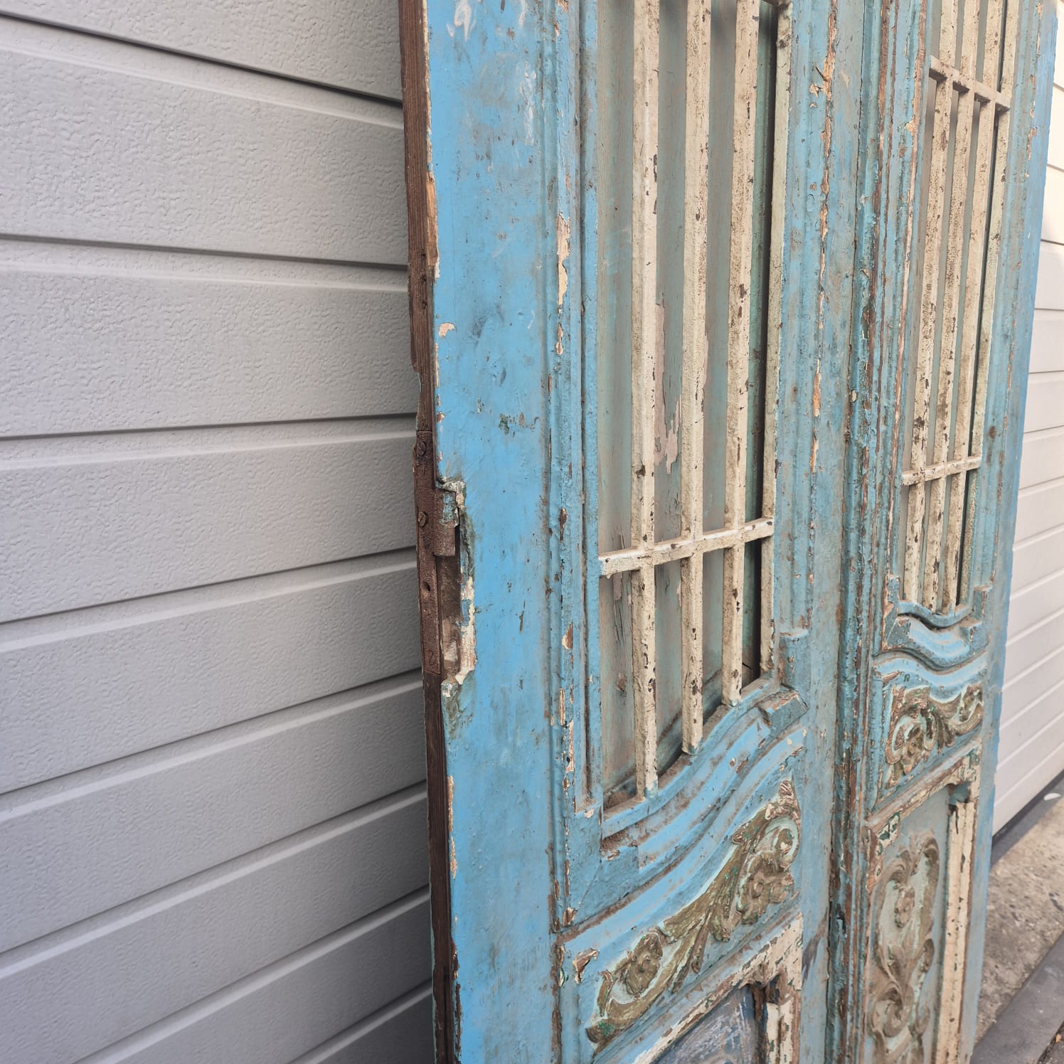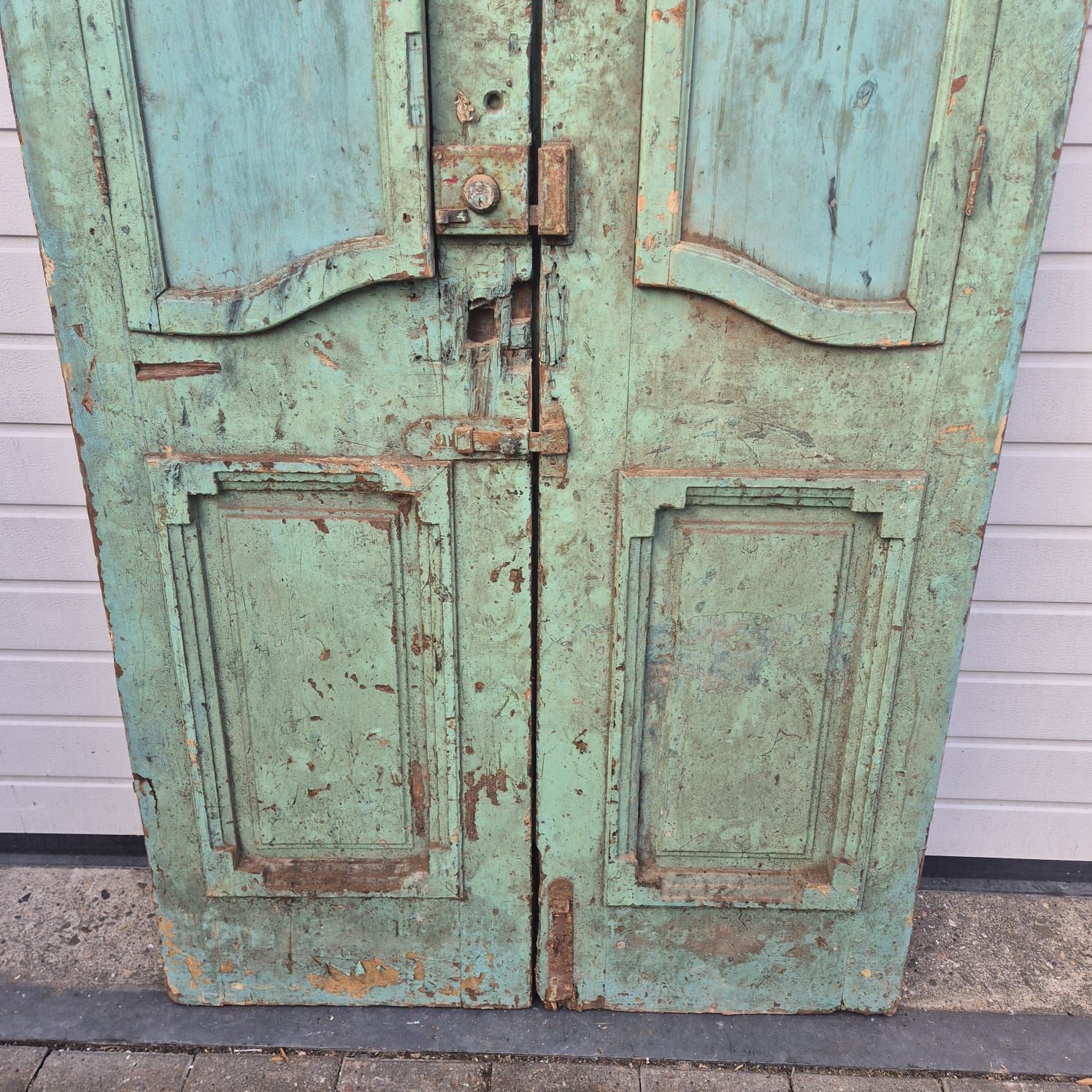 Geef uw huis een uniek karakter met dit originele exemplaar uit de beginjaren van de vorige eeuw. Deze dubbele voordeur imponeert met zijn authentieke patina en hoogwaardige Jugendstil -vakmanschap. Of u hem nu professioneel laat restaureren of in zijn charmante 'shabby chic'-staat laat, het is een echte blikvanger voor historische panden, landhuizen of als opvallend contrasterend element in moderne architectuur.