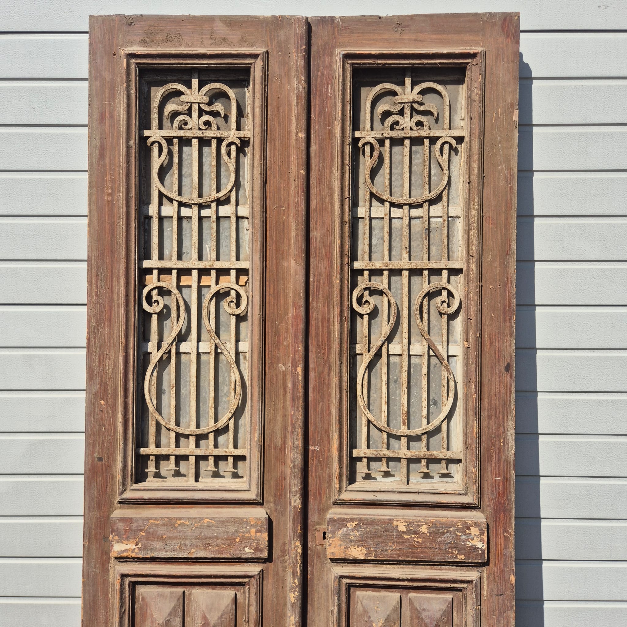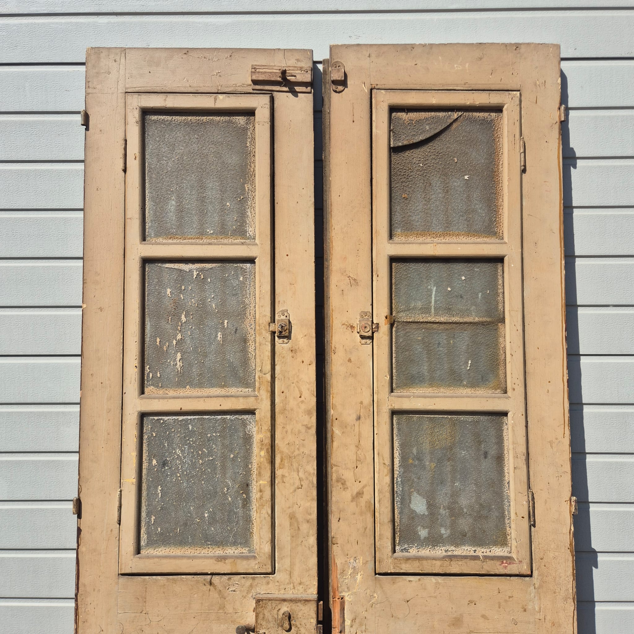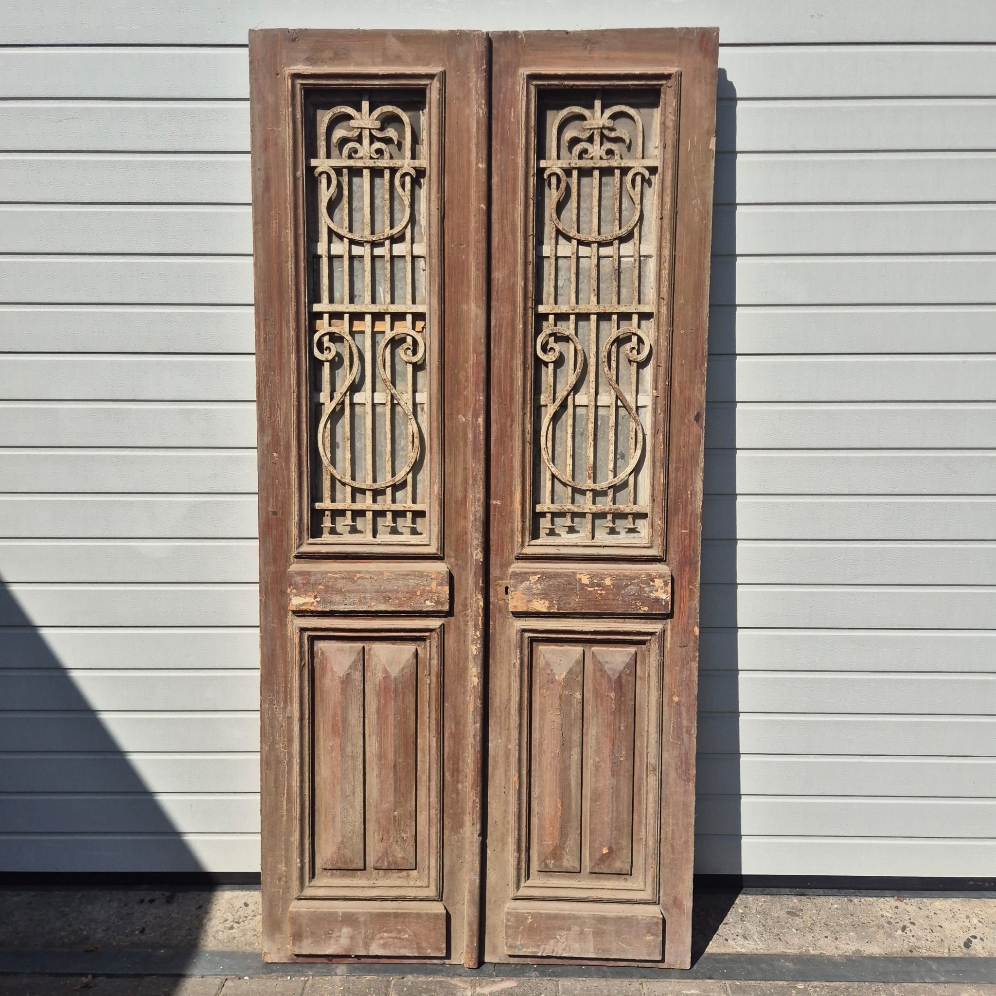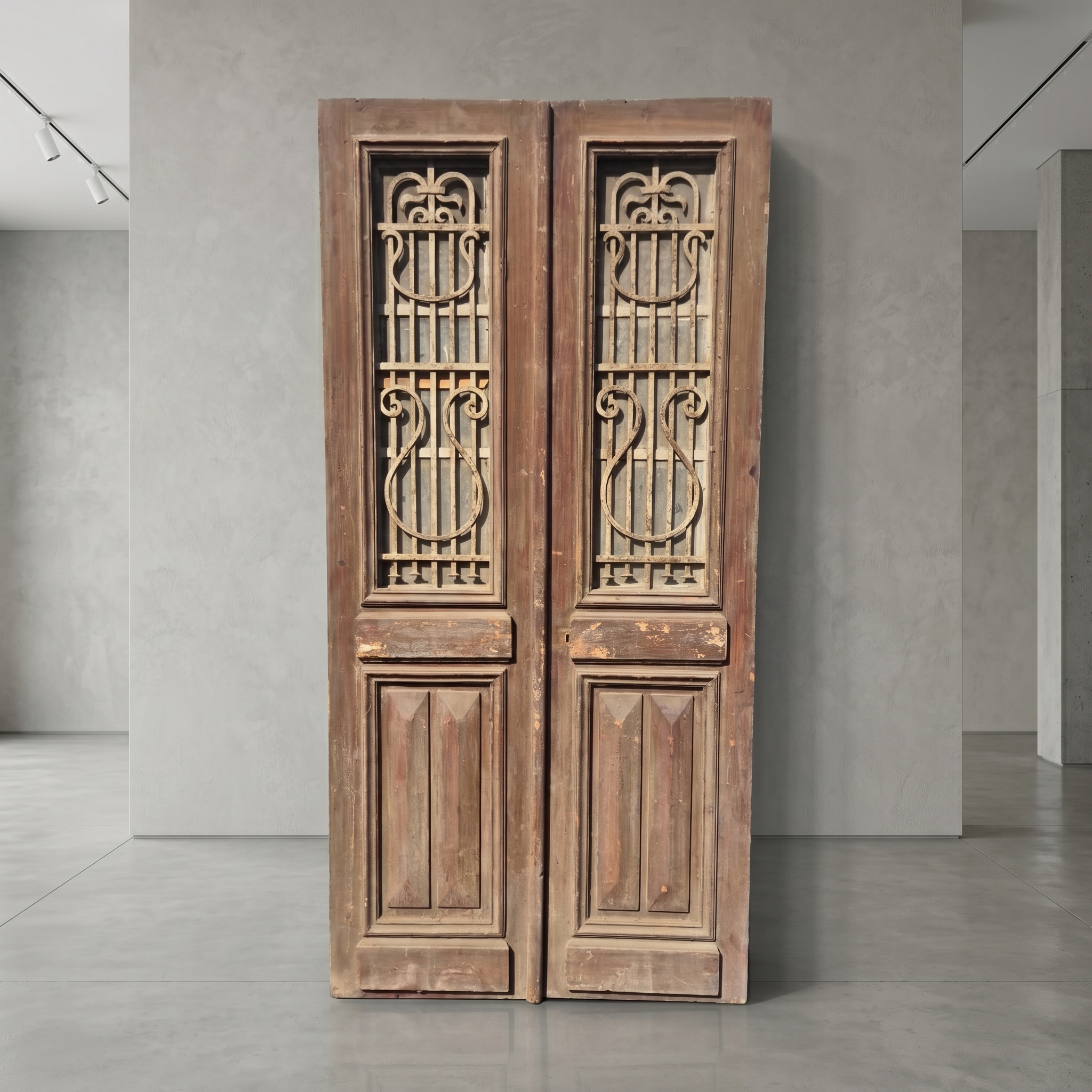 Historisch ontwerp: De deurvleugels zijn in ongerestaureerde originele staat met een fascinerende, meerlaagse bruine afwerking die een unieke patina heeft ontwikkeld.