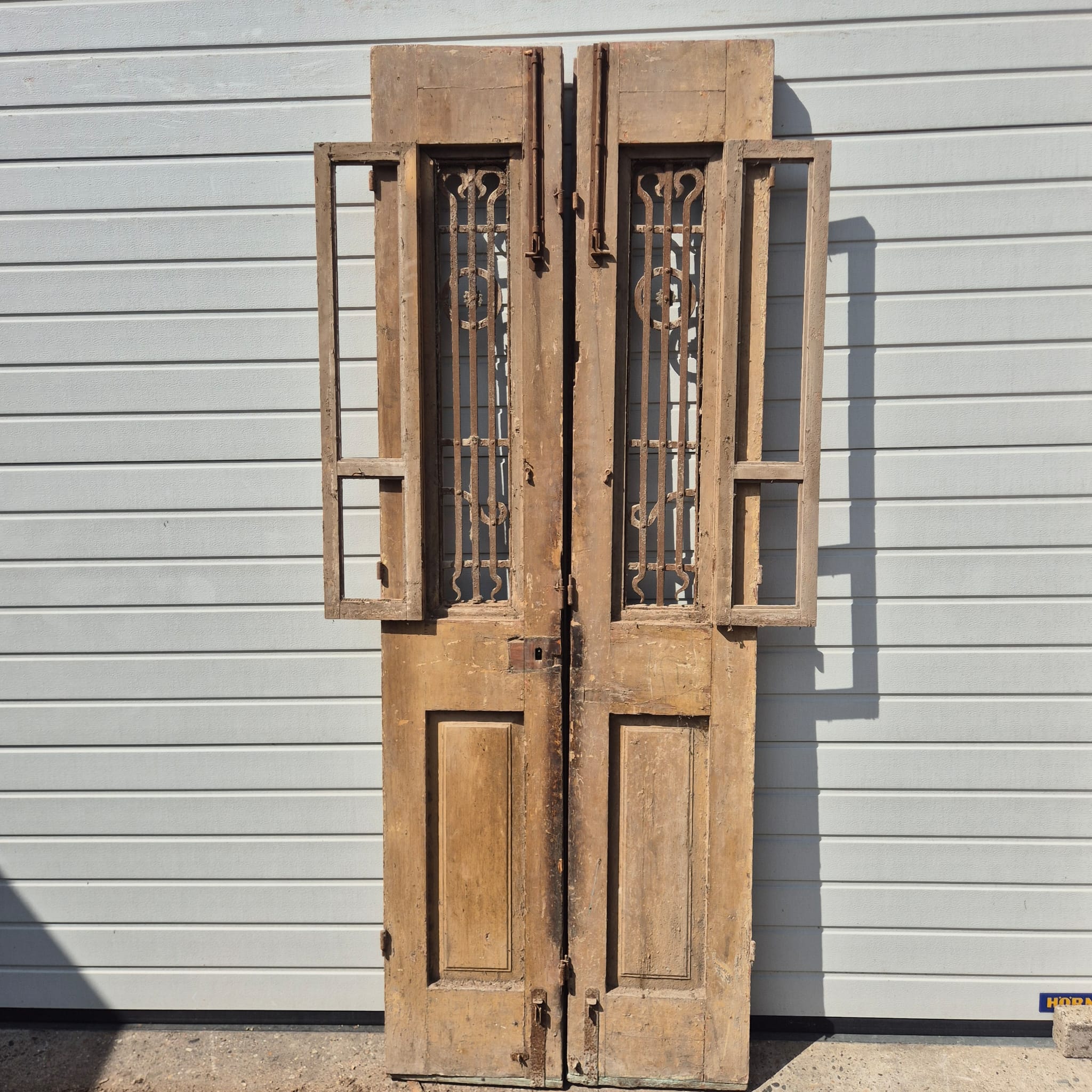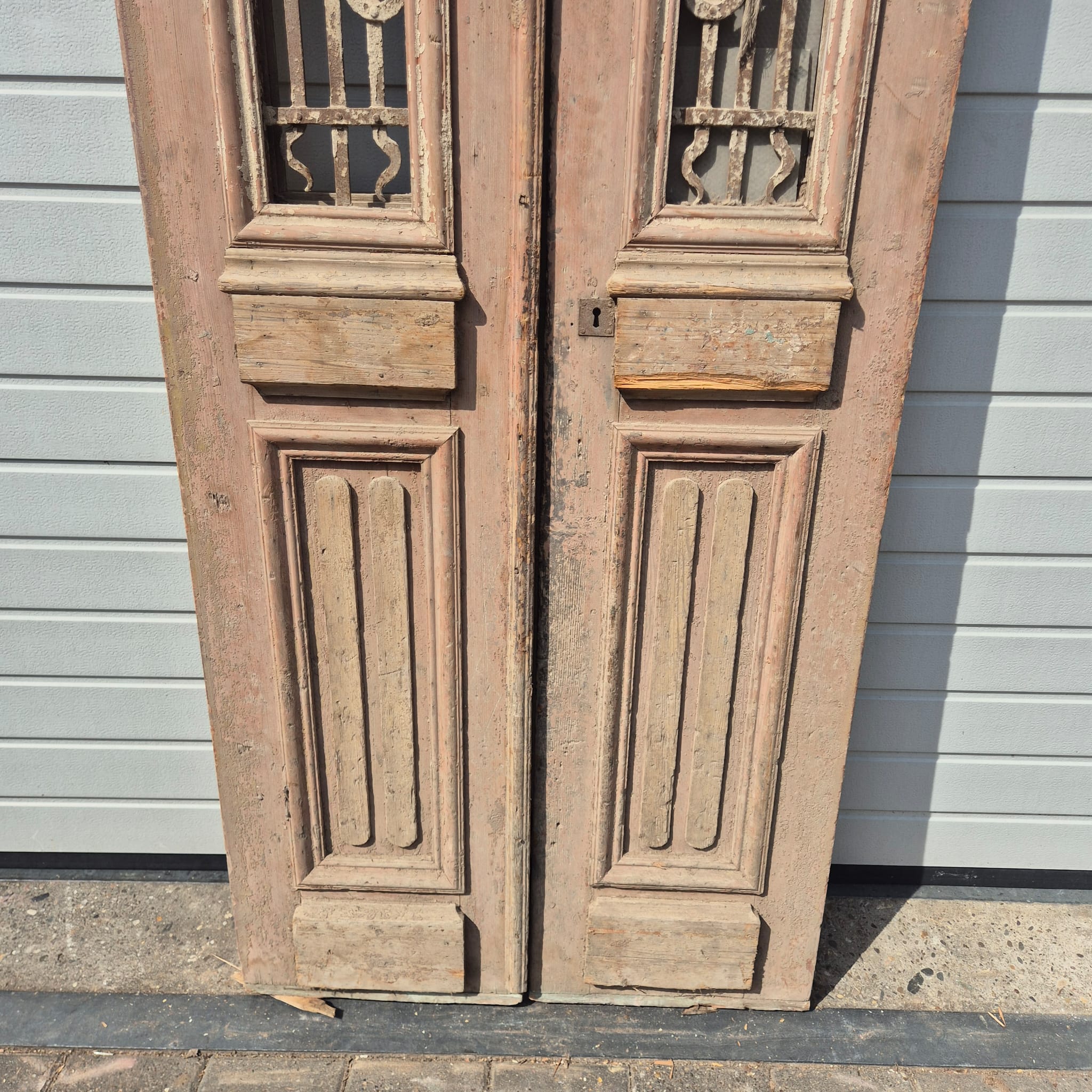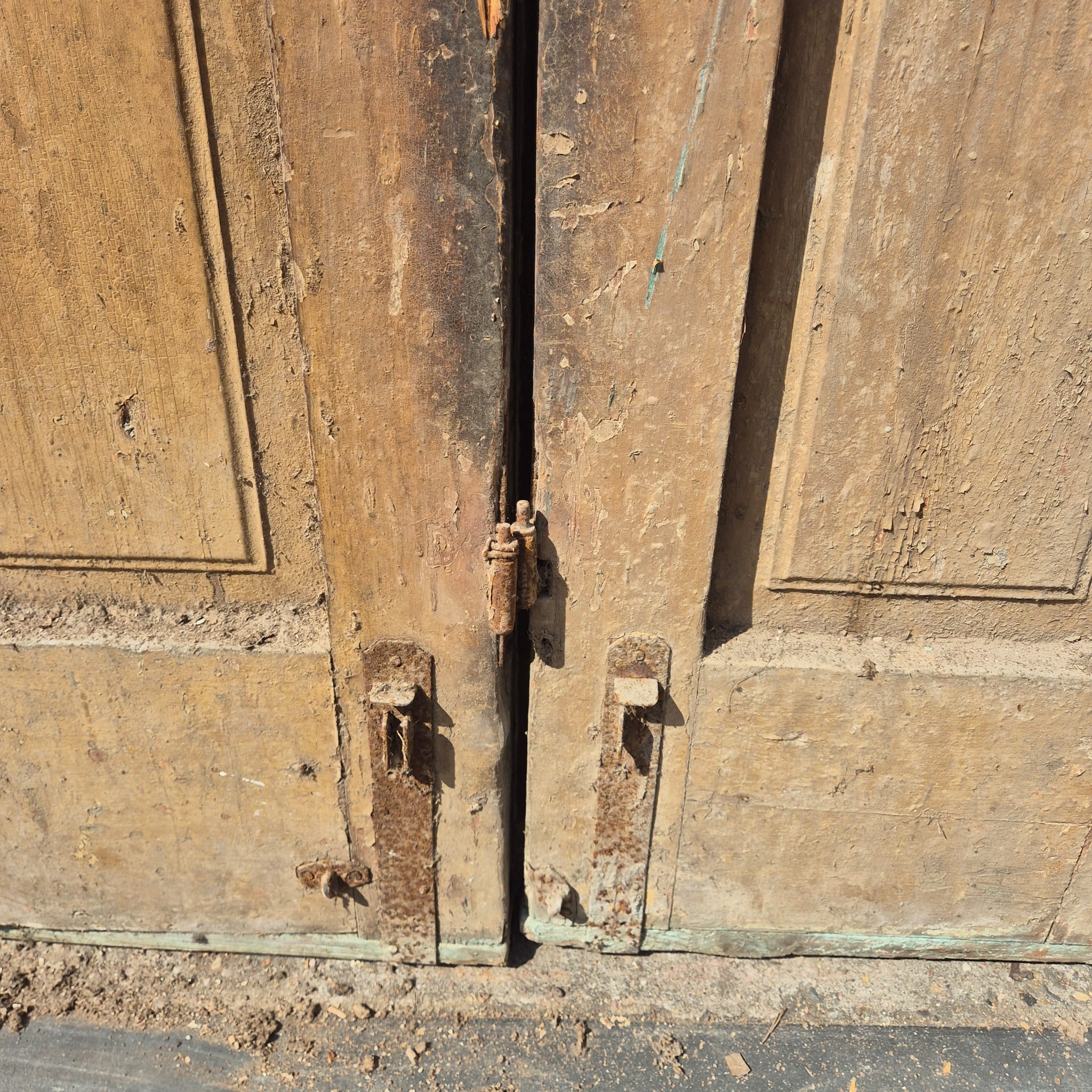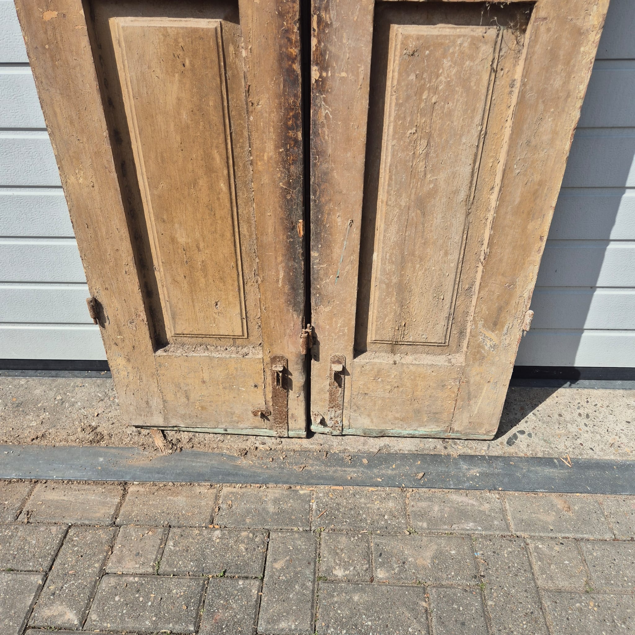 Historisch ontwerp: De deurvleugels zijn in originele, ongerestaureerde staat met een fascinerende, meerlaagse beige afwerking die een unieke patina heeft ontwikkeld.