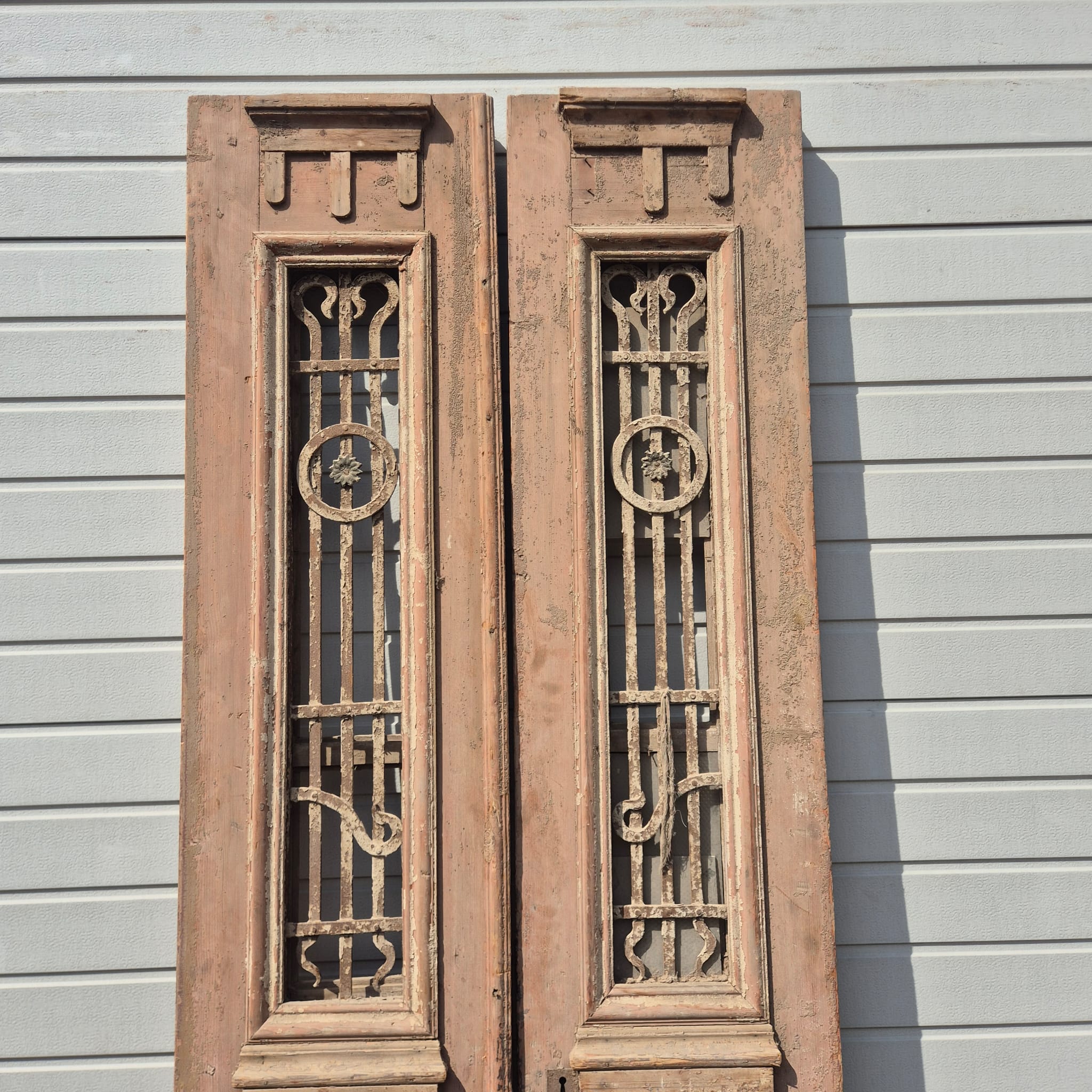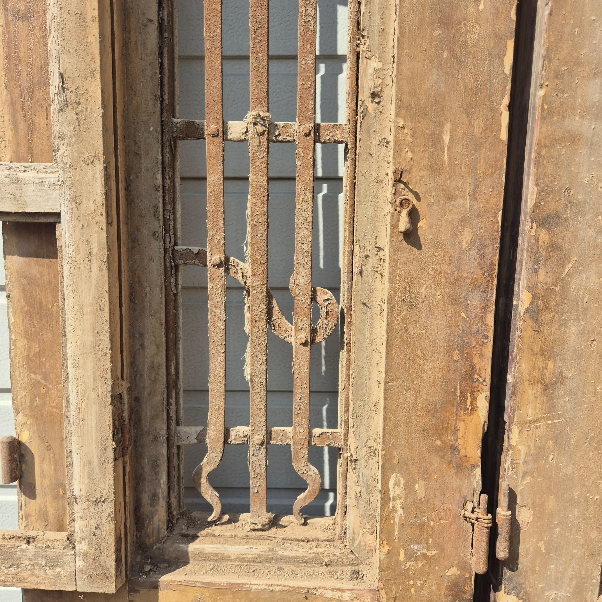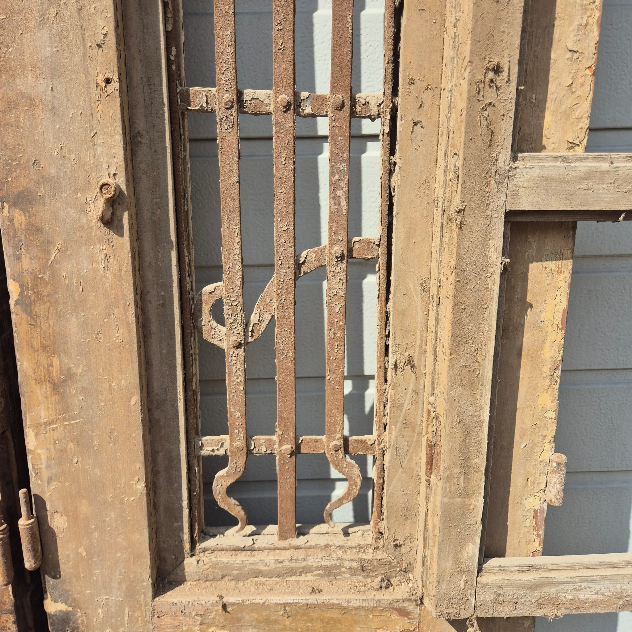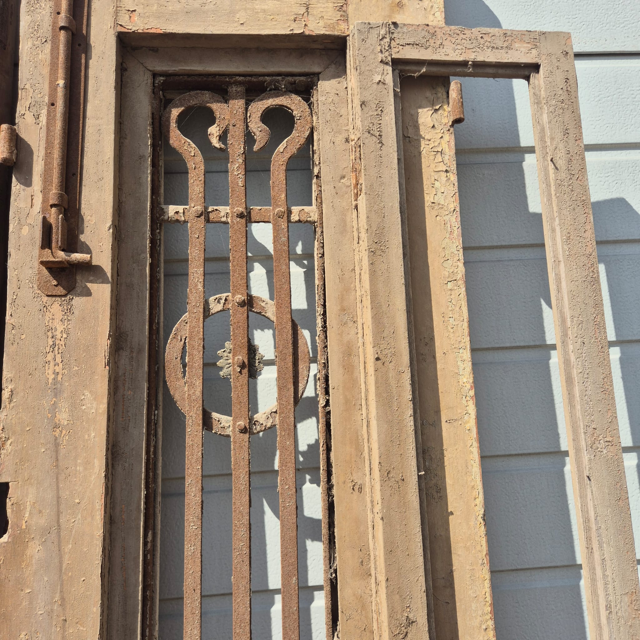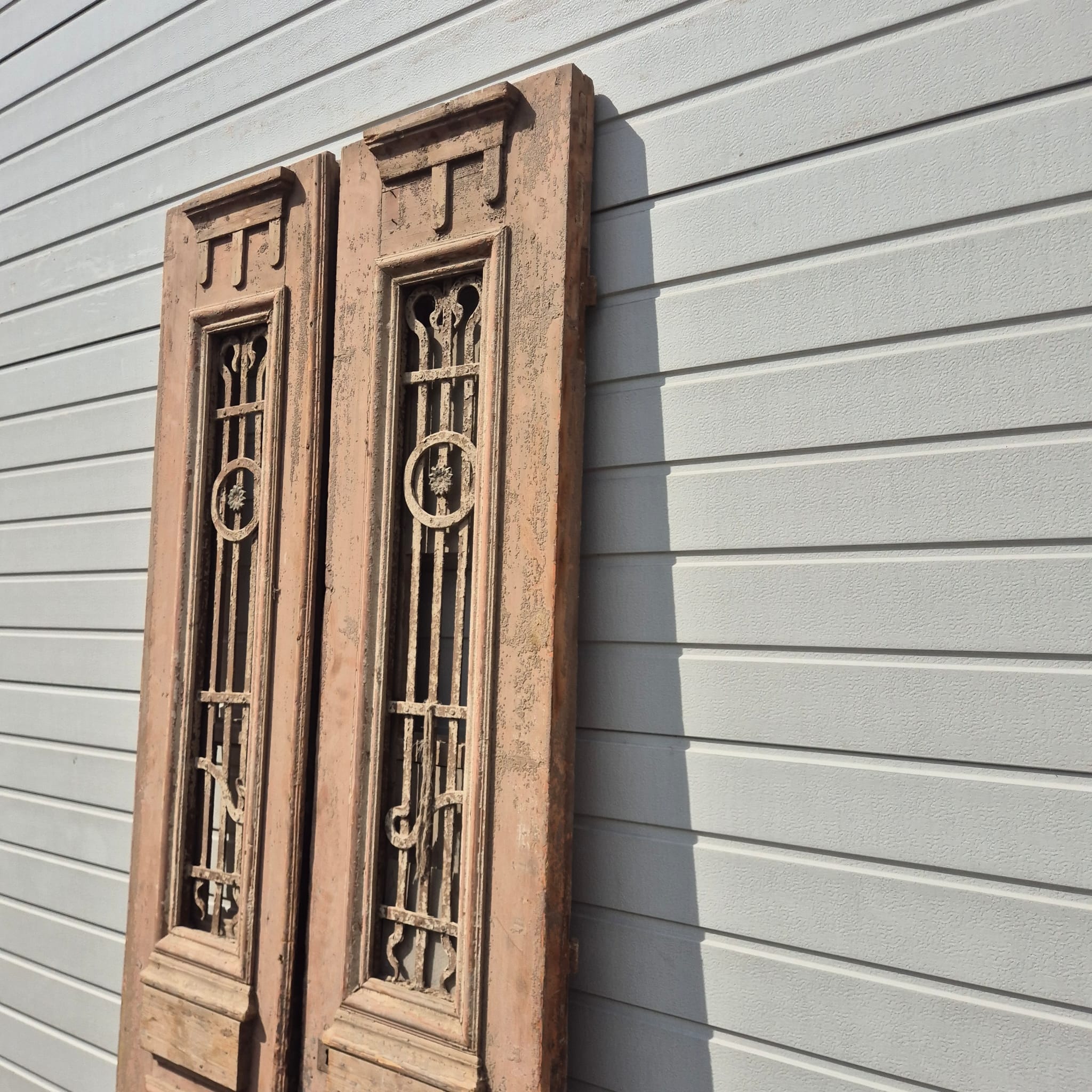 Historisch ontwerp: De deurvleugels zijn in originele, ongerestaureerde staat met een fascinerende, meerlaagse beige afwerking die een unieke patina heeft ontwikkeld.
