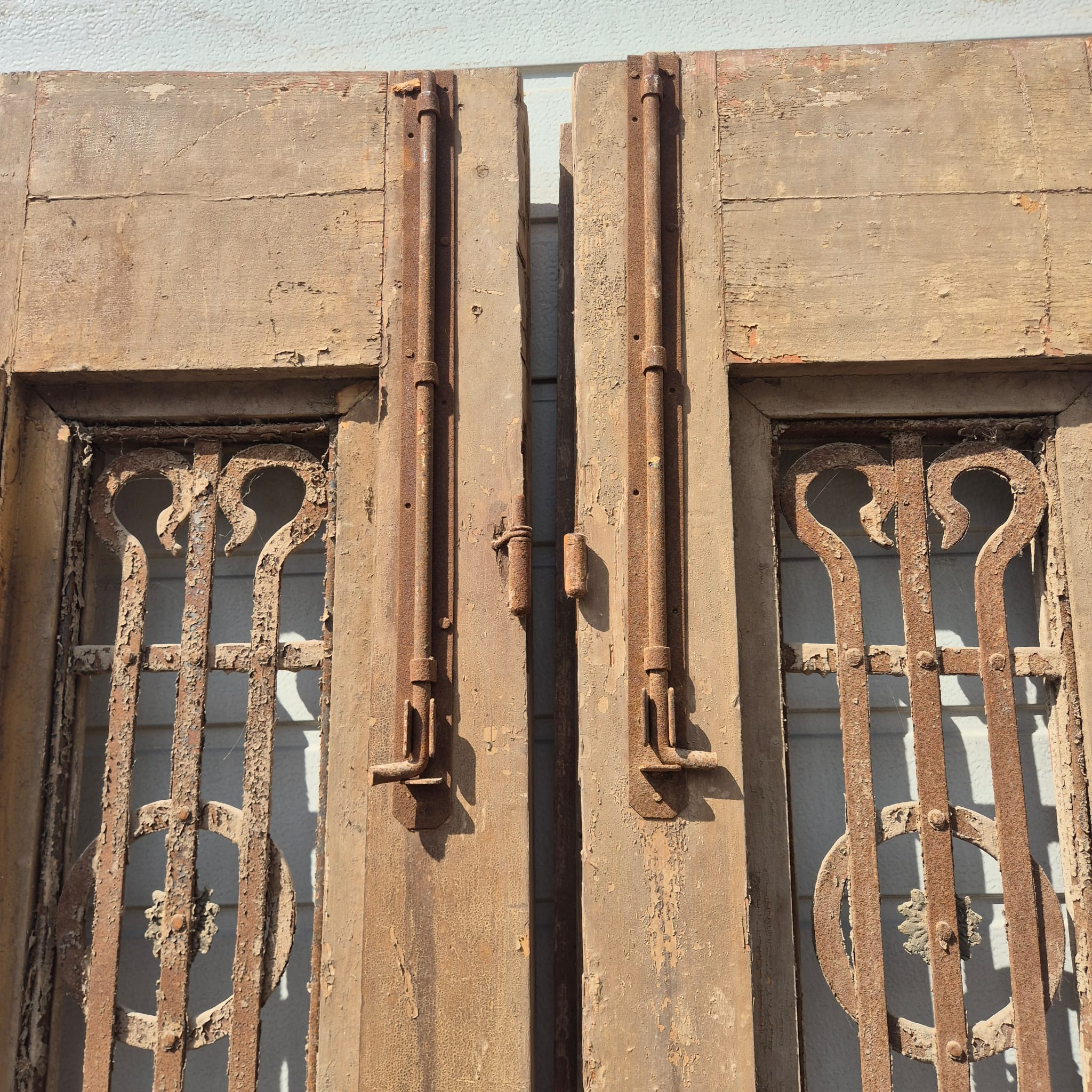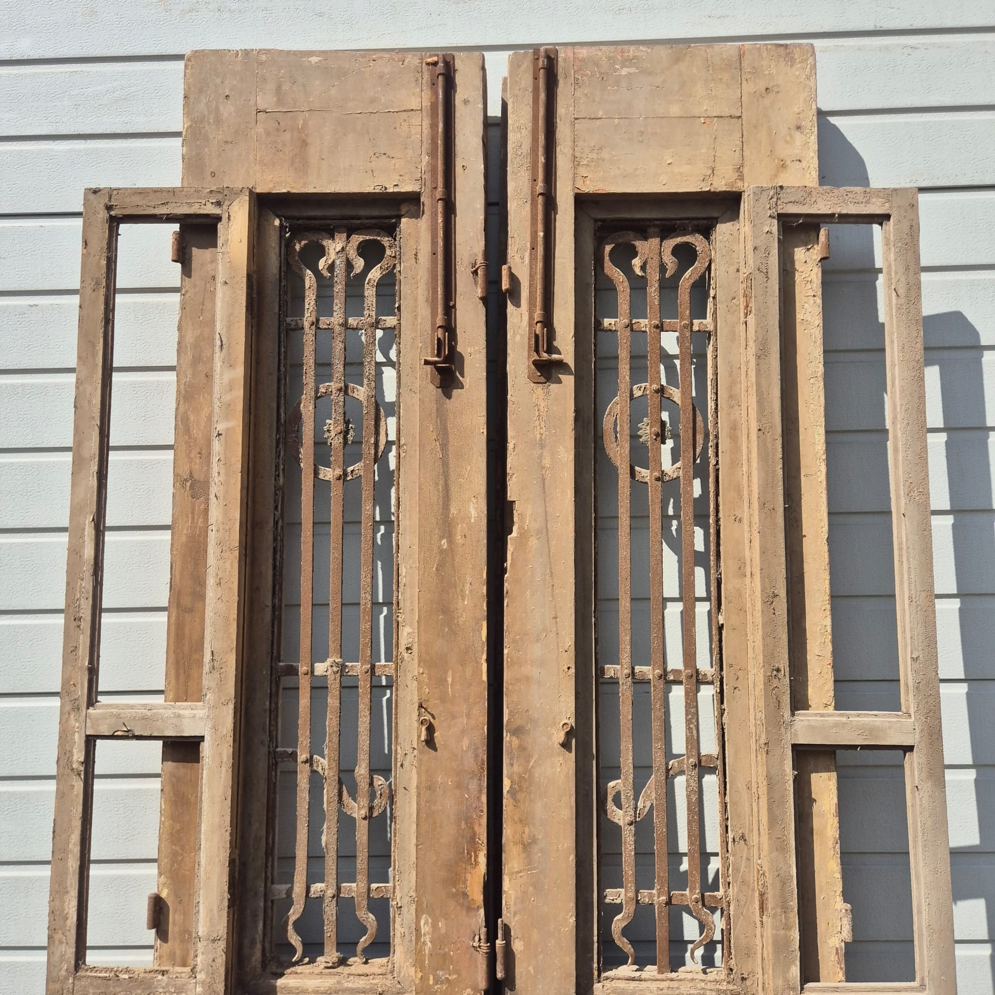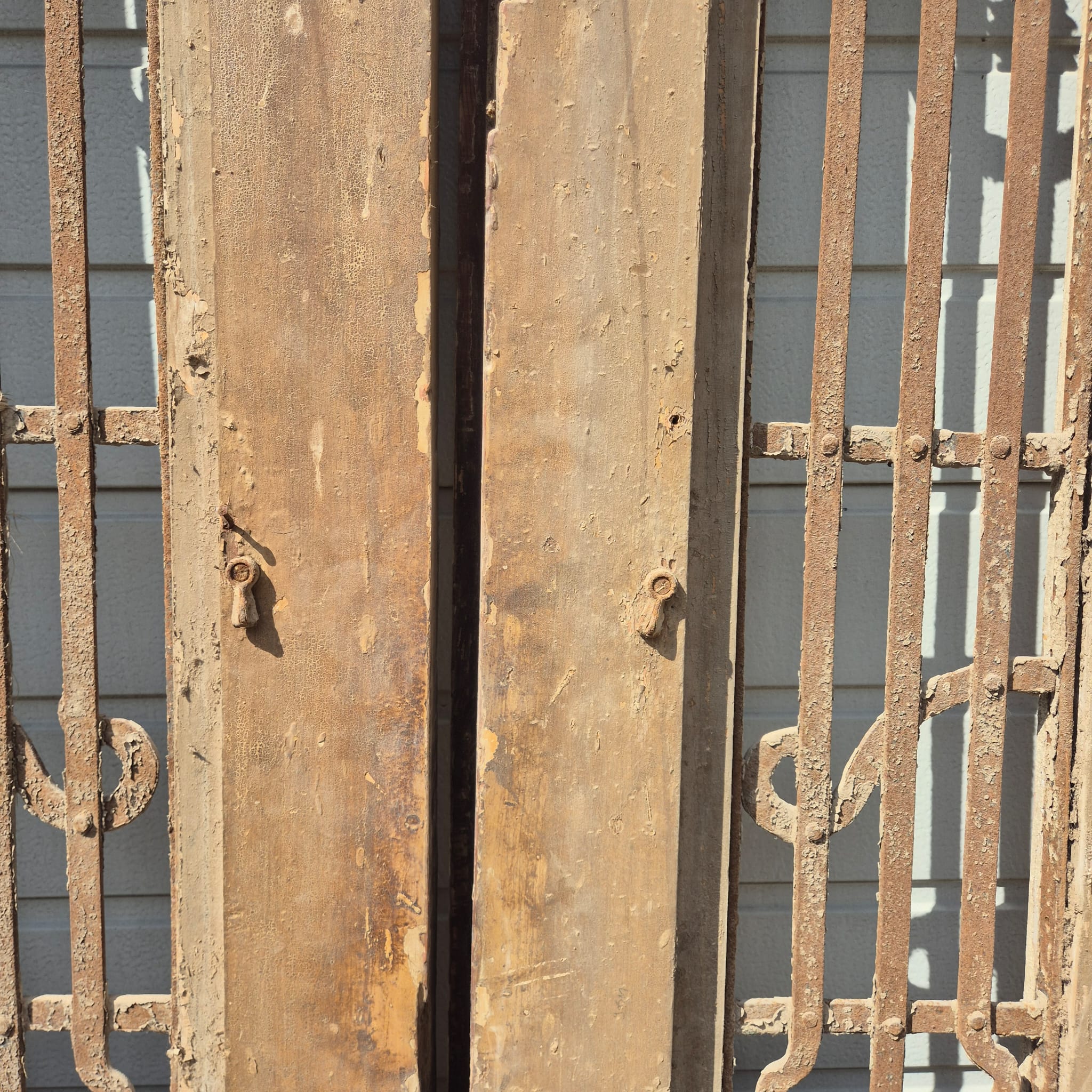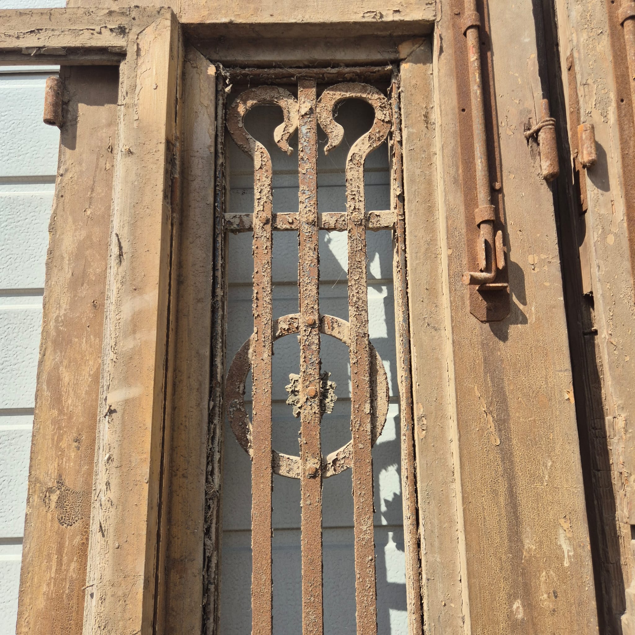 Historisch ontwerp: De deurvleugels zijn in originele, ongerestaureerde staat met een fascinerende, meerlaagse beige afwerking die een unieke patina heeft ontwikkeld.