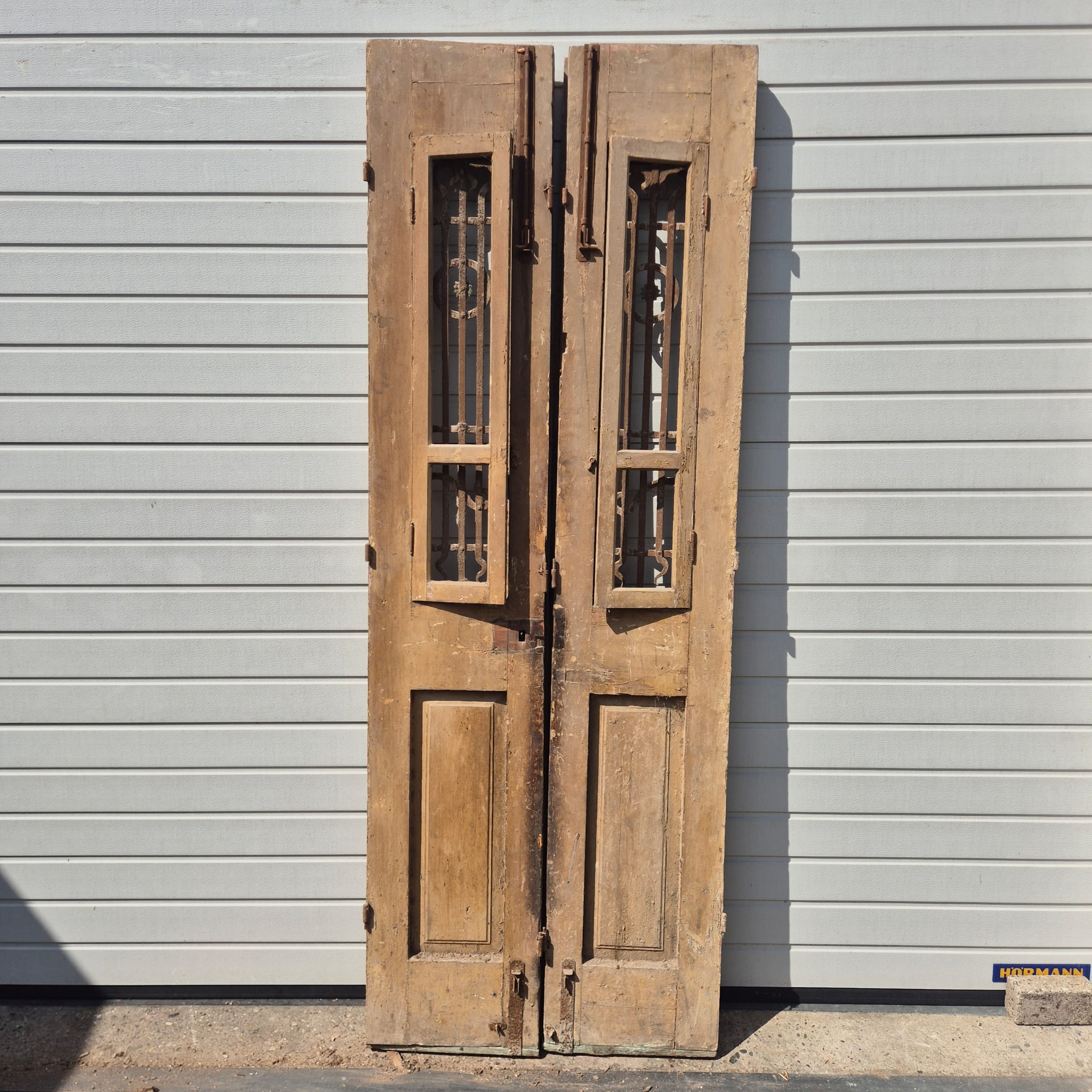 Geef uw bouwproject een uniek karakter! Te koop aangeboden: een indrukwekkende, massieve dubbele voordeur uit circa 1900. Dit architectonische juweel betovert met zijn imposante verschijning en meesterlijke vakmanschap.
