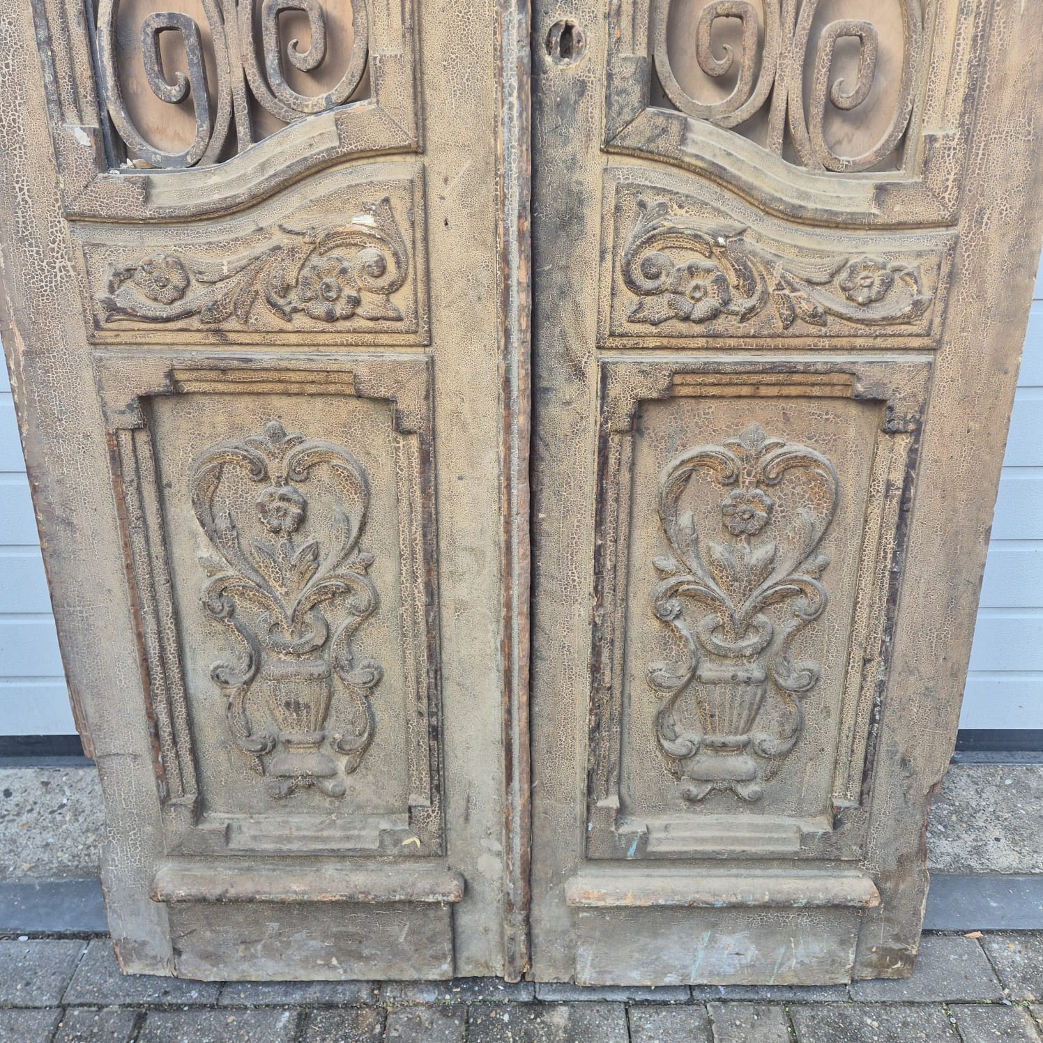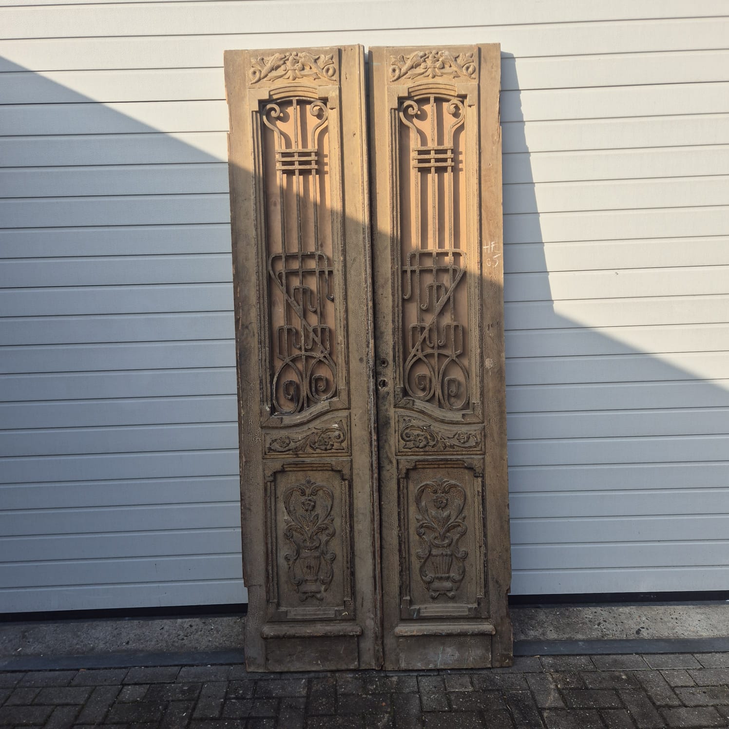 Geef uw huis een uniek karakter met dit originele exemplaar uit de beginjaren van de vorige eeuw. Deze dubbele voordeur imponeert met zijn authentieke patina en hoogwaardige Jugendstil -vakmanschap. Of u hem nu professioneel laat restaureren of in zijn charmante 'shabby chic'-staat laat, het is een echte blikvanger voor historische panden, landhuizen of als opvallend contrasterend element in moderne architectuur.