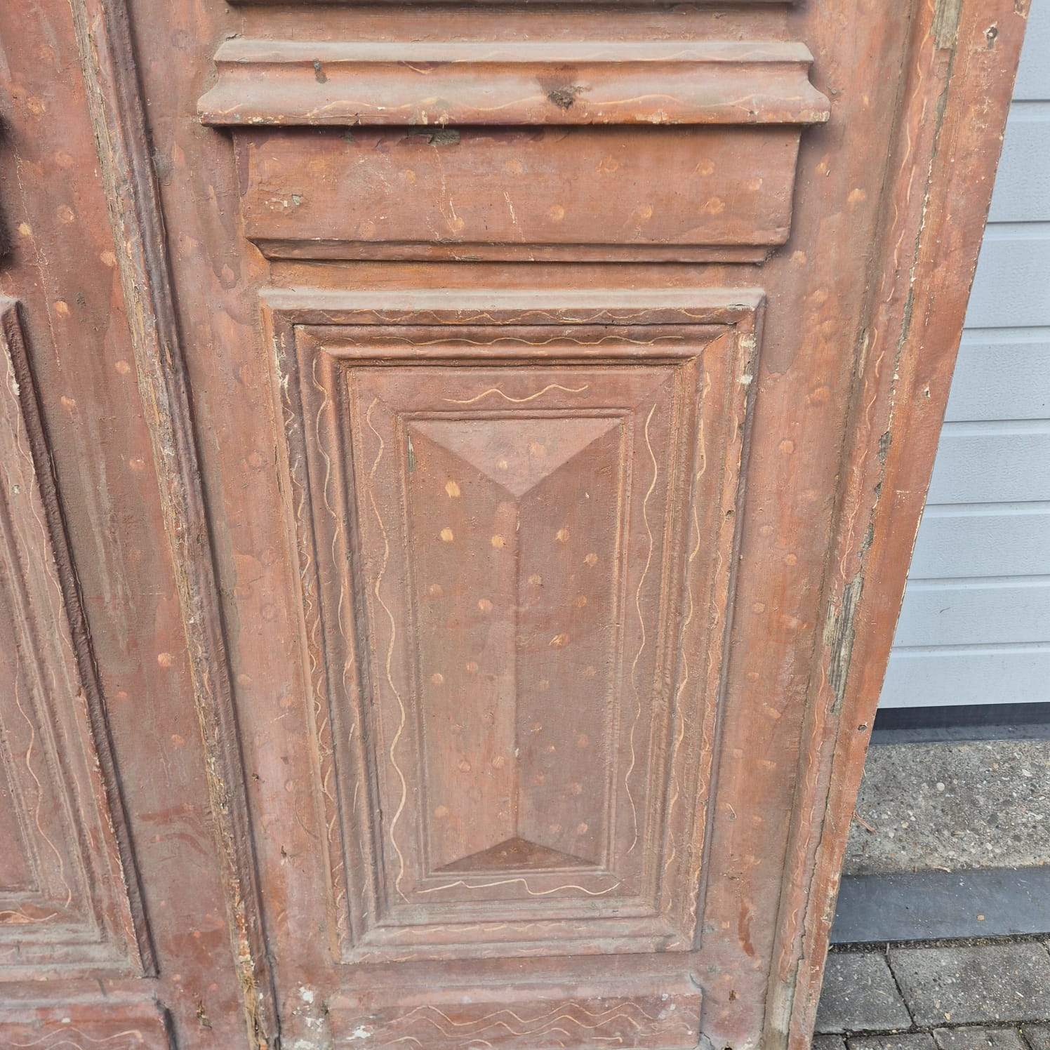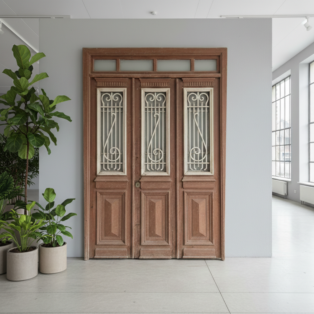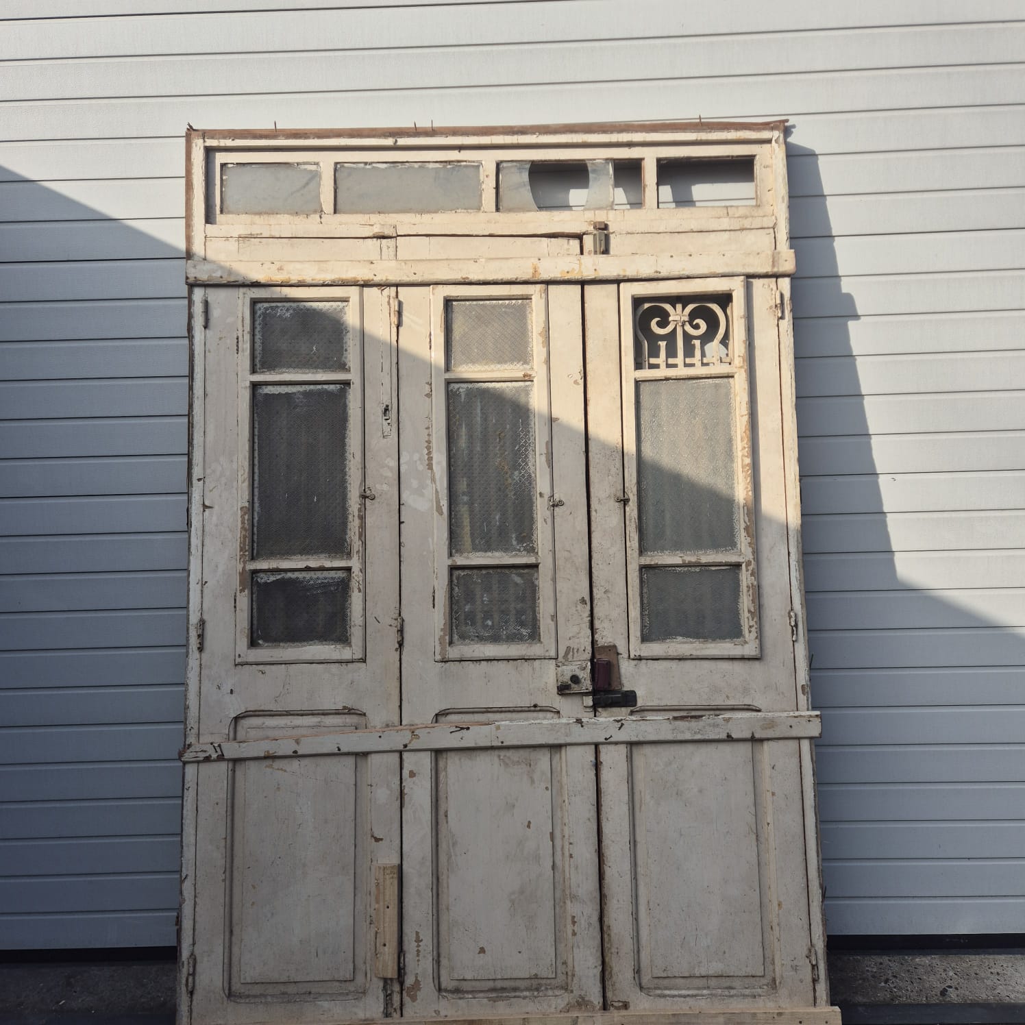 Geef uw huis een uniek karakter met dit originele exemplaar uit de beginjaren van de vorige eeuw. Deze driedelige voordeur imponeert met zijn authentieke patina en hoogwaardige Jugendstil -vakmanschap. Of u hem nu professioneel laat restaureren of in zijn charmante 'shabby chic'-staat laat, het is een echte blikvanger voor historische panden, landhuizen of als opvallend contrast in moderne architectuur. 2 stuks beschikbaar.