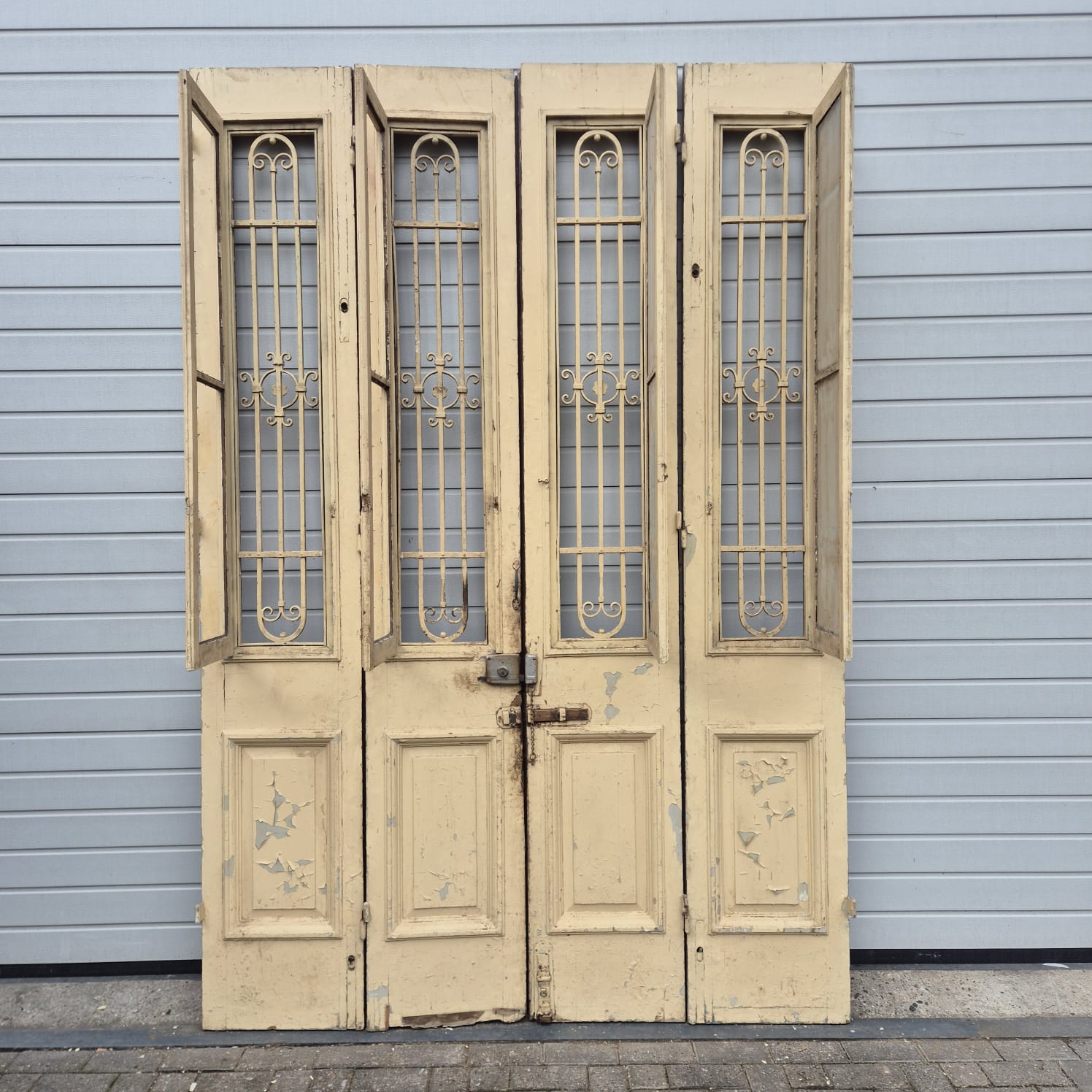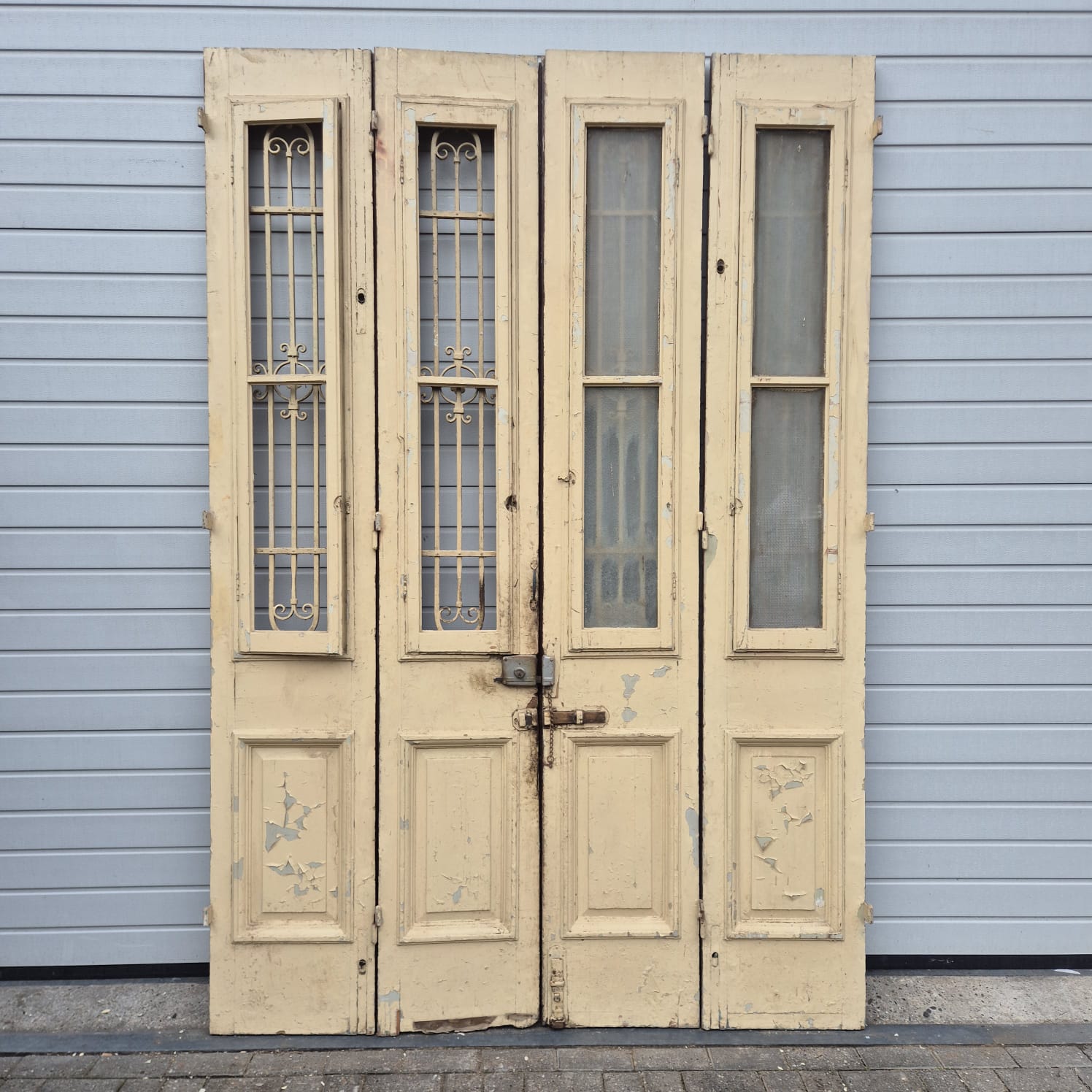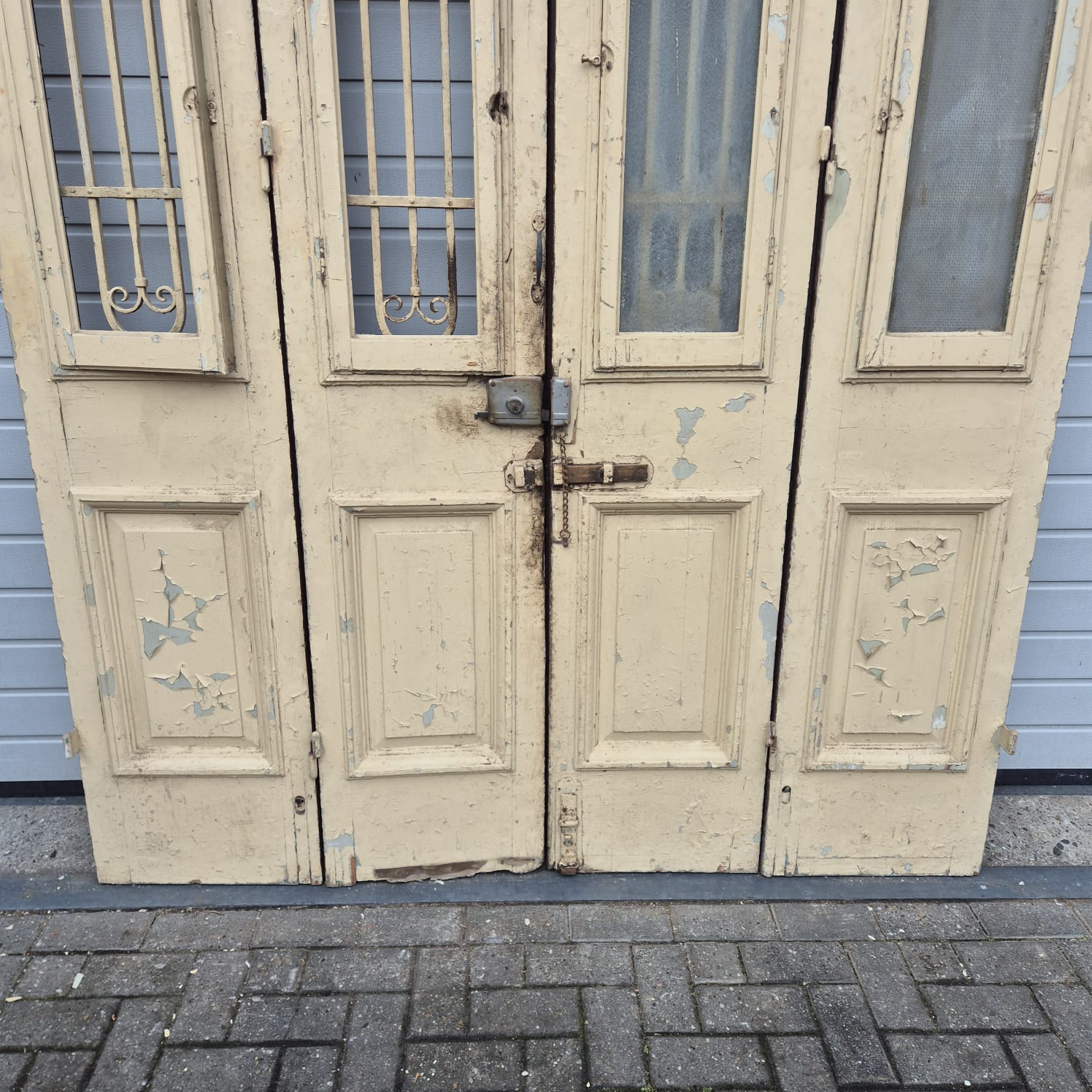 Geef uw huis een uniek karakter met dit originele exemplaar uit de beginjaren van de twintigste eeuw. Deze dubbele voordeur imponeert met zijn authentieke patina en het hoogwaardige vakmanschap dat typerend is voor het Gründerzeit tijdperk. Of hij nu professioneel gerestaureerd wordt of in zijn charmante 'shabby chic'-staat behouden blijft, het is een echte blikvanger voor historische panden, landhuizen of als opvallend contrasterend element in moderne architectuur.