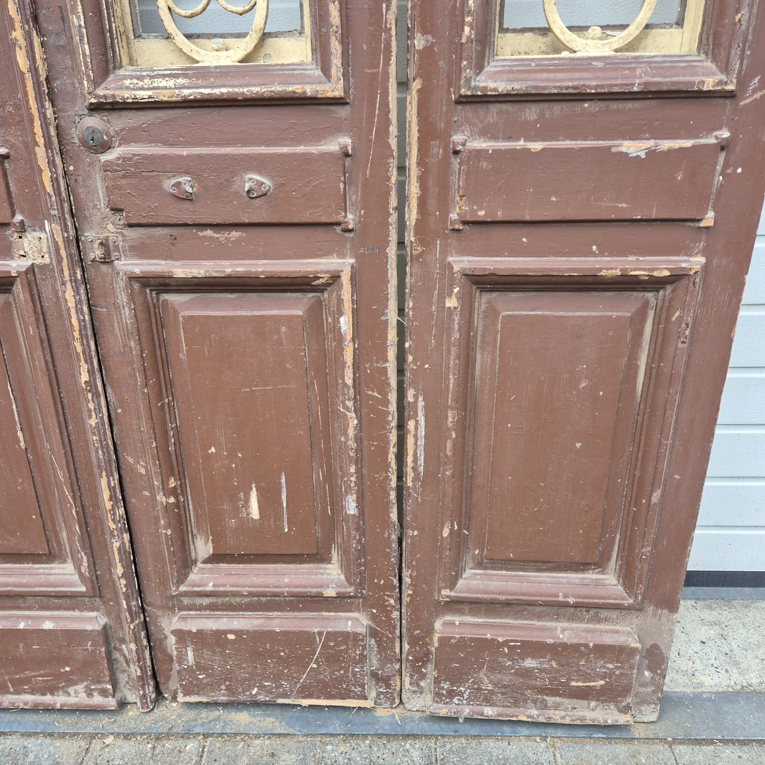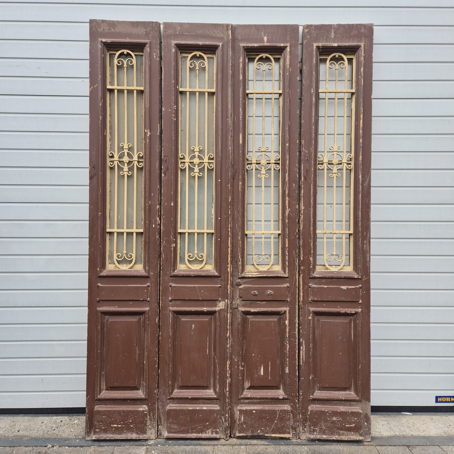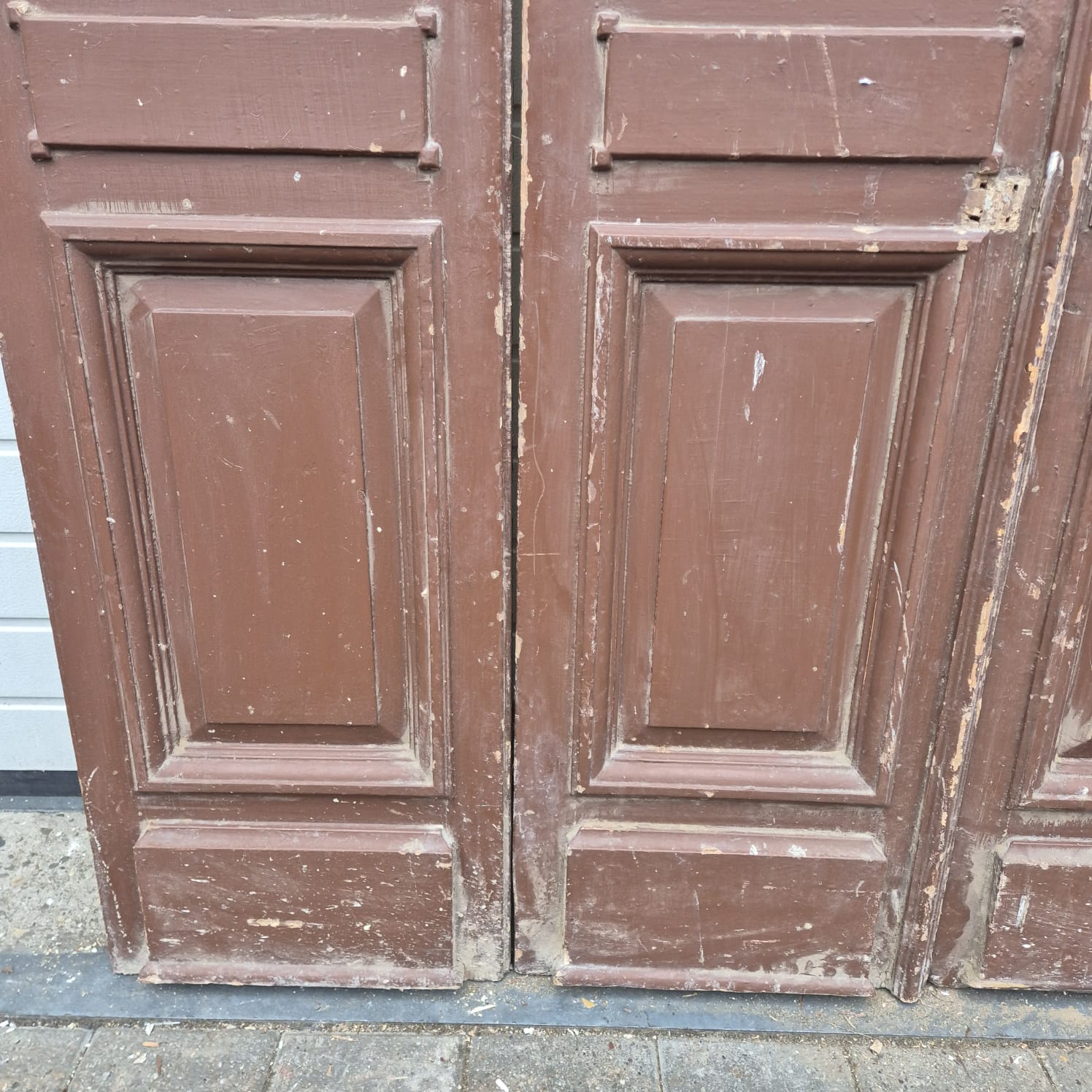 Geef uw huis een uniek karakter met dit originele exemplaar uit de beginjaren van de twintigste eeuw. Deze dubbele voordeur imponeert met zijn authentieke patina en het hoogwaardige vakmanschap dat typerend is voor het Gründerzeit tijdperk. Of hij nu professioneel gerestaureerd wordt of in zijn charmante 'shabby chic'-staat behouden blijft, het is een echte blikvanger voor historische panden, landhuizen of als opvallend contrasterend element in moderne architectuur.