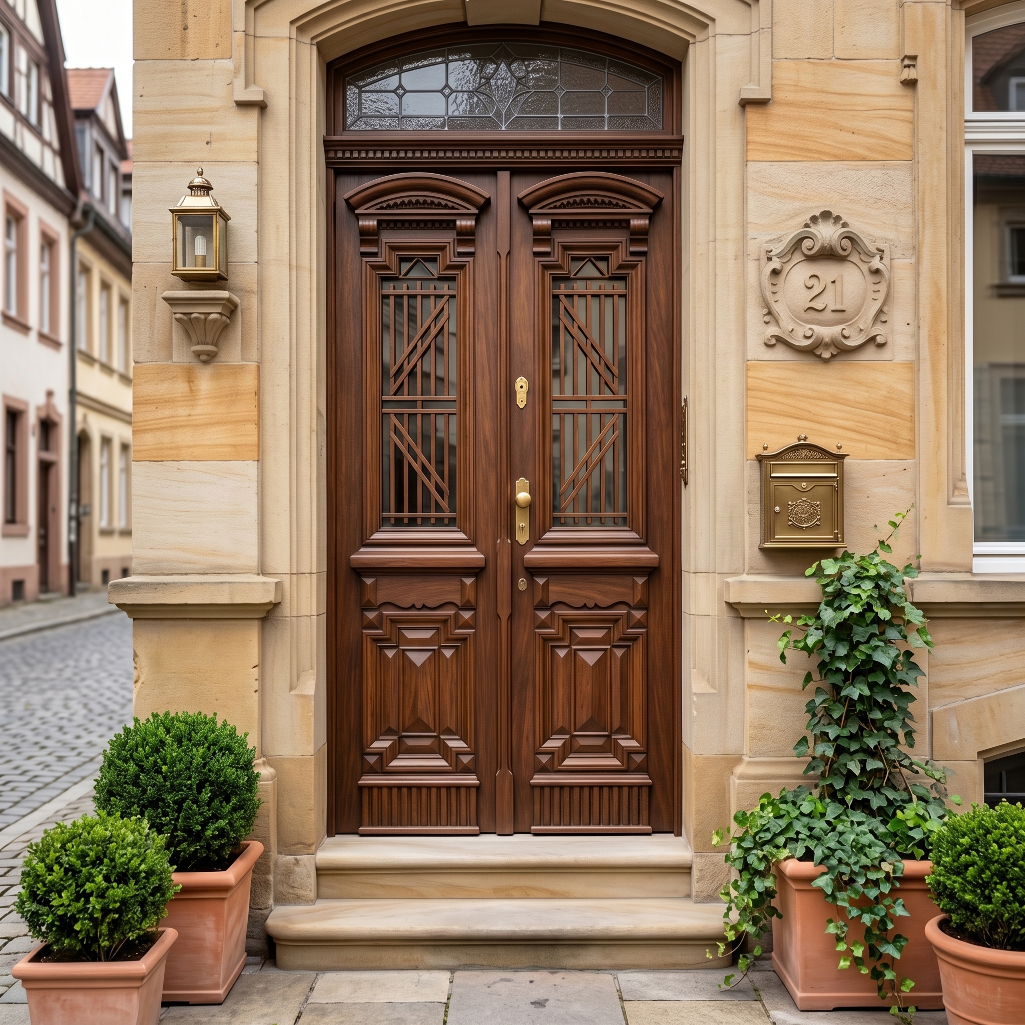 Antieke dubbele voordeur (circa 1880) – Gründerzeit-periode
