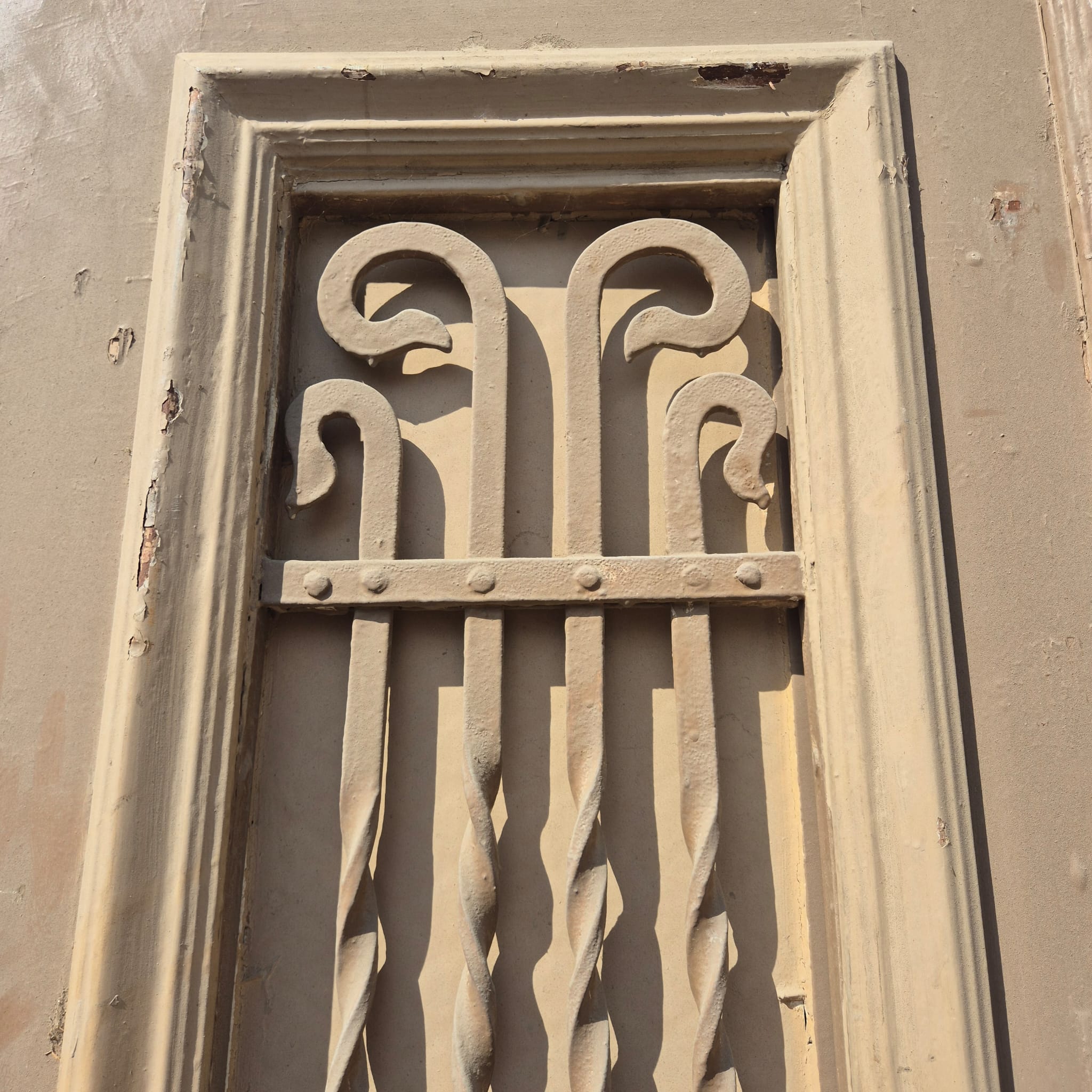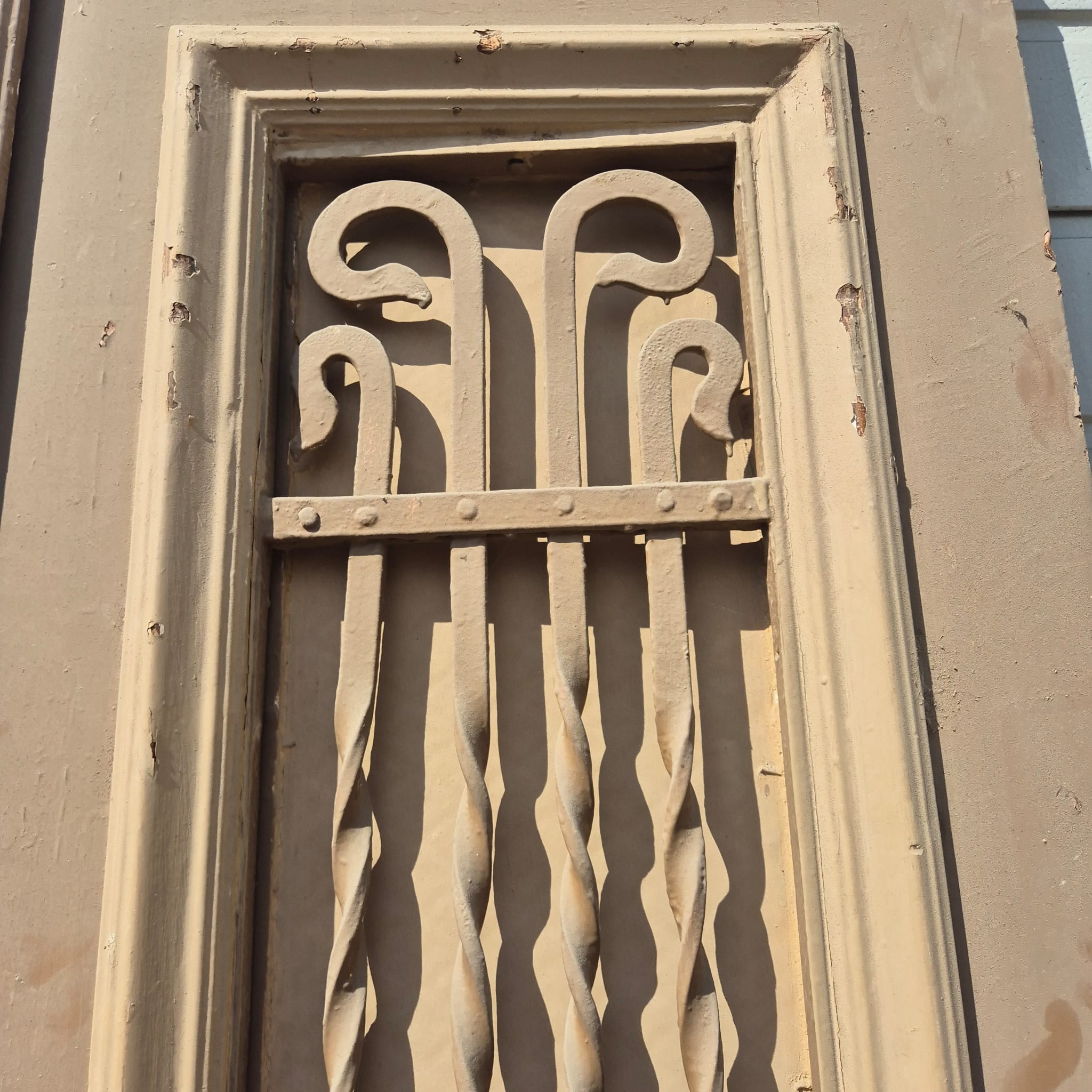 Smeedijzeren roosters: De bovenste ramen zijn voorzien van kunstig gebogen, originele ijzeren roosters.
