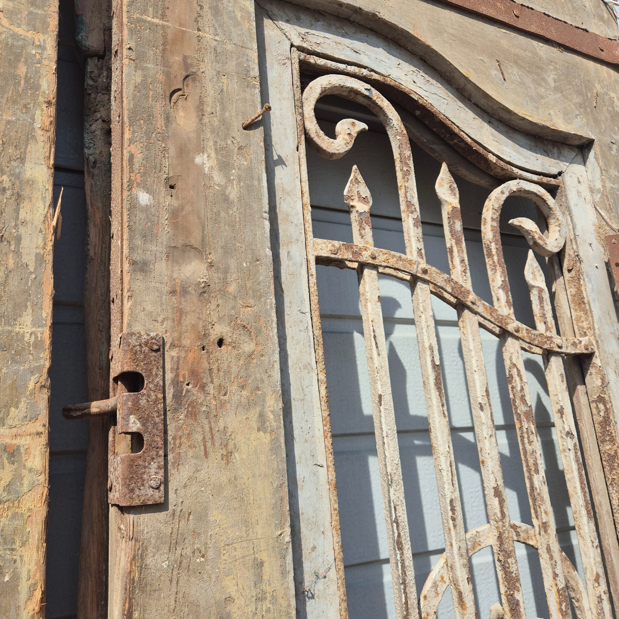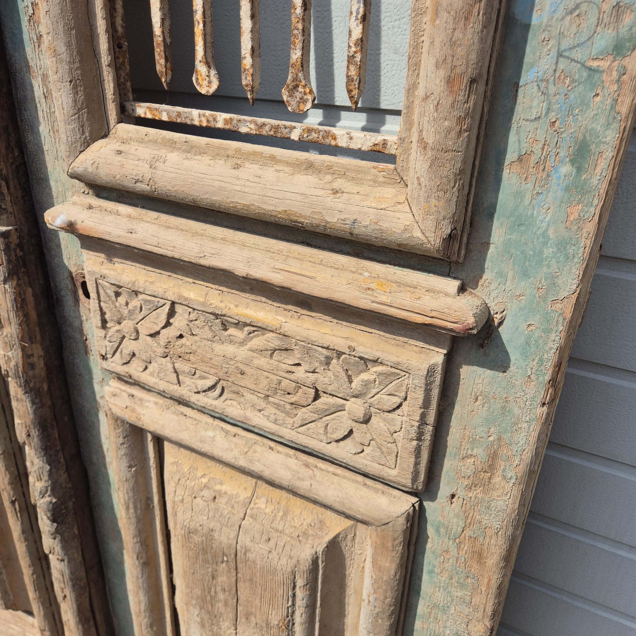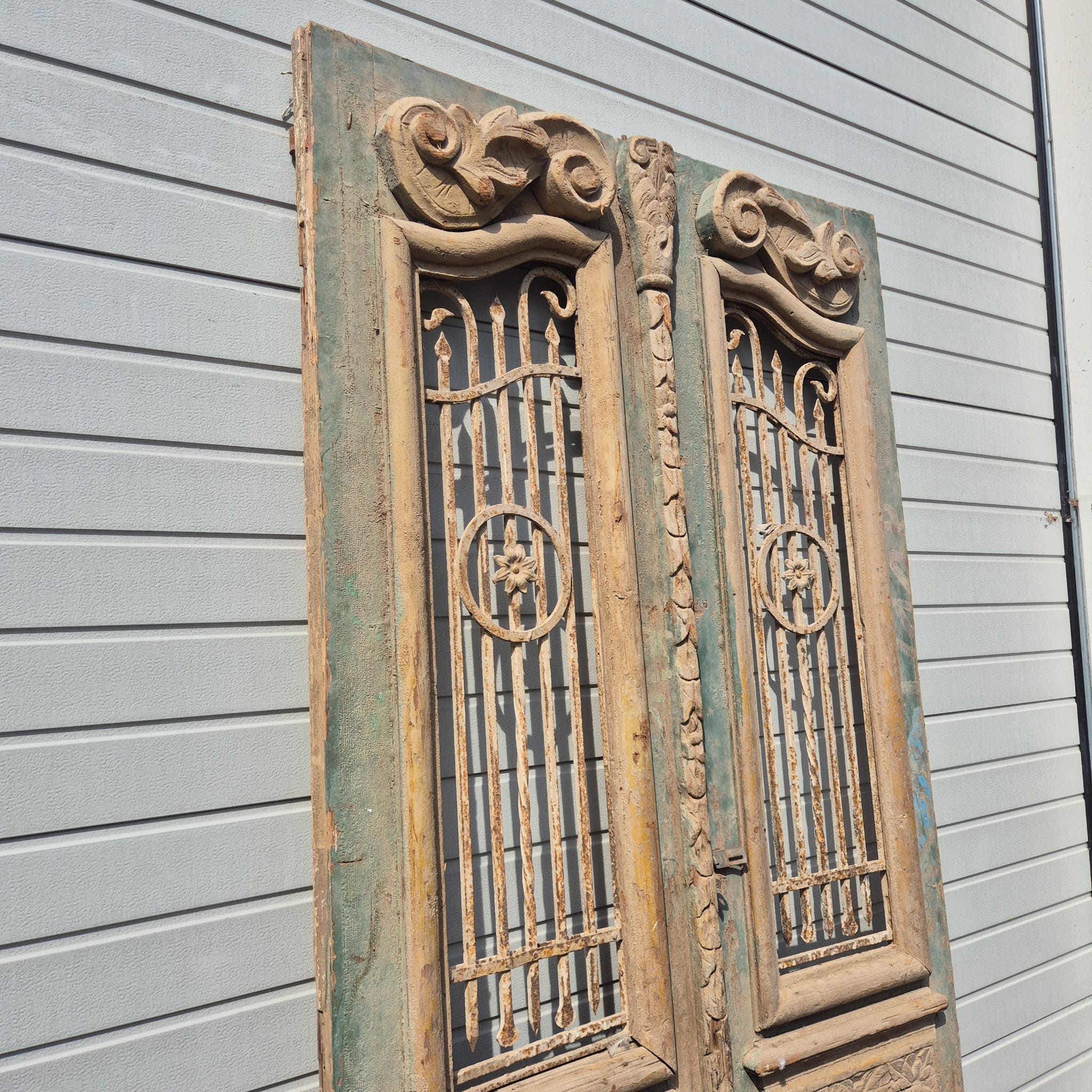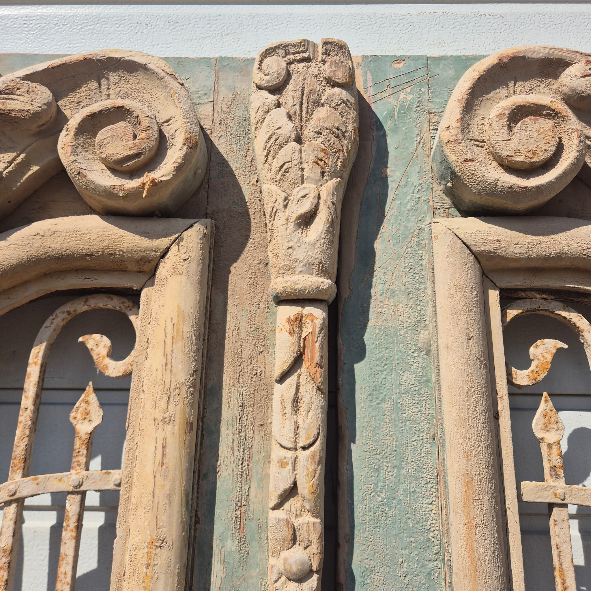Historisch ontwerp: De deurvleugels zijn in originele, ongerestaureerde staat met een fascinerende, meerlaagse groenbeige verfafwerking die een unieke patina heeft ontwikkeld.