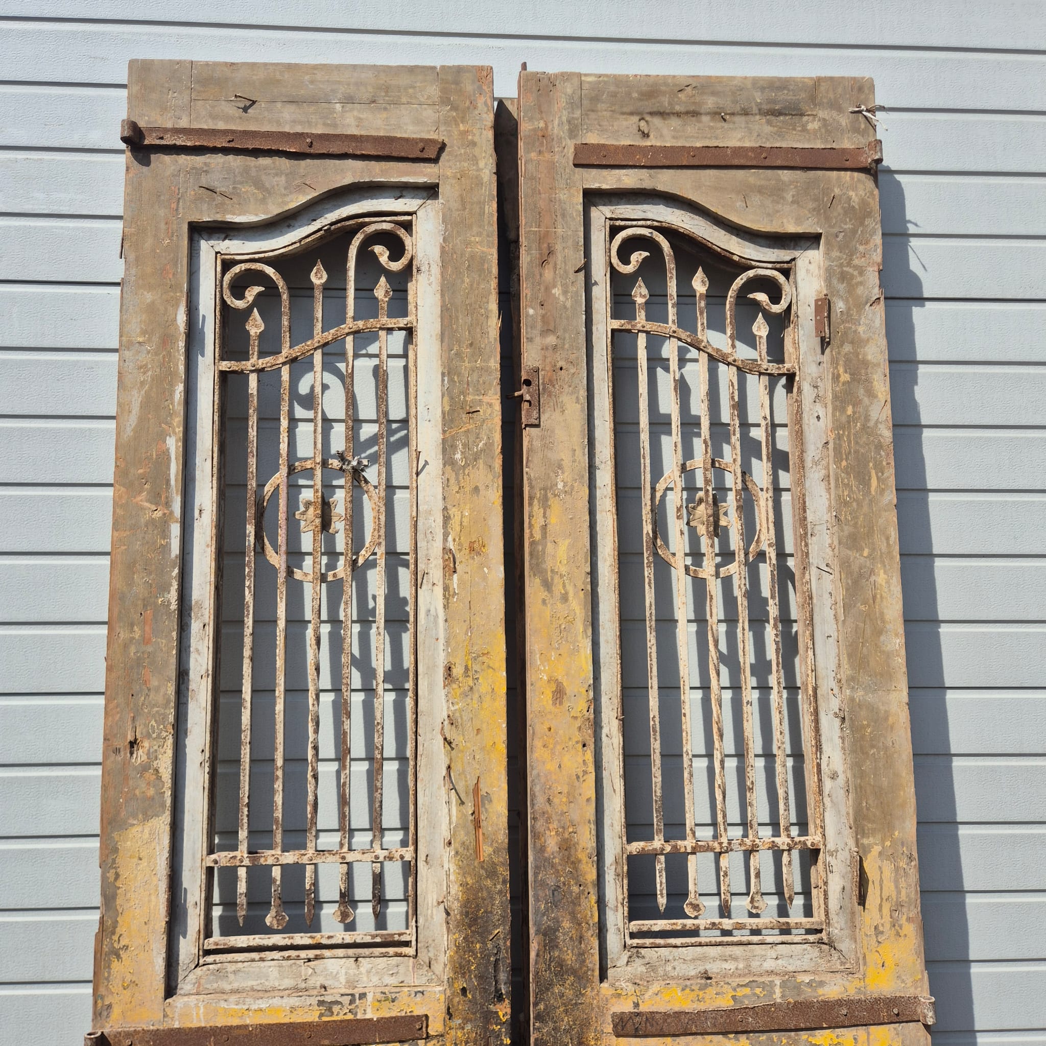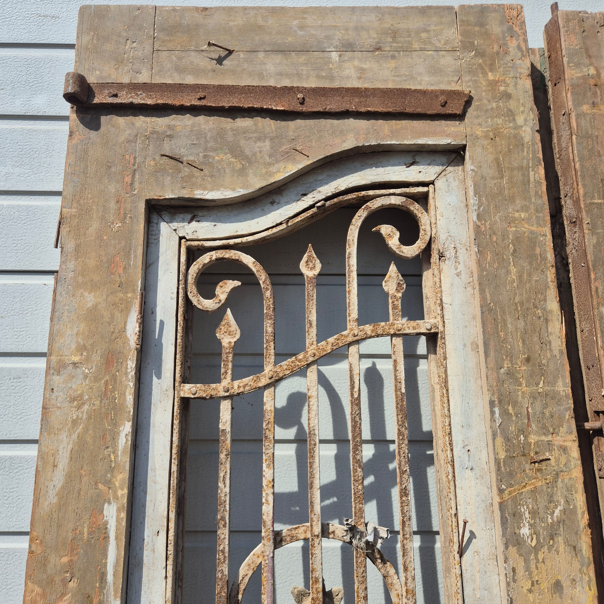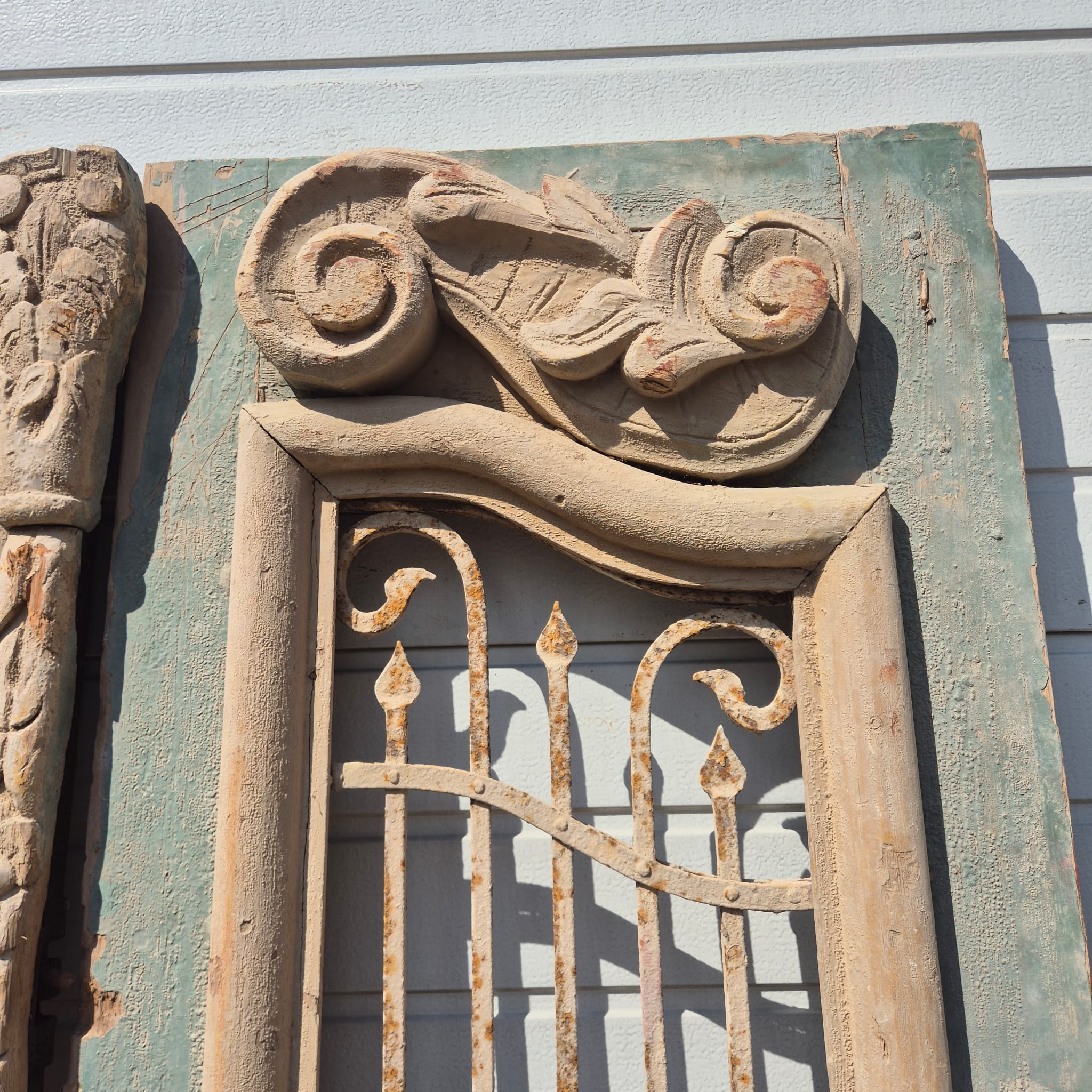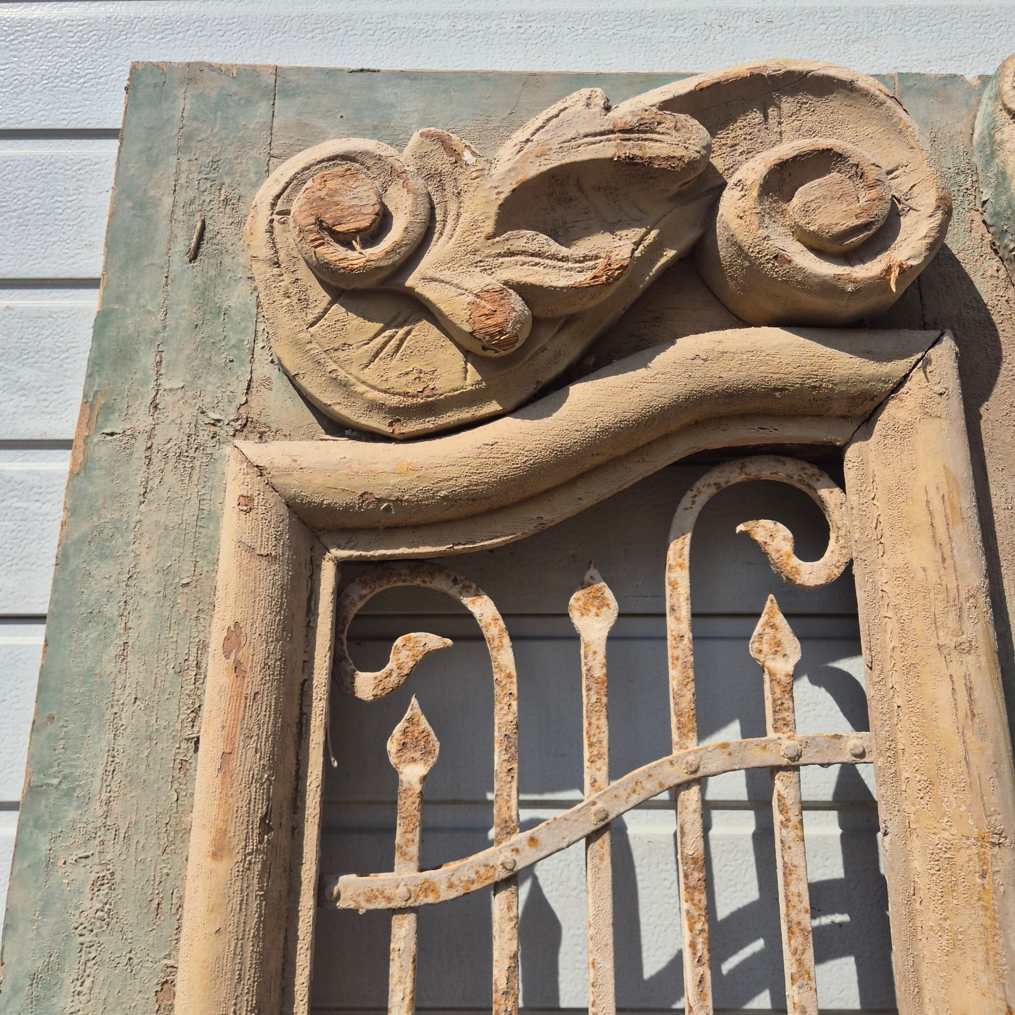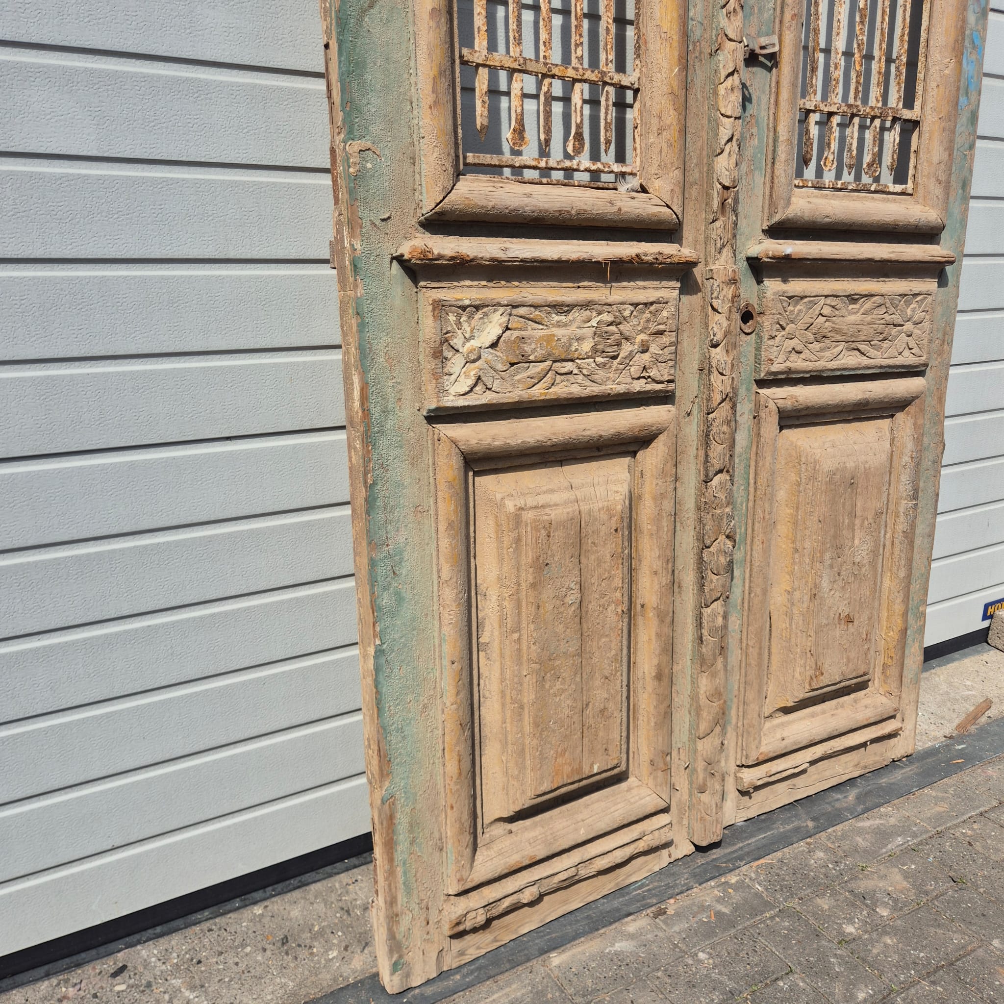 Historisch ontwerp: De deurvleugels zijn in originele, ongerestaureerde staat met een fascinerende, meerlaagse groenbeige verfafwerking die een unieke patina heeft ontwikkeld.