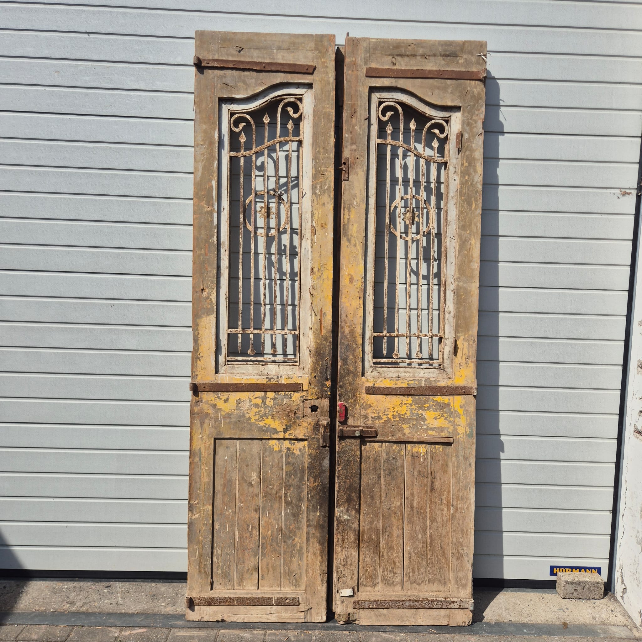 Geef uw bouwproject een uniek karakter! Te koop aangeboden: een indrukwekkende, massieve dubbele voordeur uit circa 1890. Dit architectonische juweel betovert met zijn imposante verschijning en meesterlijke vakmanschap.