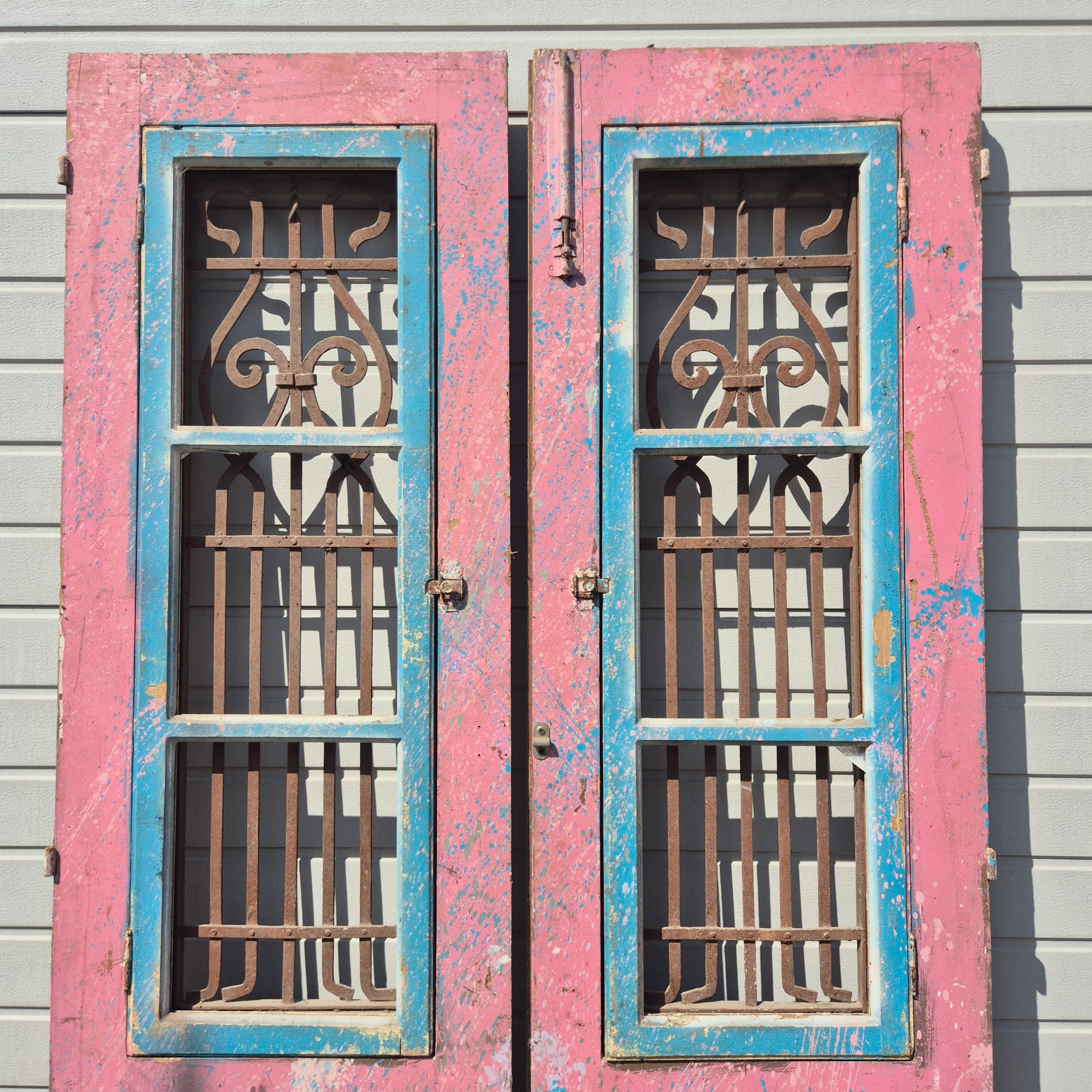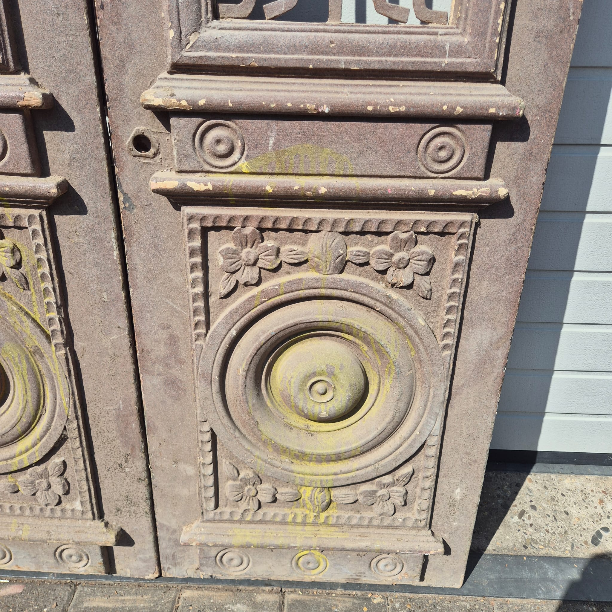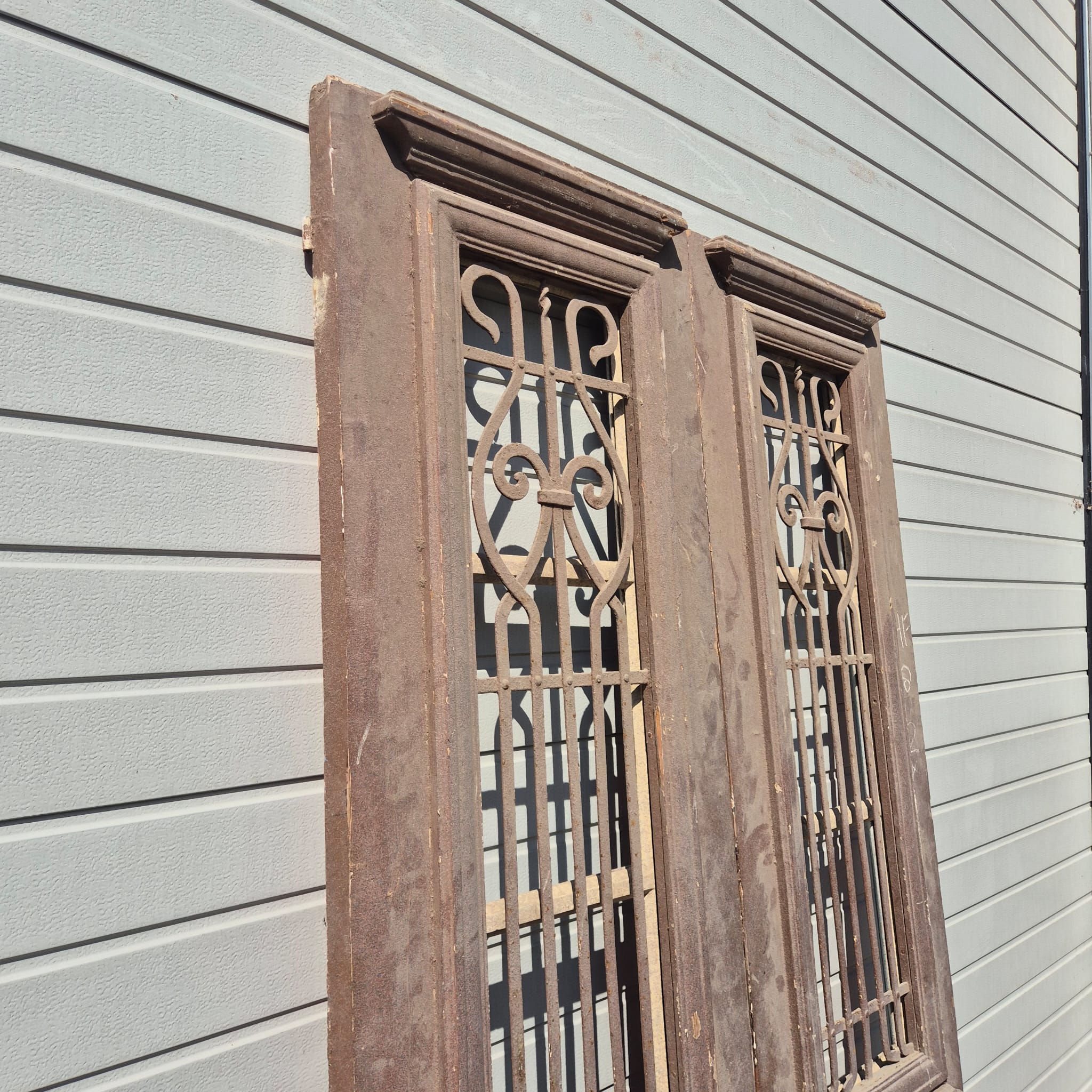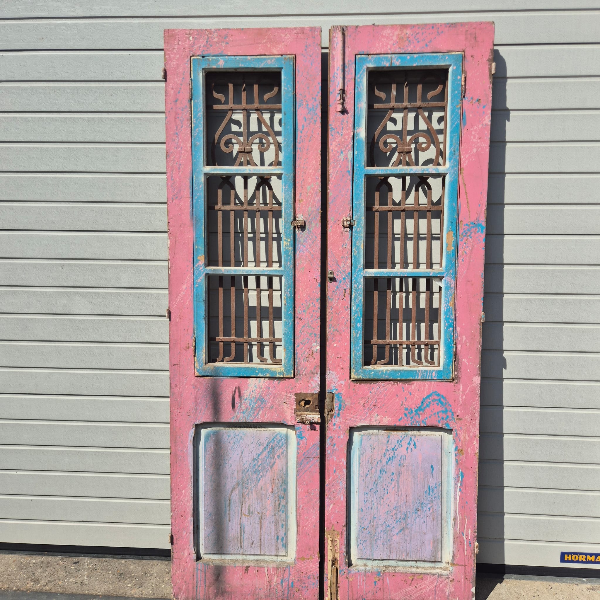 Historisch ontwerp: De deurvleugels zijn in originele, ongerestaureerde staat met een fascinerende, meerlaagse beige afwerking die een unieke patina heeft ontwikkeld.