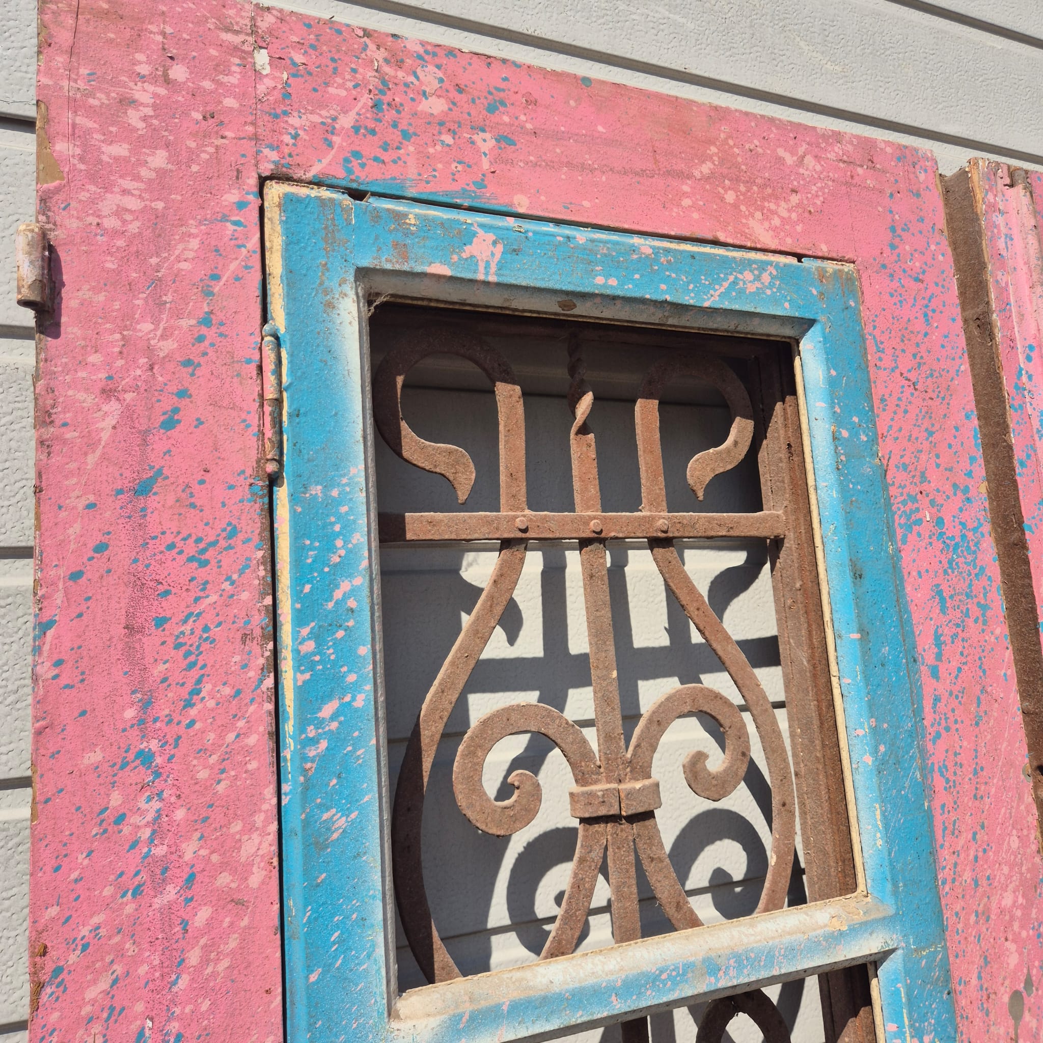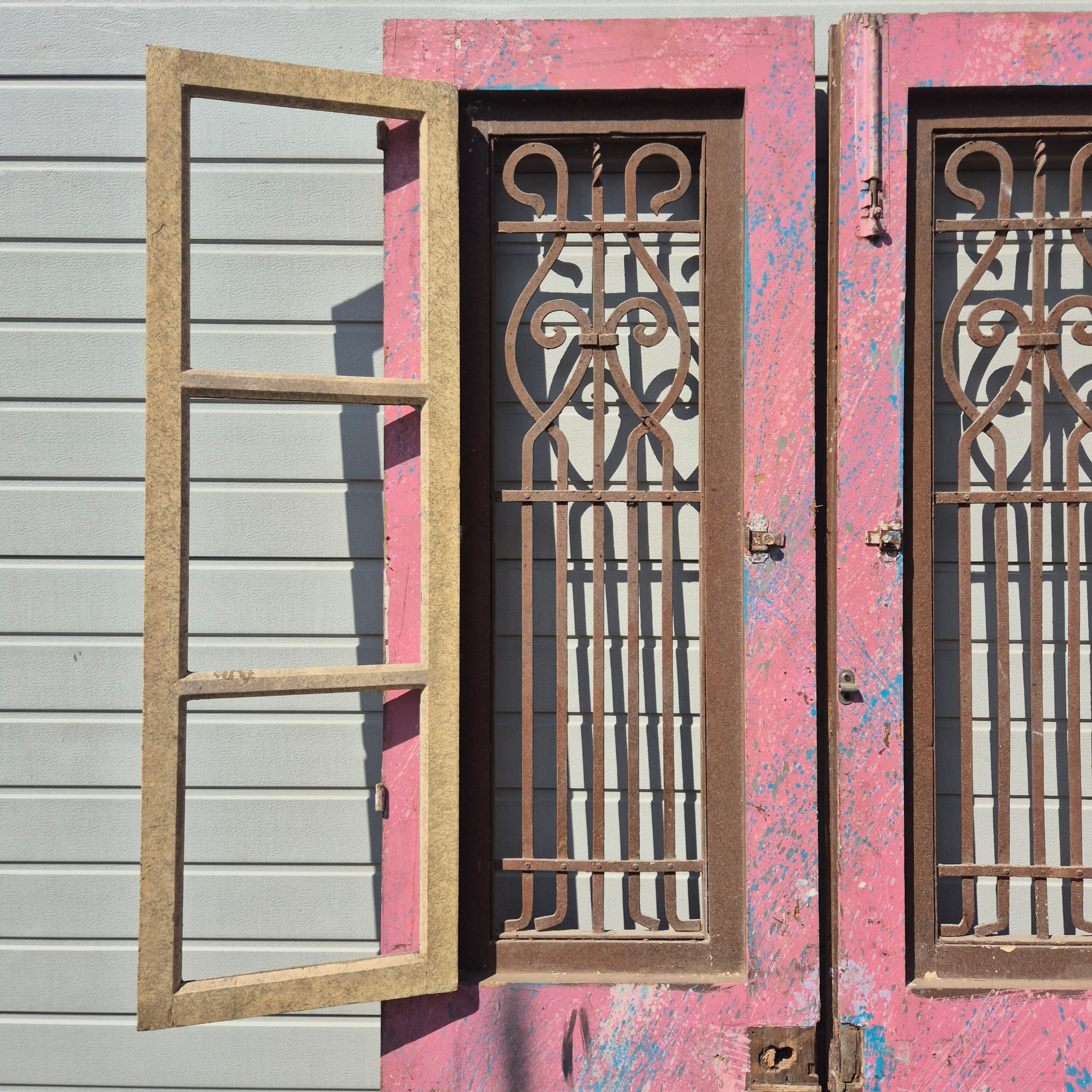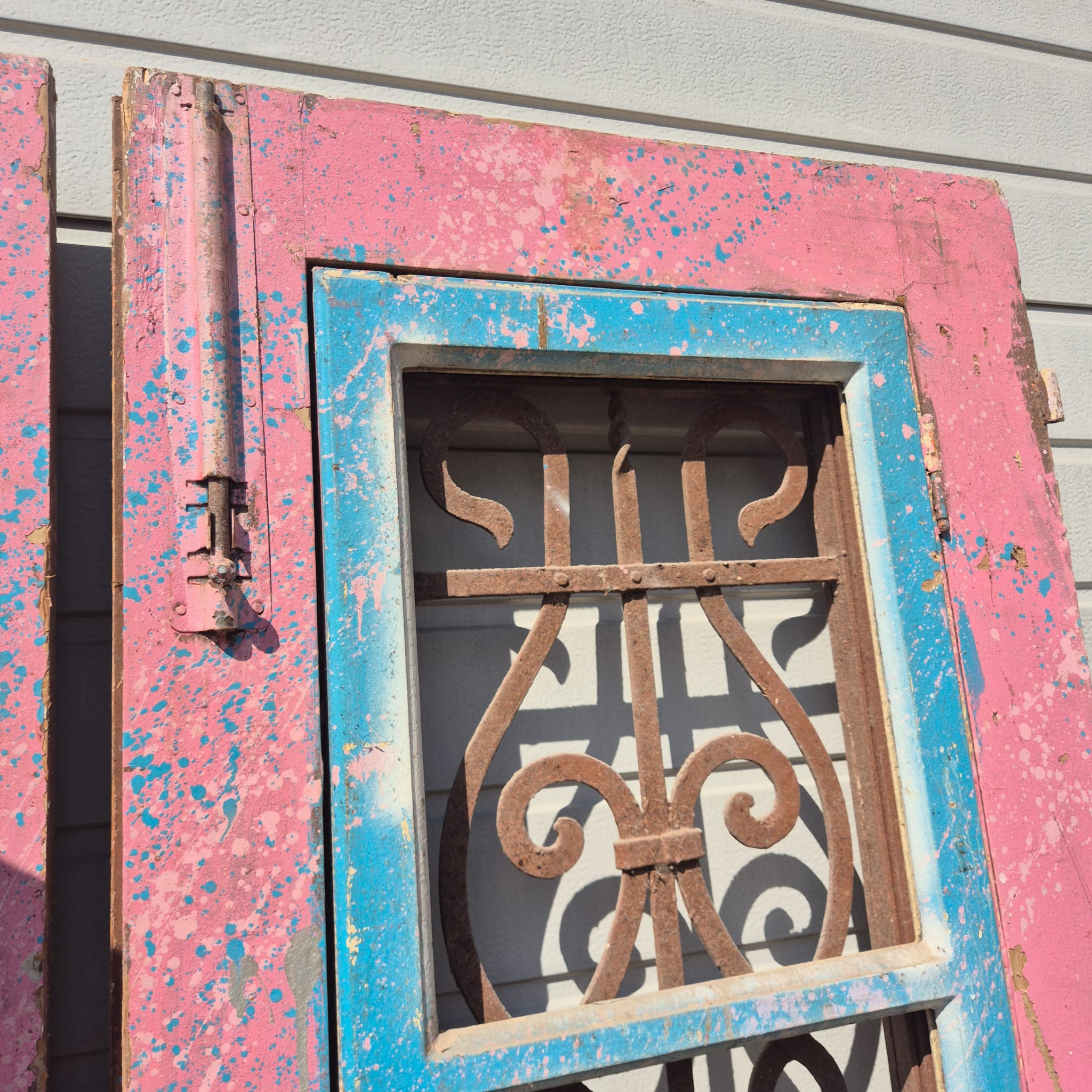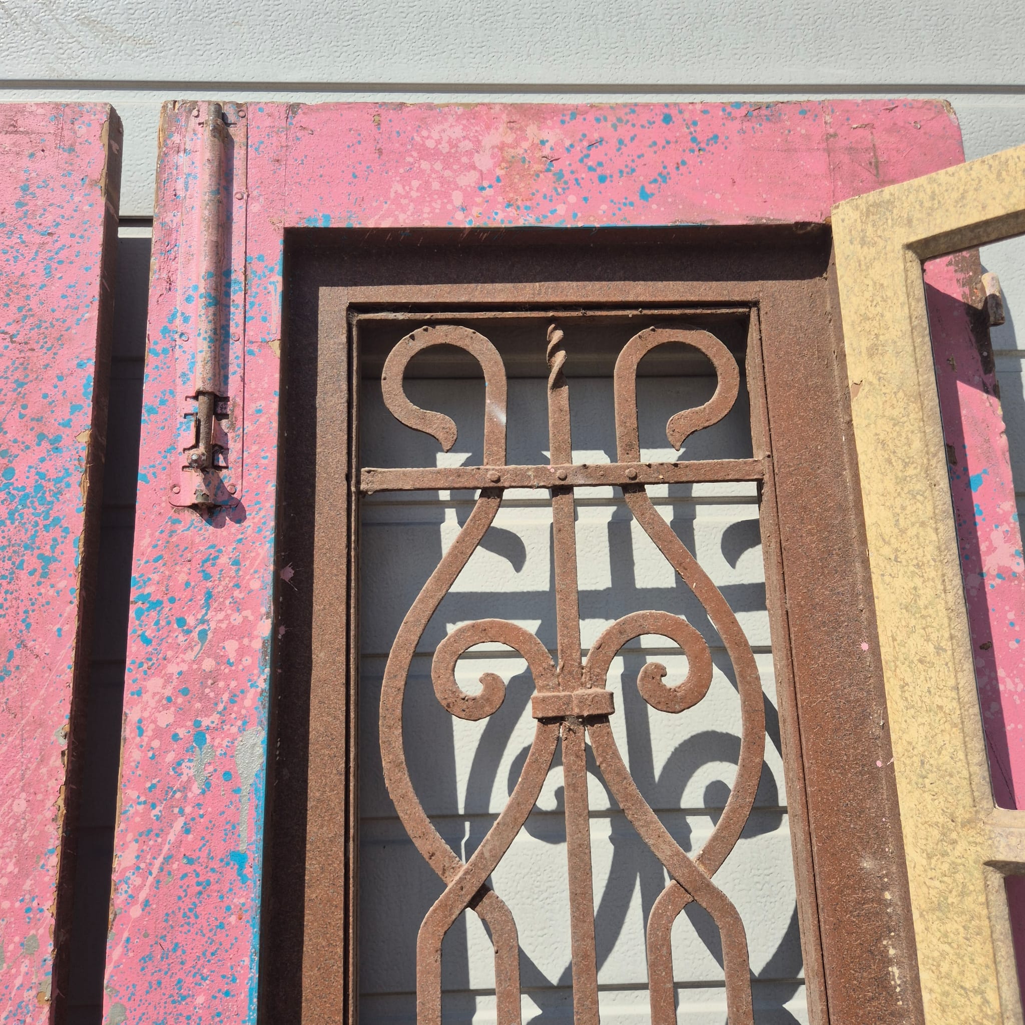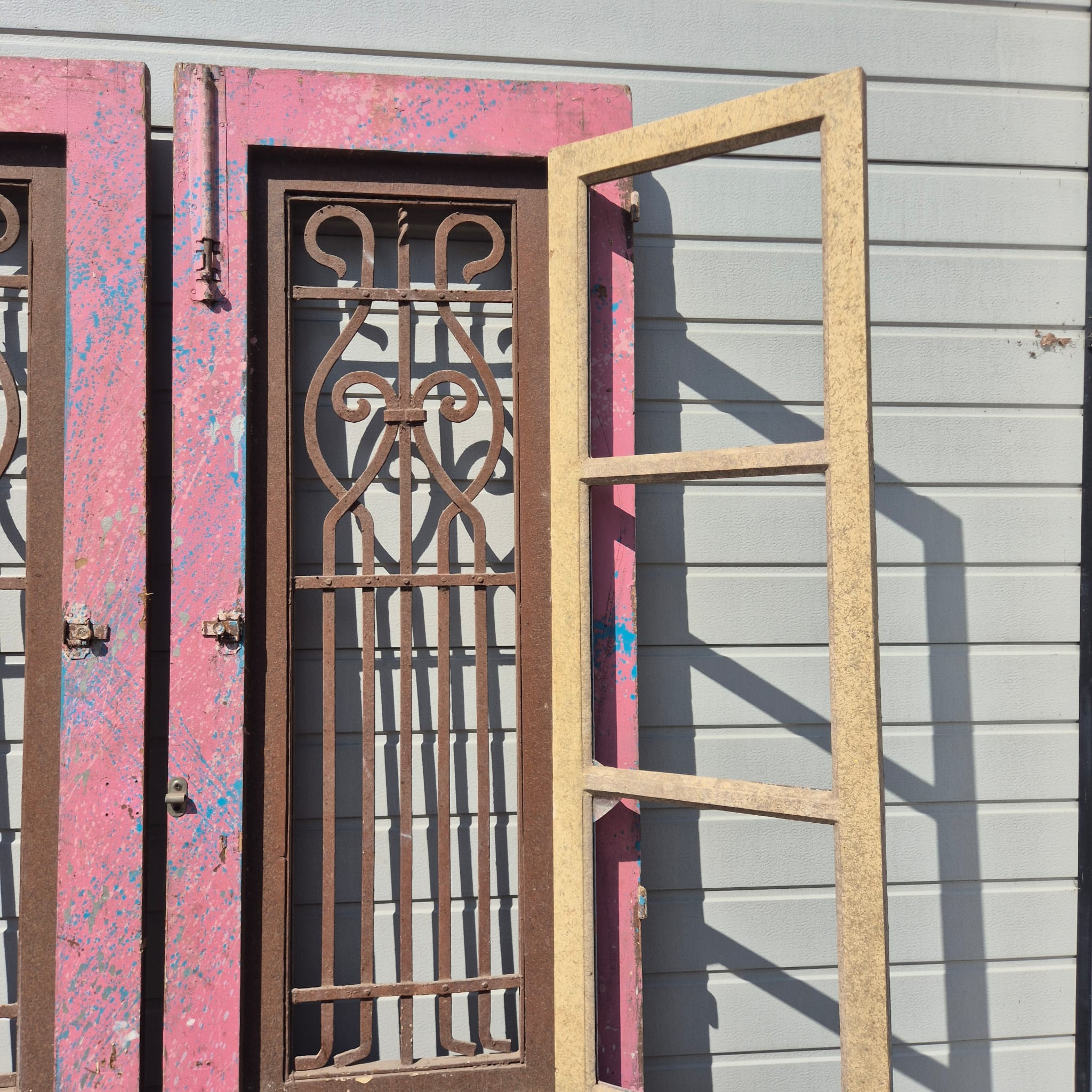 Historisch ontwerp: De deurvleugels zijn in originele, ongerestaureerde staat met een fascinerende, meerlaagse beige afwerking die een unieke patina heeft ontwikkeld.