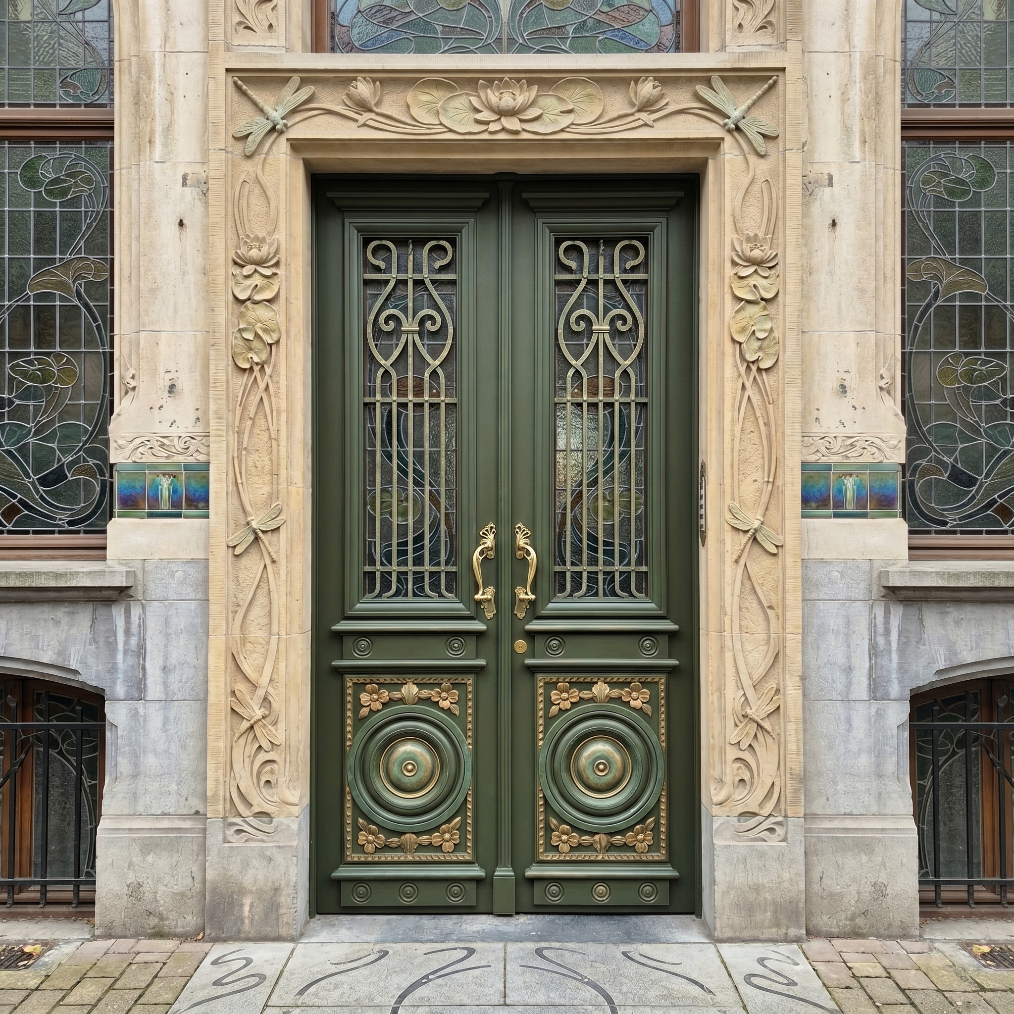 Antieke dubbele voordeur (circa 1900) – Jugendstil