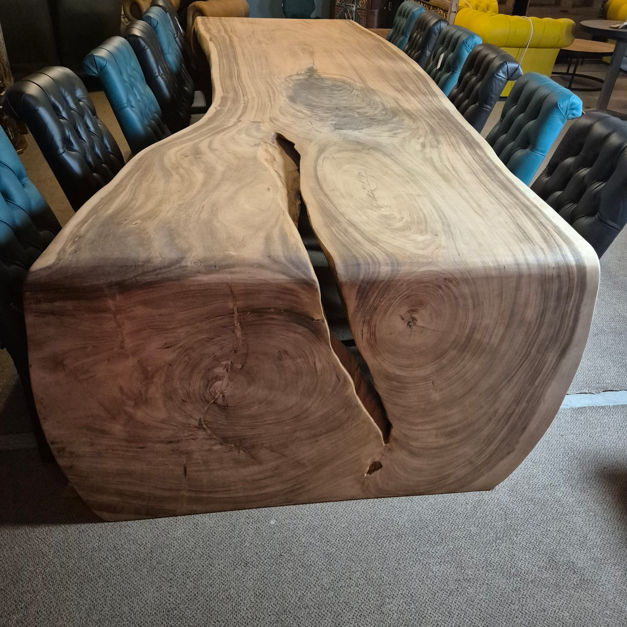 Unieke eettafel van massief acaciahout – De boomstamtafel