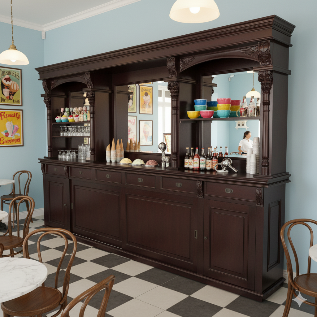 Achterkast van een empire bar gemaakt van massief mahonie.