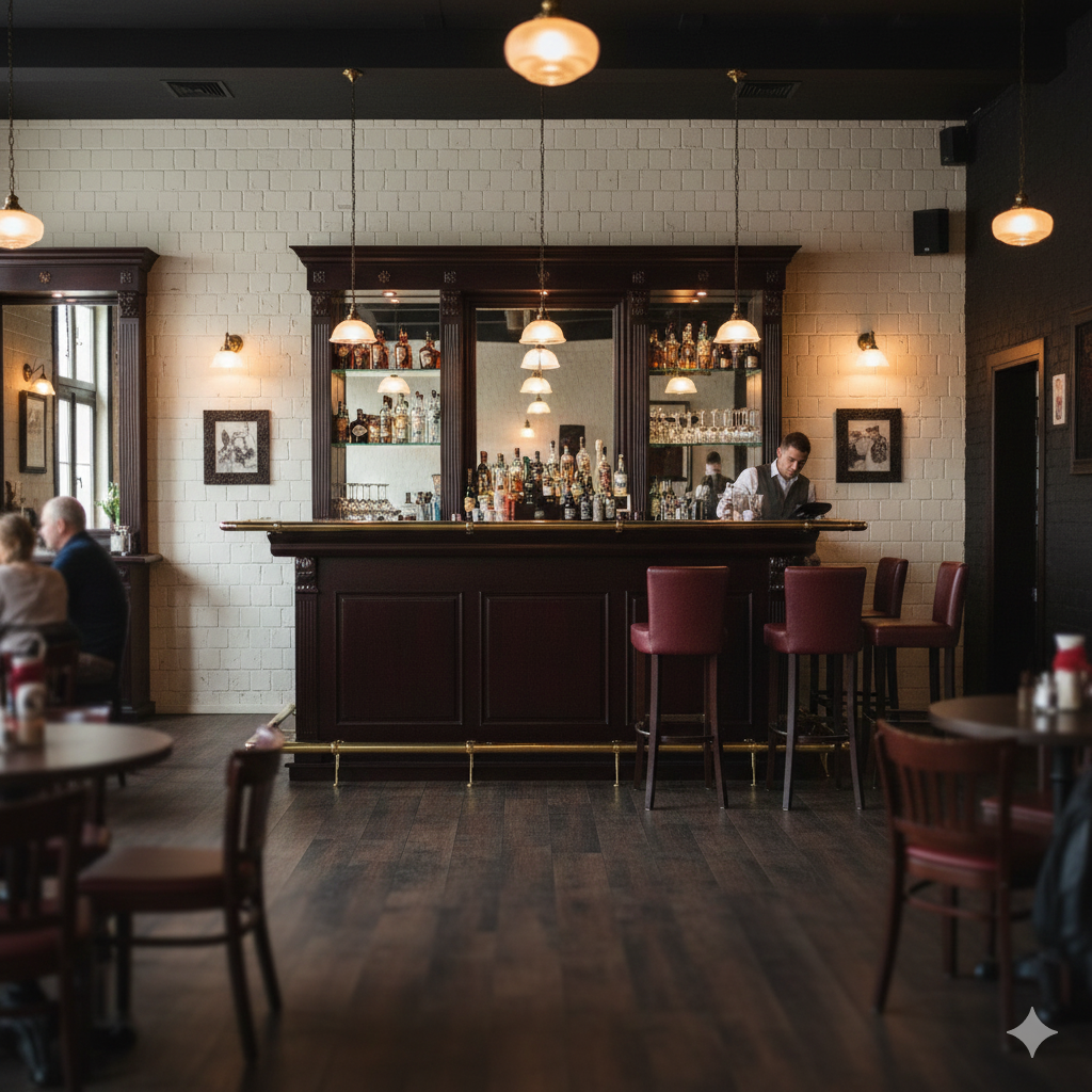 Deze voorbar/toonbank, model Empire is gemaakt van massief mahoniehout. Rijkelijk versierd met ornamenten.