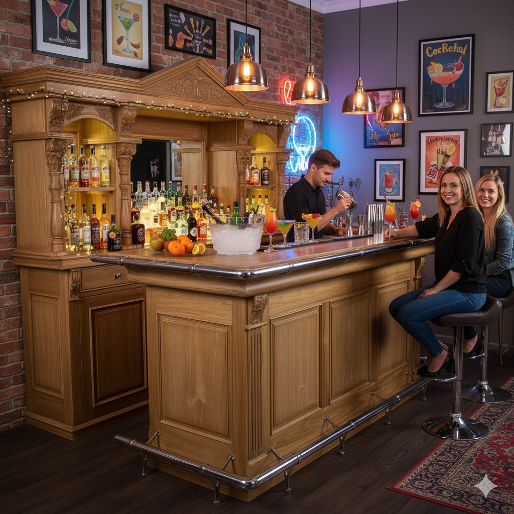 Engelse bar gemaakt van massief teak. Demontabel (7-delig).