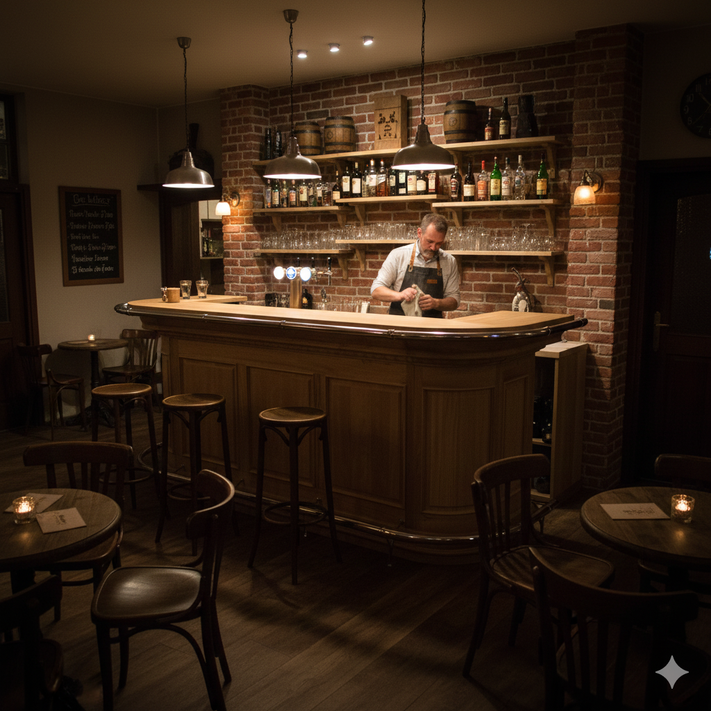 Stijlvolle Engelse bar van massief teakhout. Uitneembaar (3-delig).
