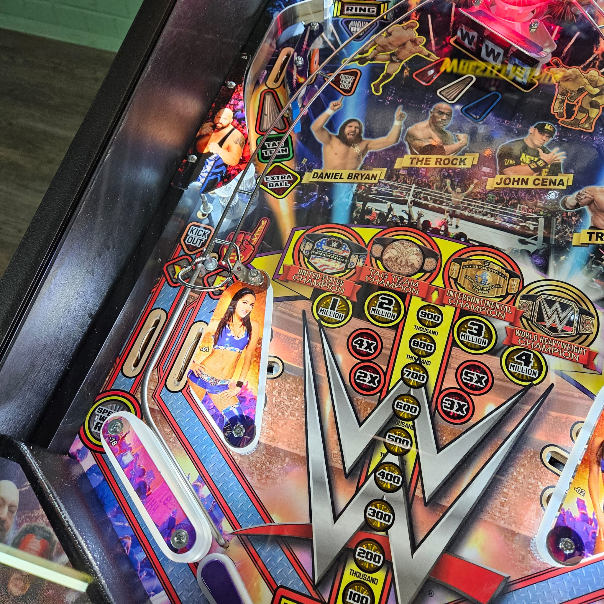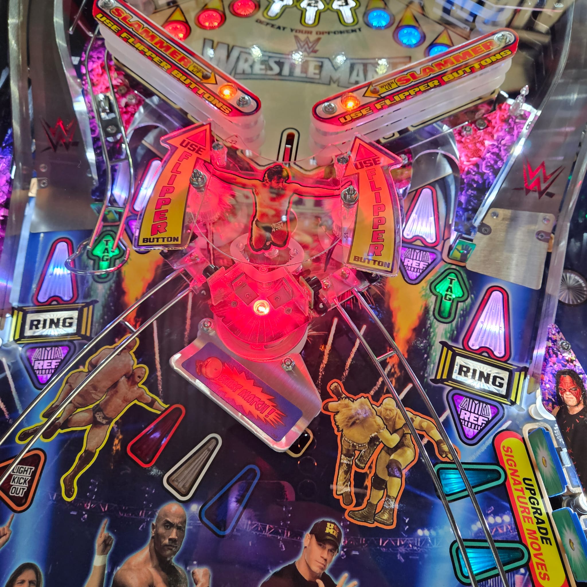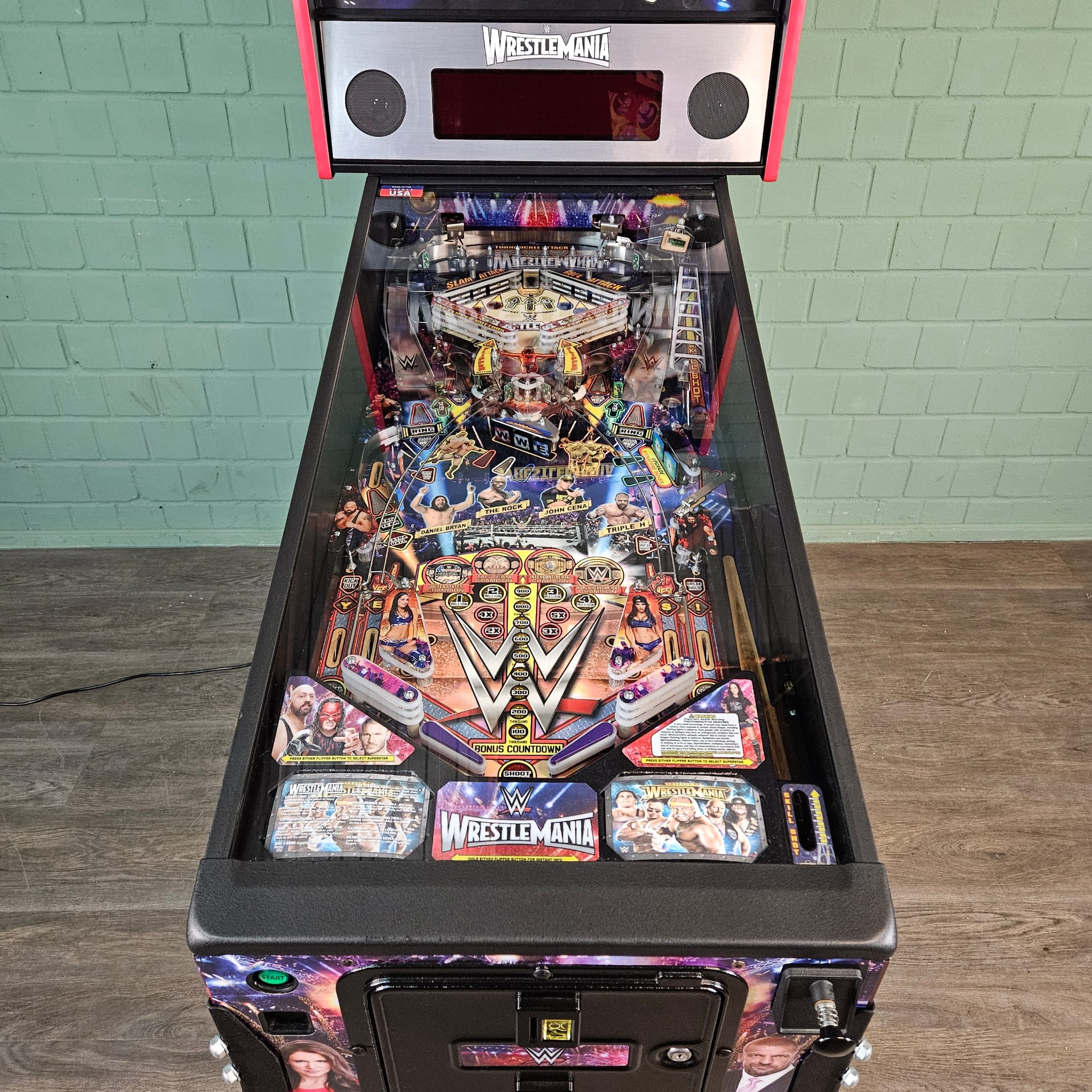 Volledig functionele en goed bewaard gebleven flipperkast: WWE WrestleMania (Stern, 2015). Dompel jezelf onder in de actievolle wereld van WWE en beleef de grootste supersterren en momenten gewoon bij jou thuis, in je bar of op je feestkelder!