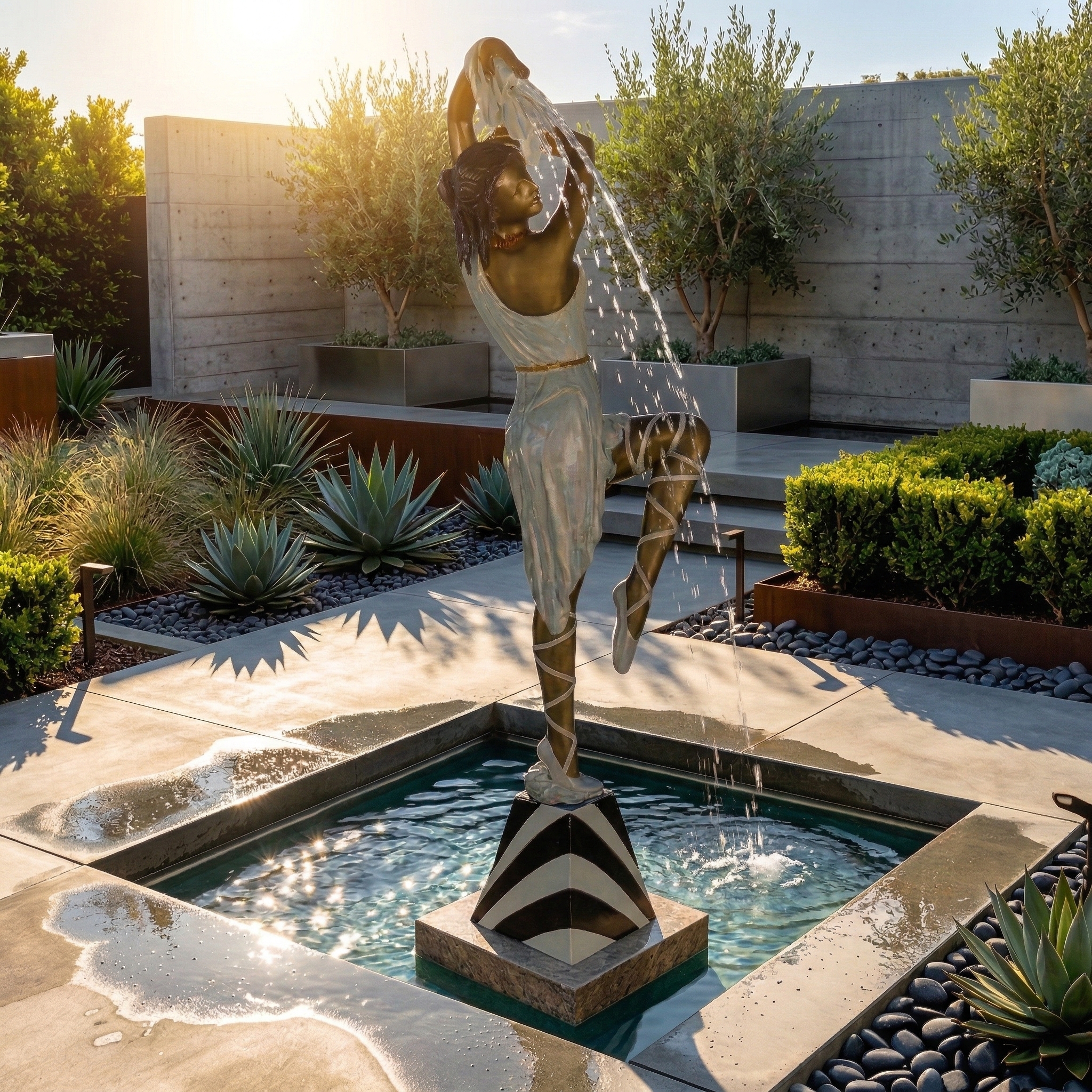 Mooi gevormde fontein in de vorm van een ballerina gemaakt van brons.