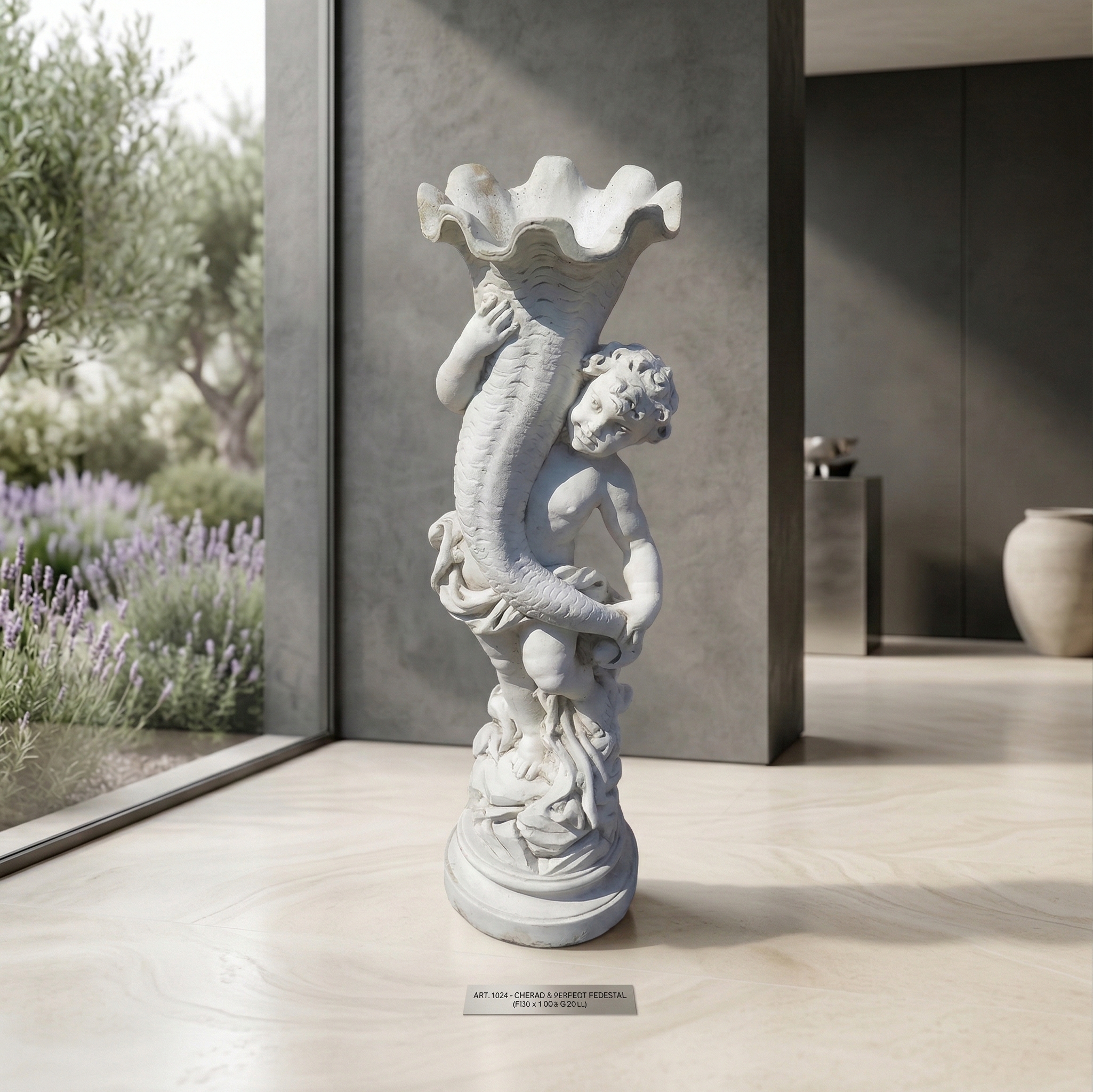 Fontein Beton Cherubijn met Mossel 1,00 m