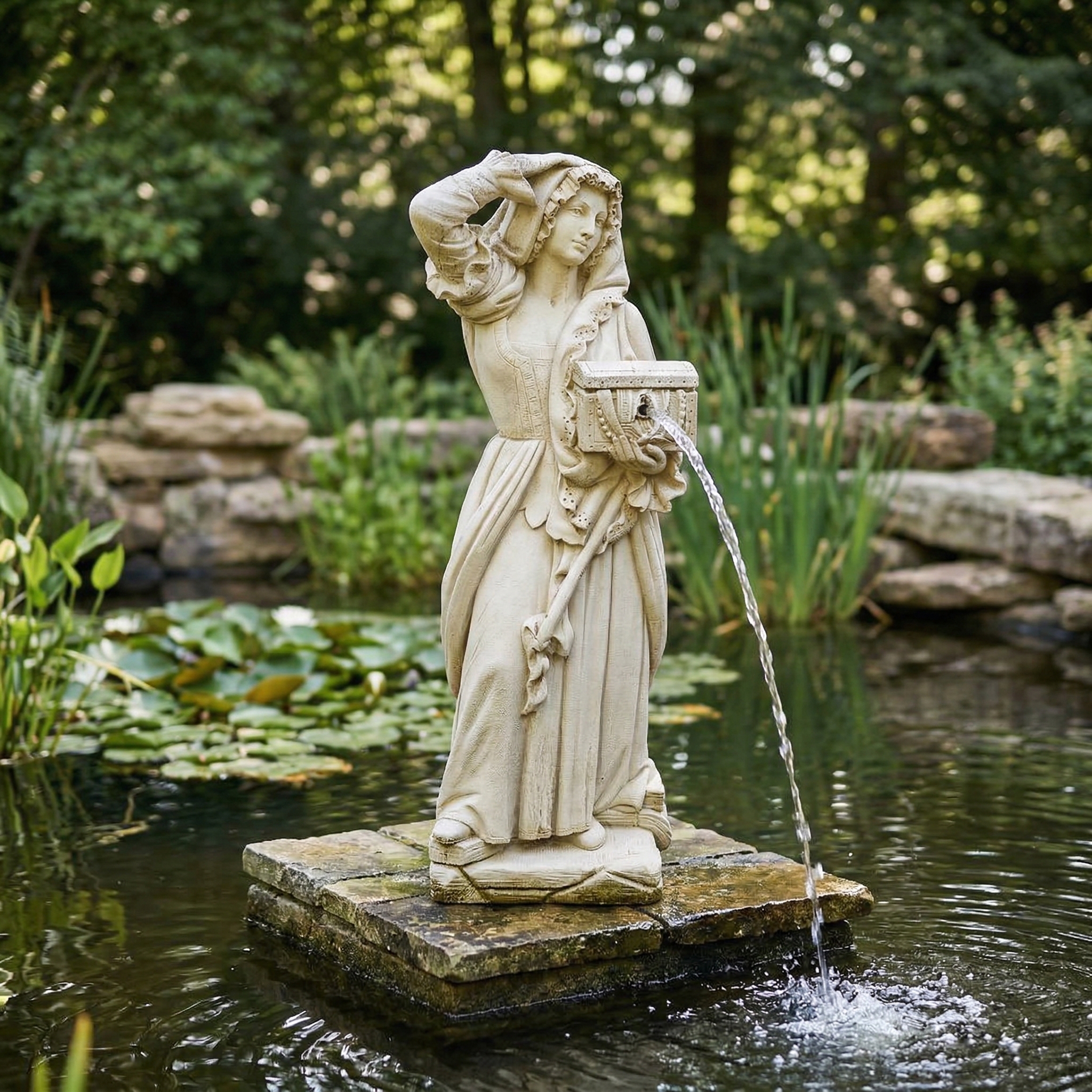 Fontein Beton Vrouw met Kistje 1,42 m