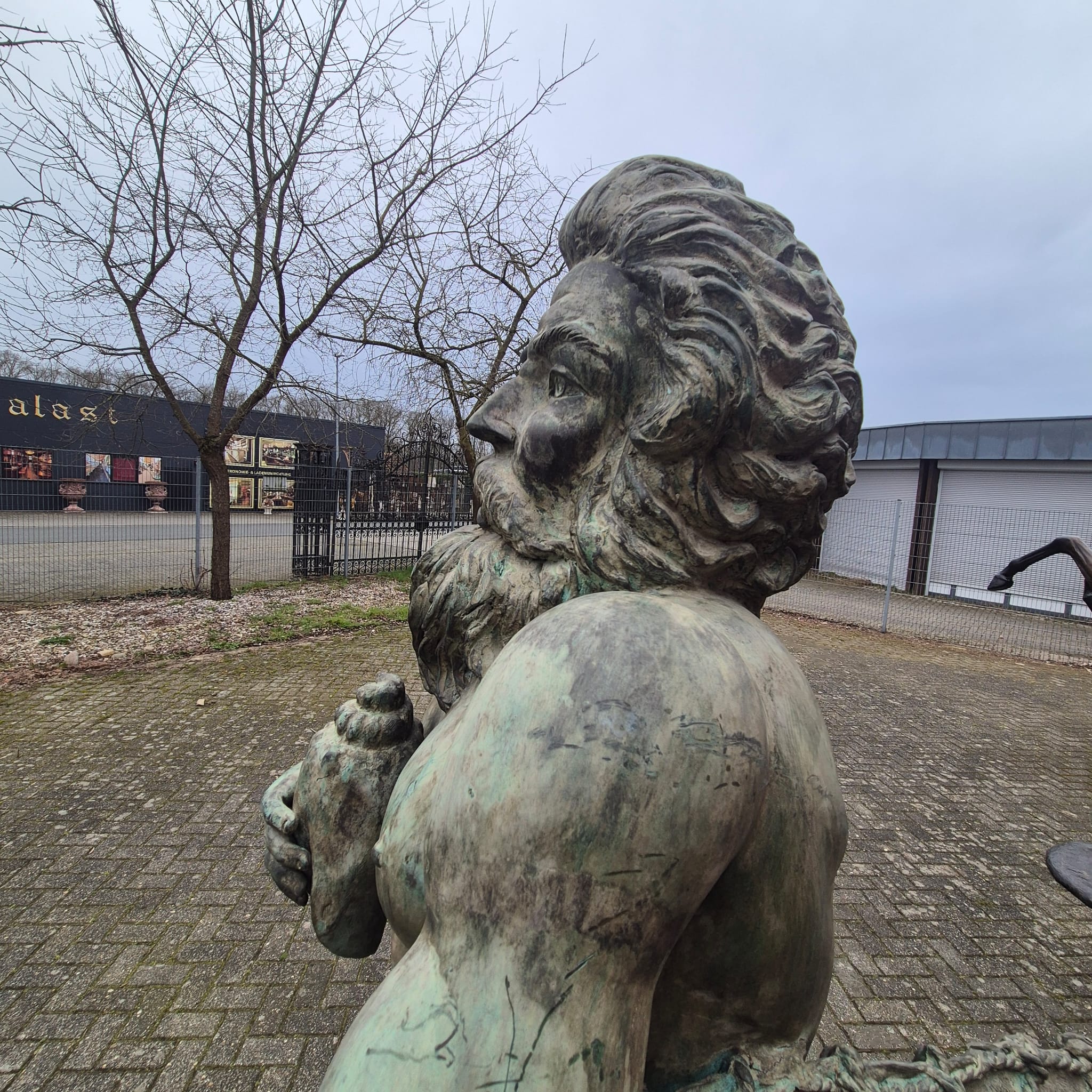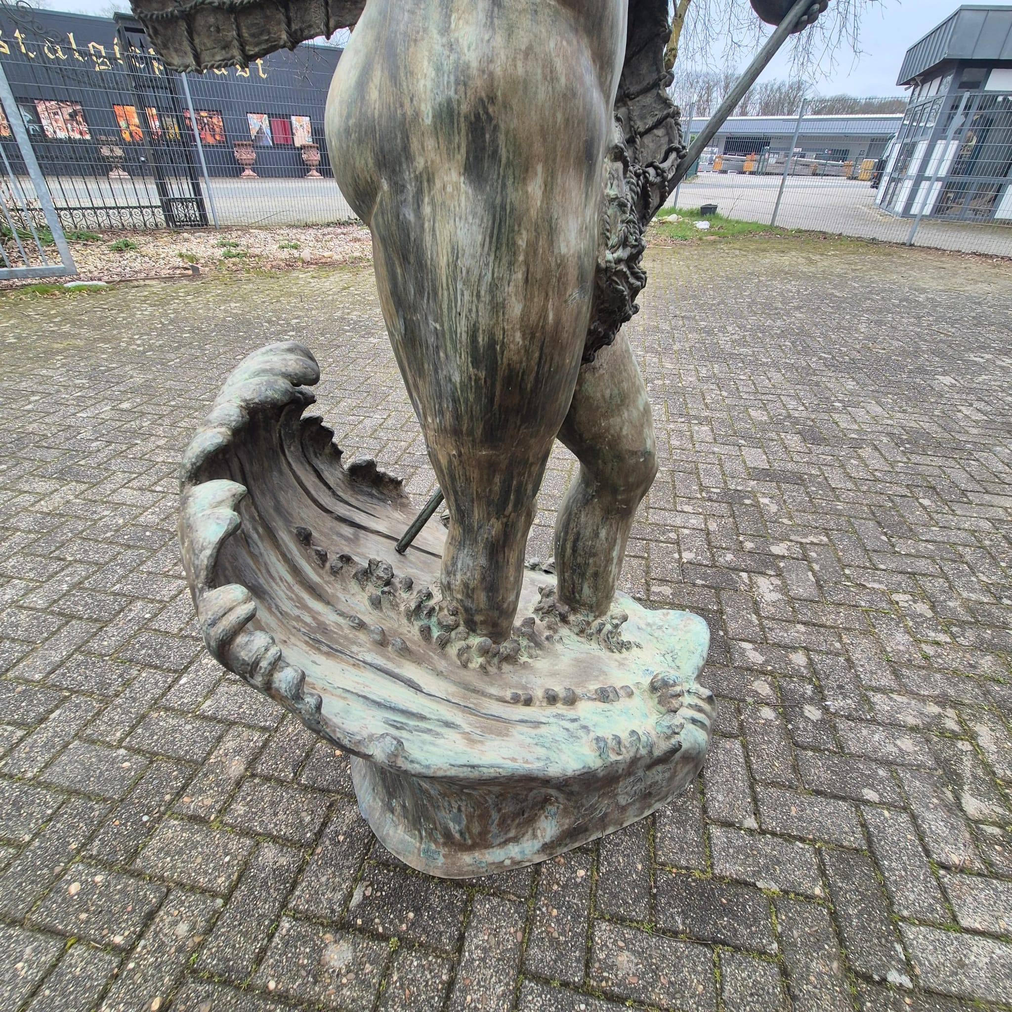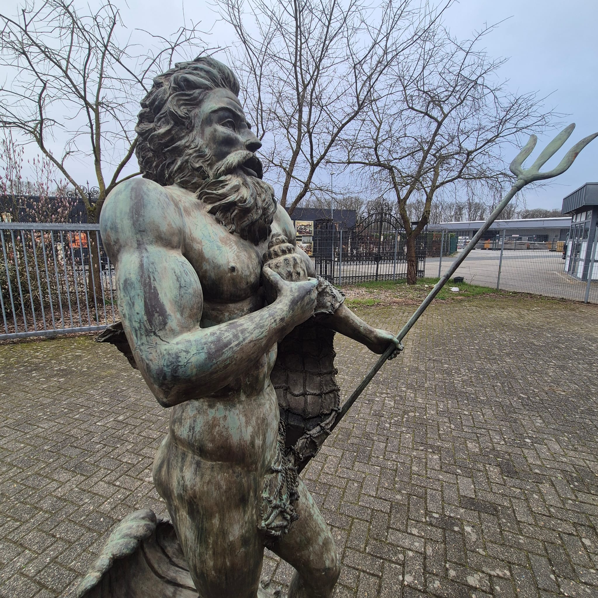 Wij bieden je een uitzonderlijke kans om een monumentale bronzen waterspuwer te bemachtigen. Deze indrukwekkende figuur beeldt Poseidon, de Griekse god van de zee (of Neptunus, zijn Romeinse tegenhanger), af in al zijn macht en majesteit.
