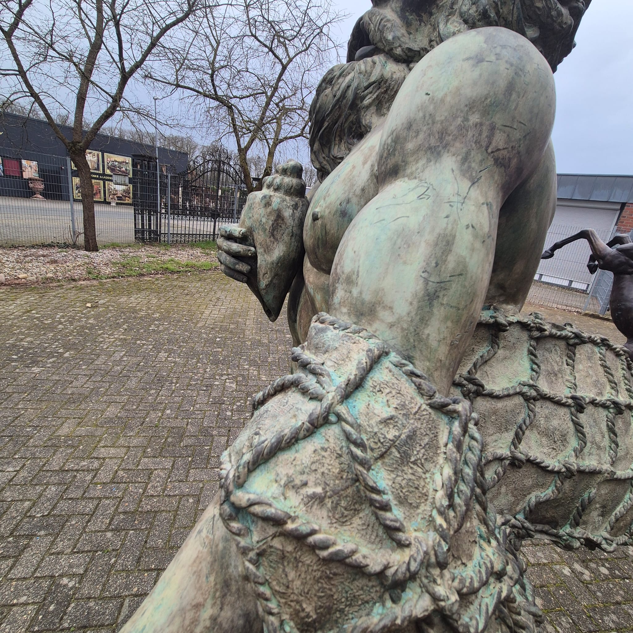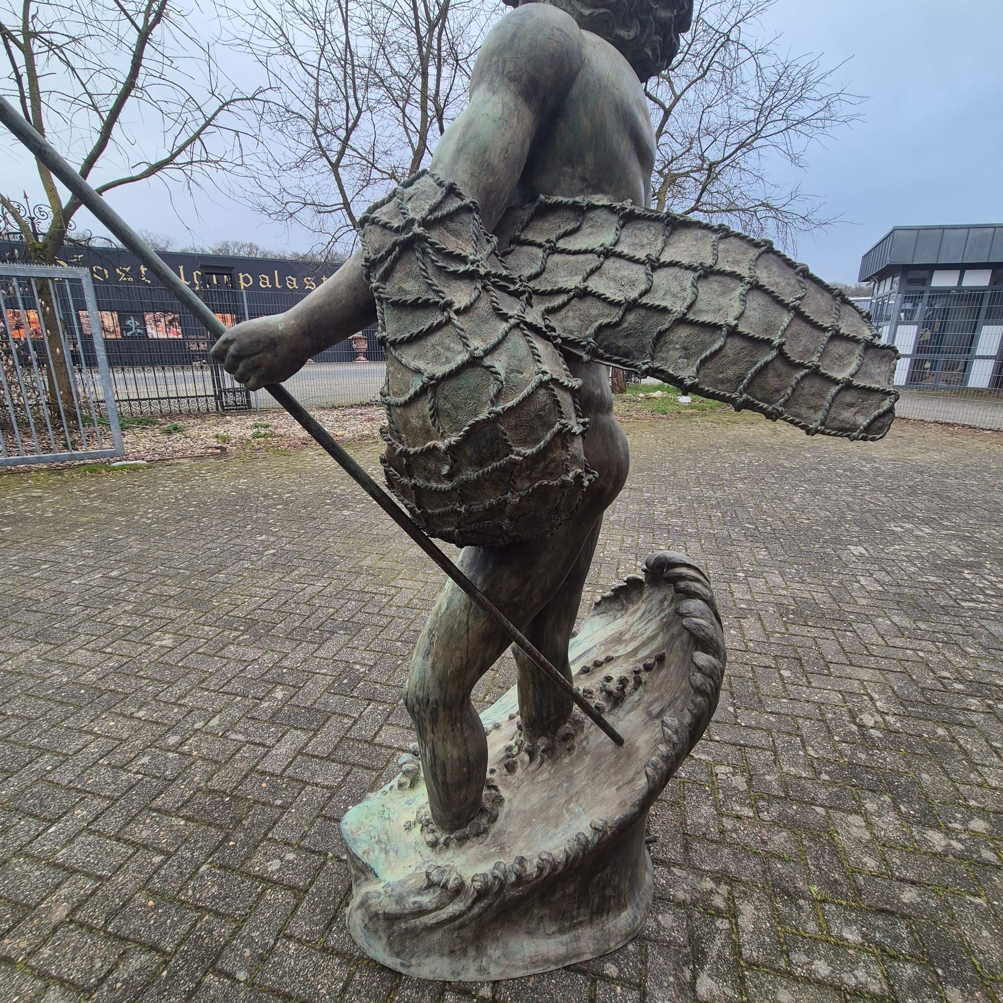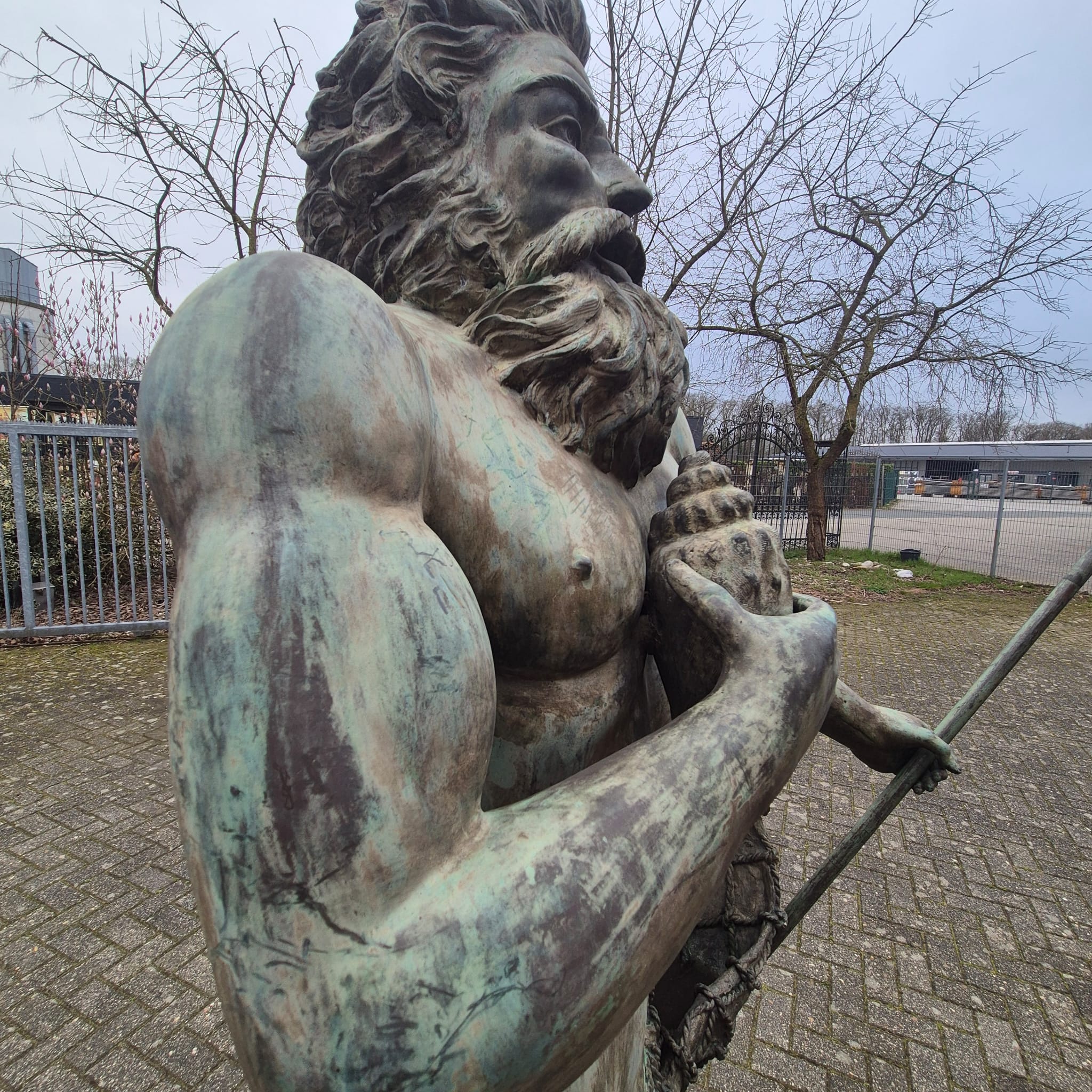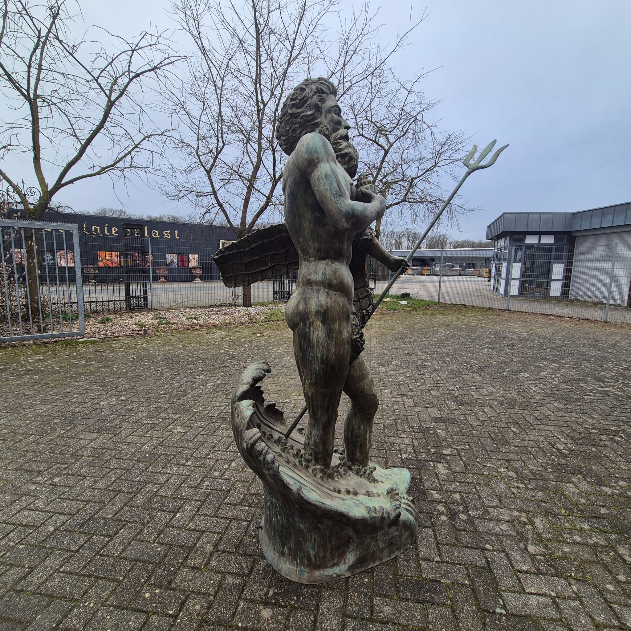 Wij bieden je een uitzonderlijke kans om een monumentale bronzen waterspuwer te bemachtigen. Deze indrukwekkende figuur beeldt Poseidon, de Griekse god van de zee (of Neptunus, zijn Romeinse tegenhanger), af in al zijn macht en majesteit.