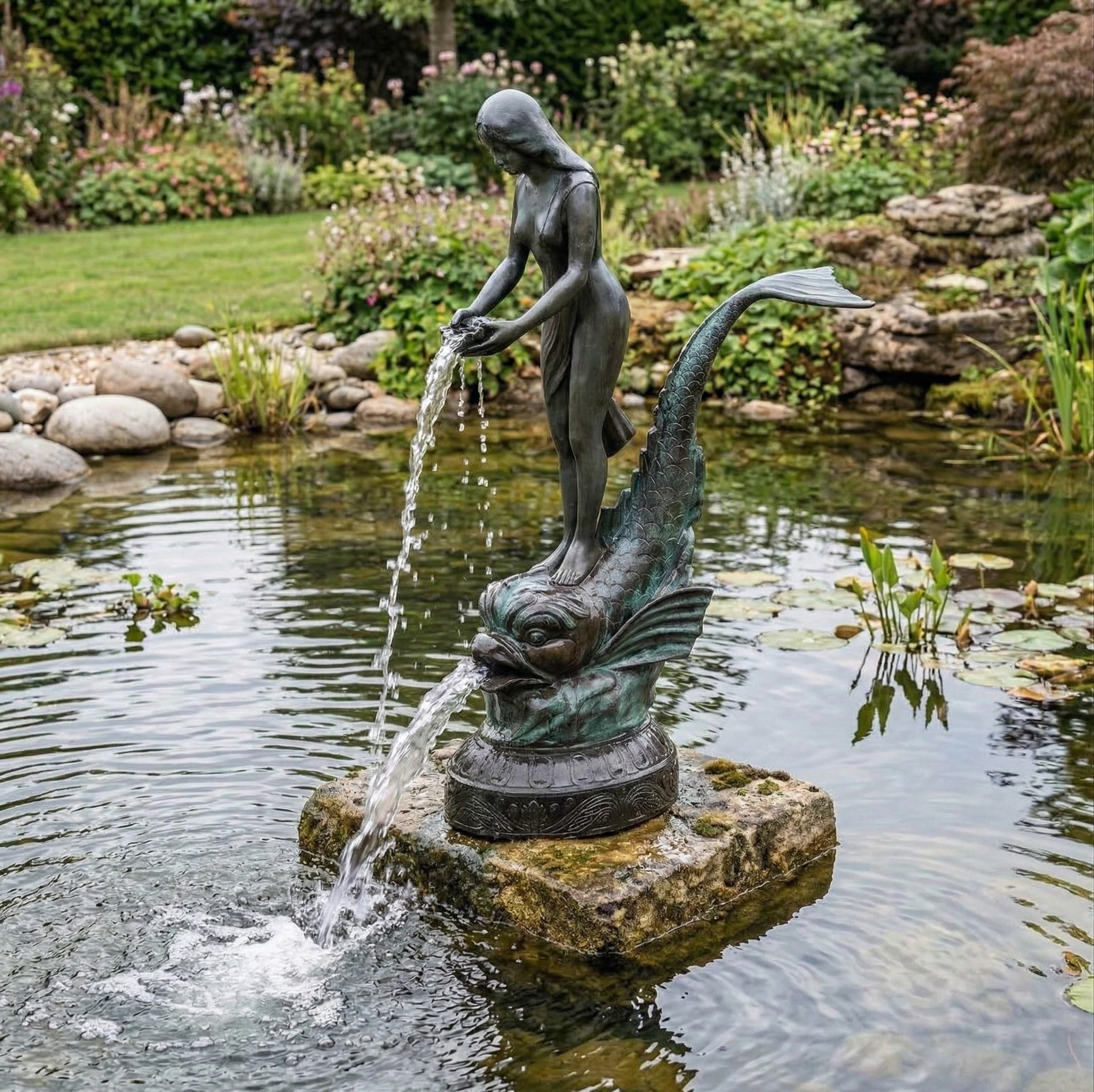 Fonteintje Vrouw met Vis Brons 1,50 m