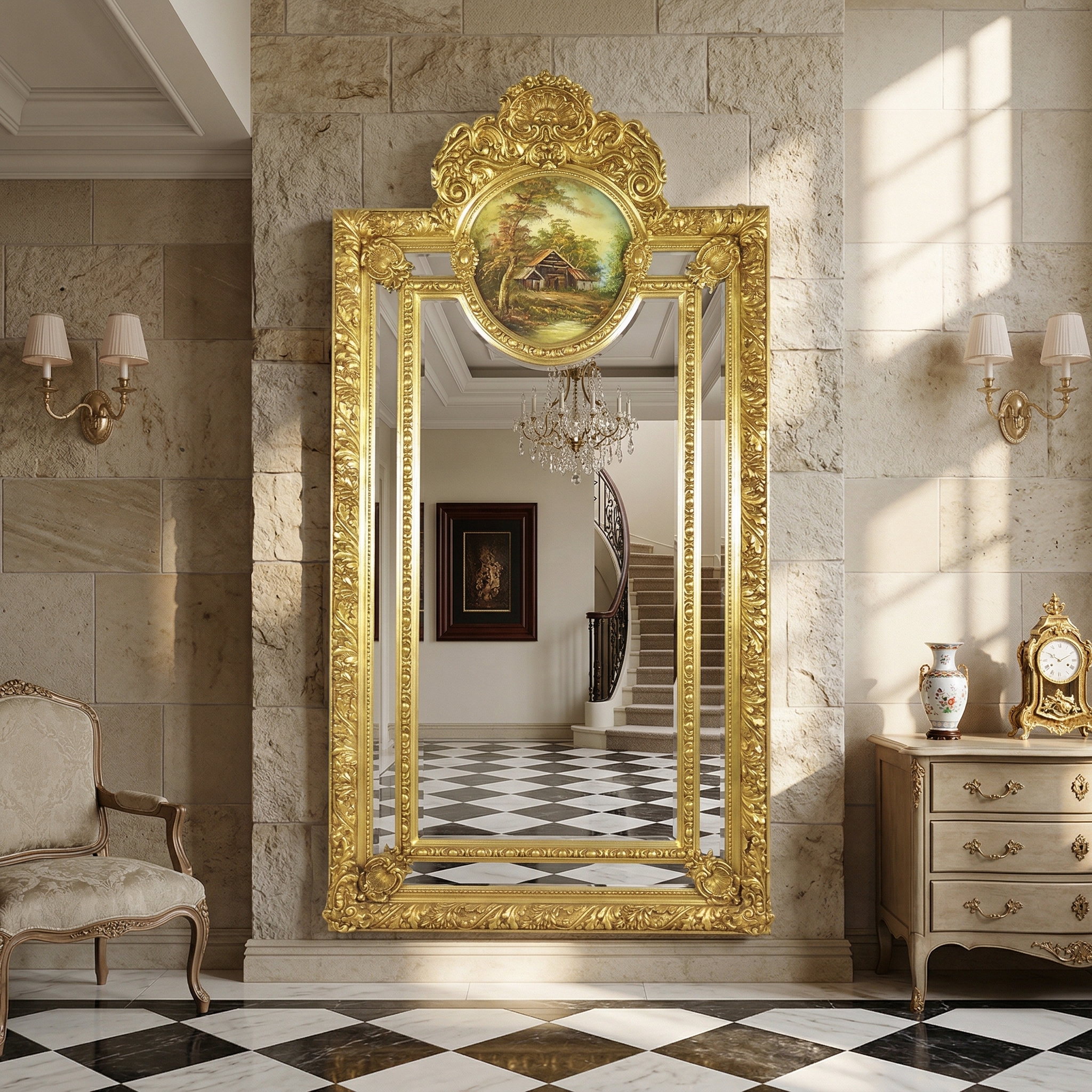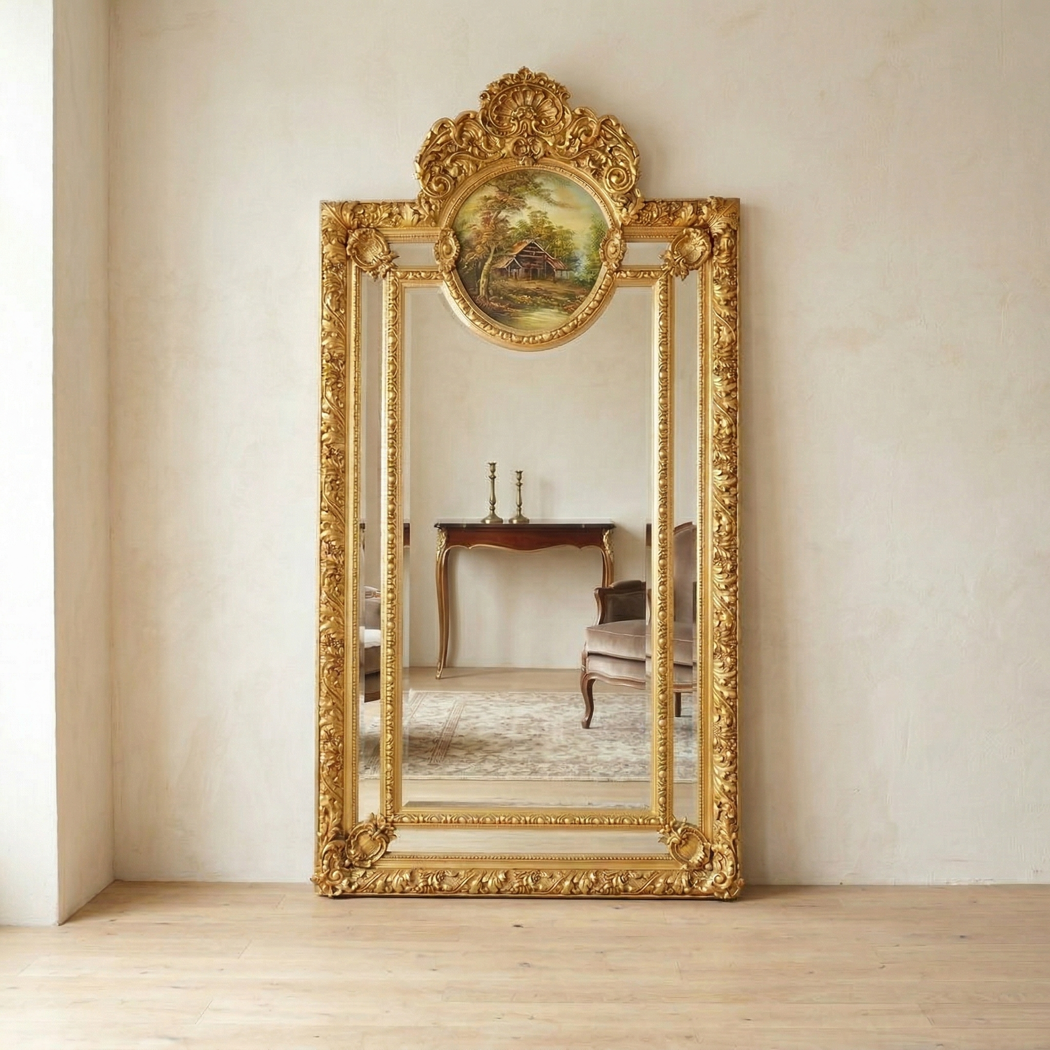 Barokspiegel met facetrand. Gemaakt van massief hout en gips.