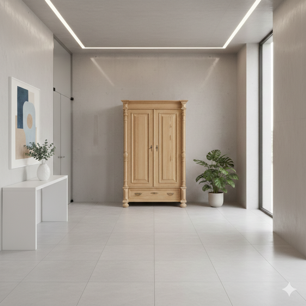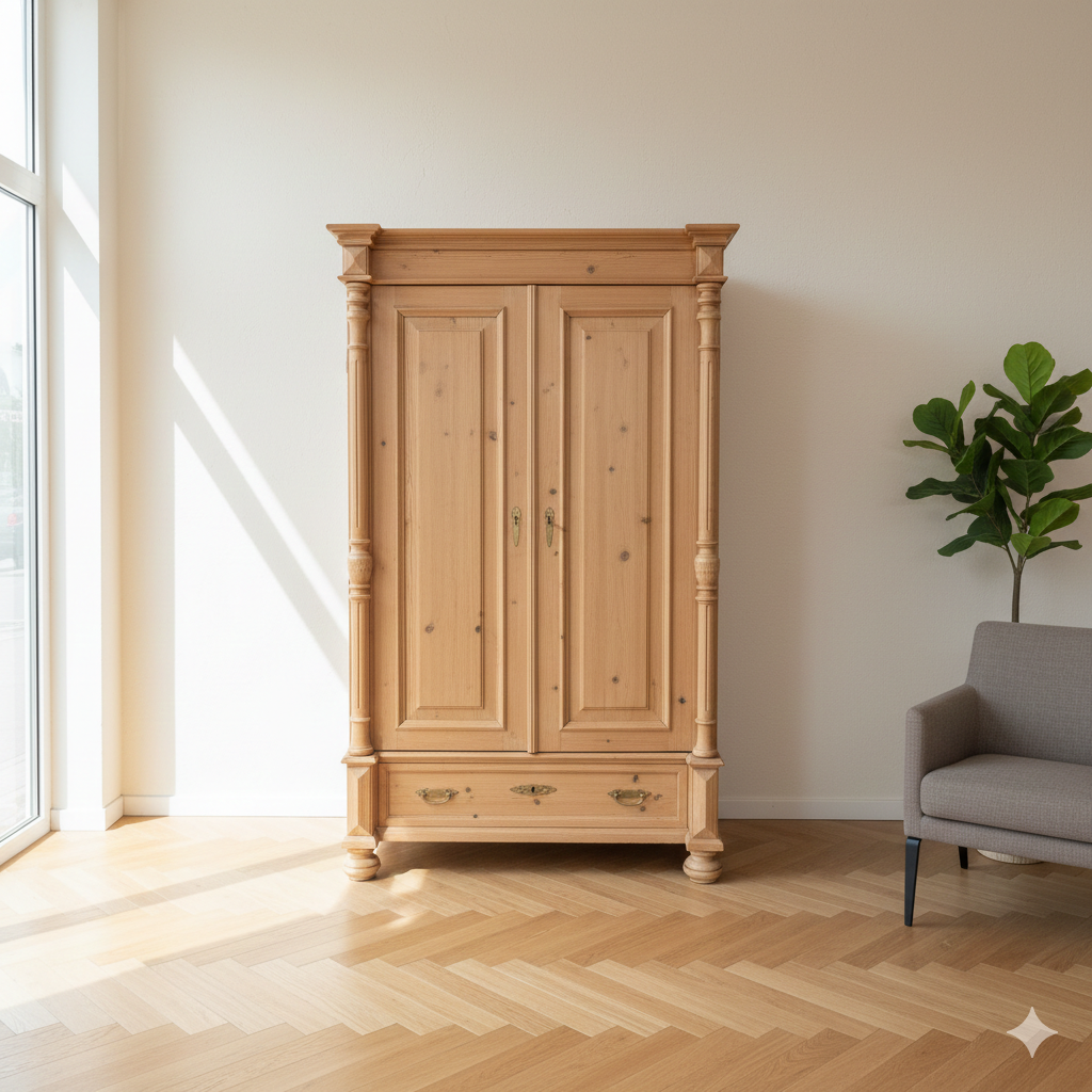 Gründerzeit Kledingkast / Halmeubel – Massief Grenen, ca. 1880