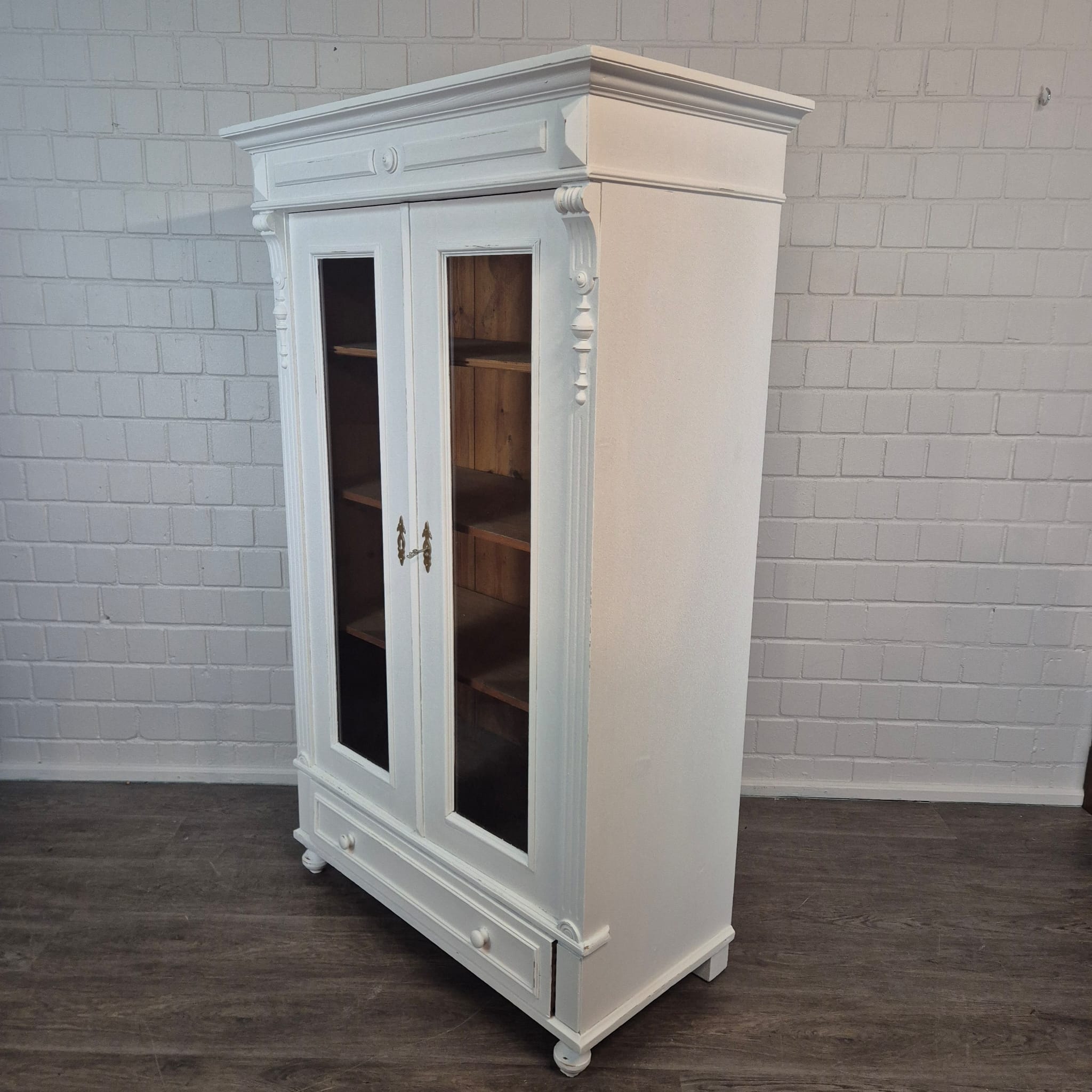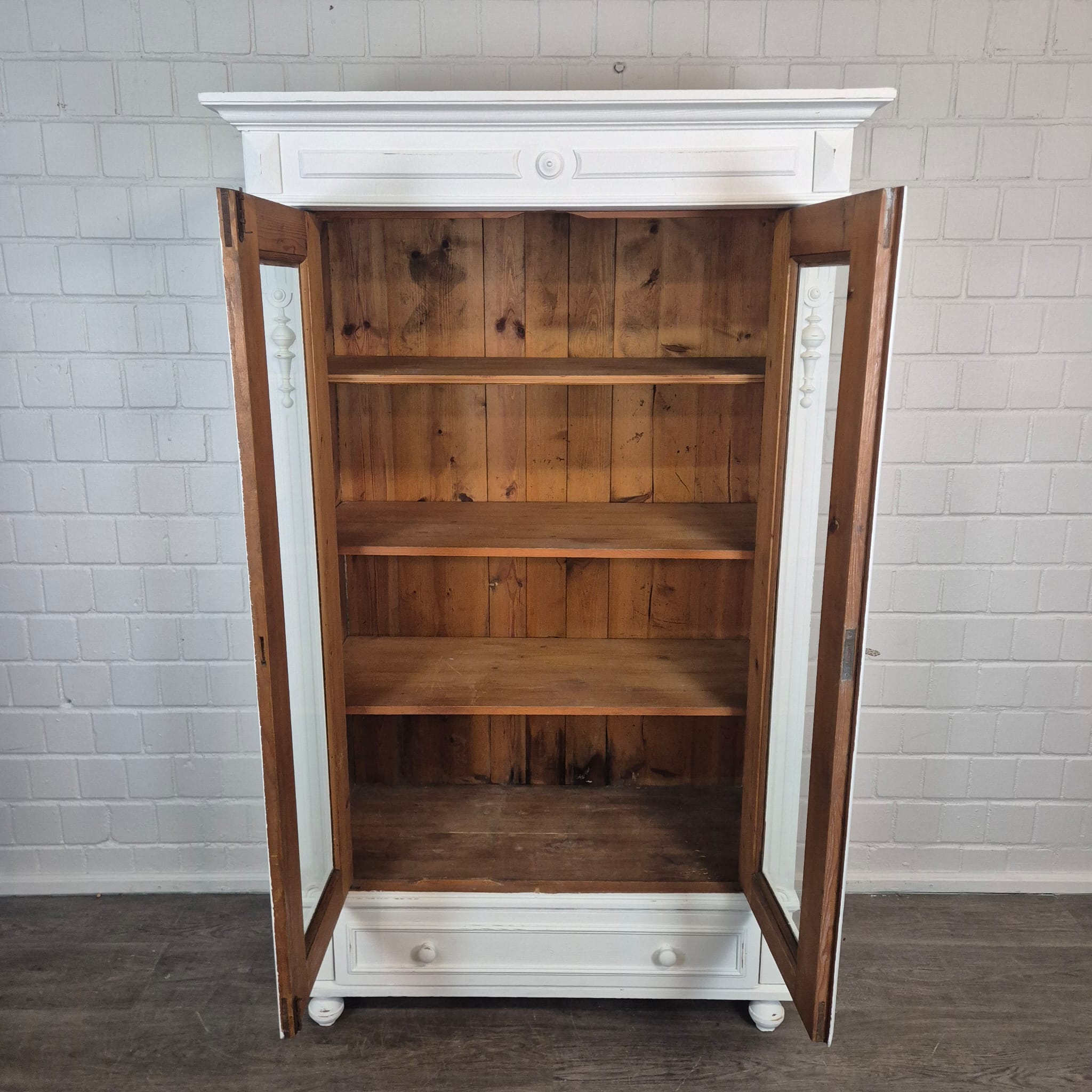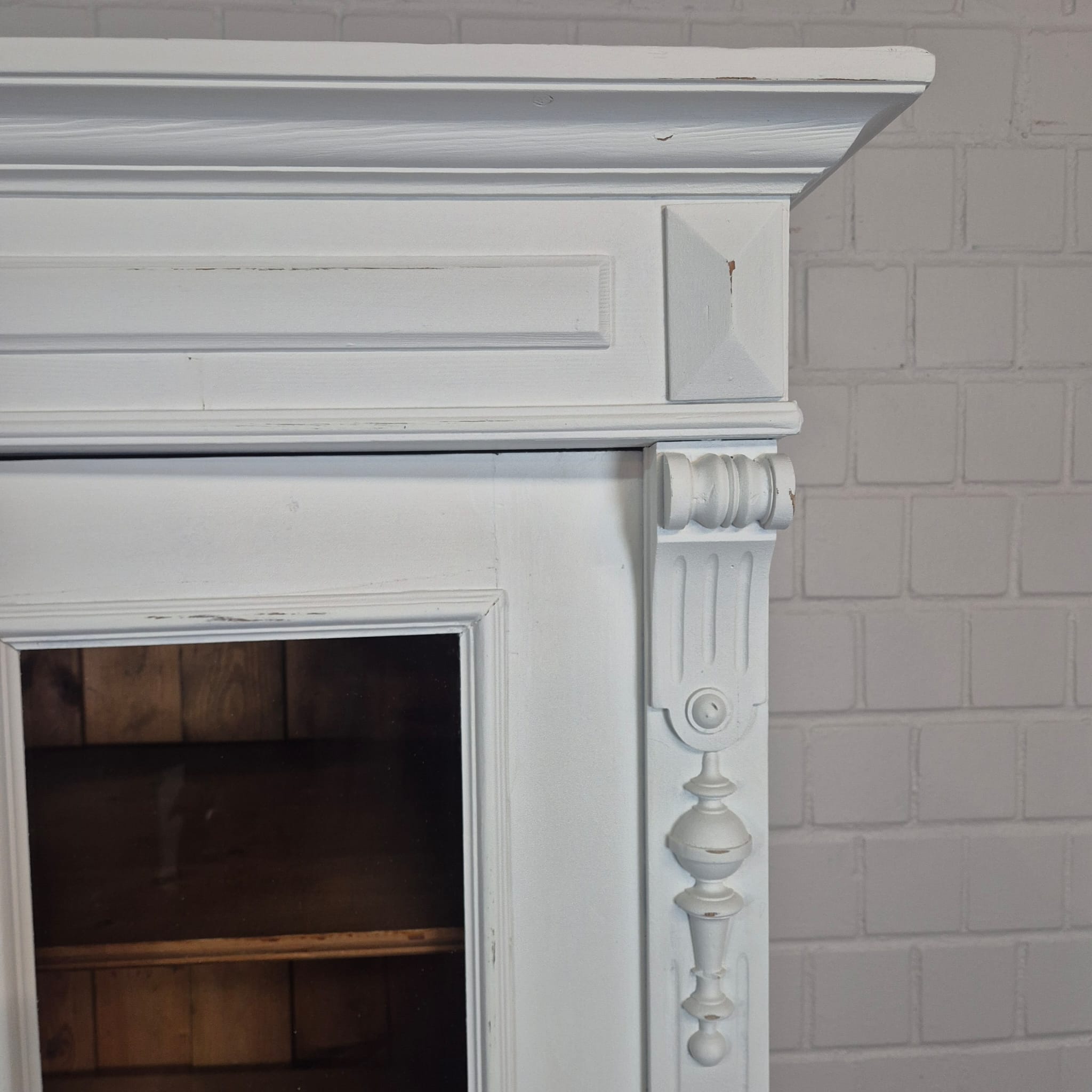 Gründerzeit Vitrinekast / Kledingkast – Massief Grenen, ca. 1880
