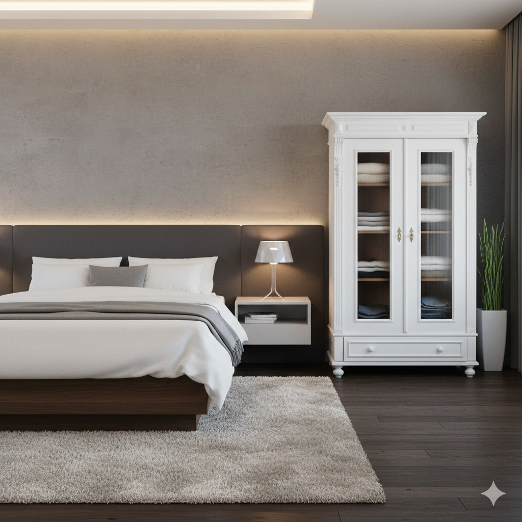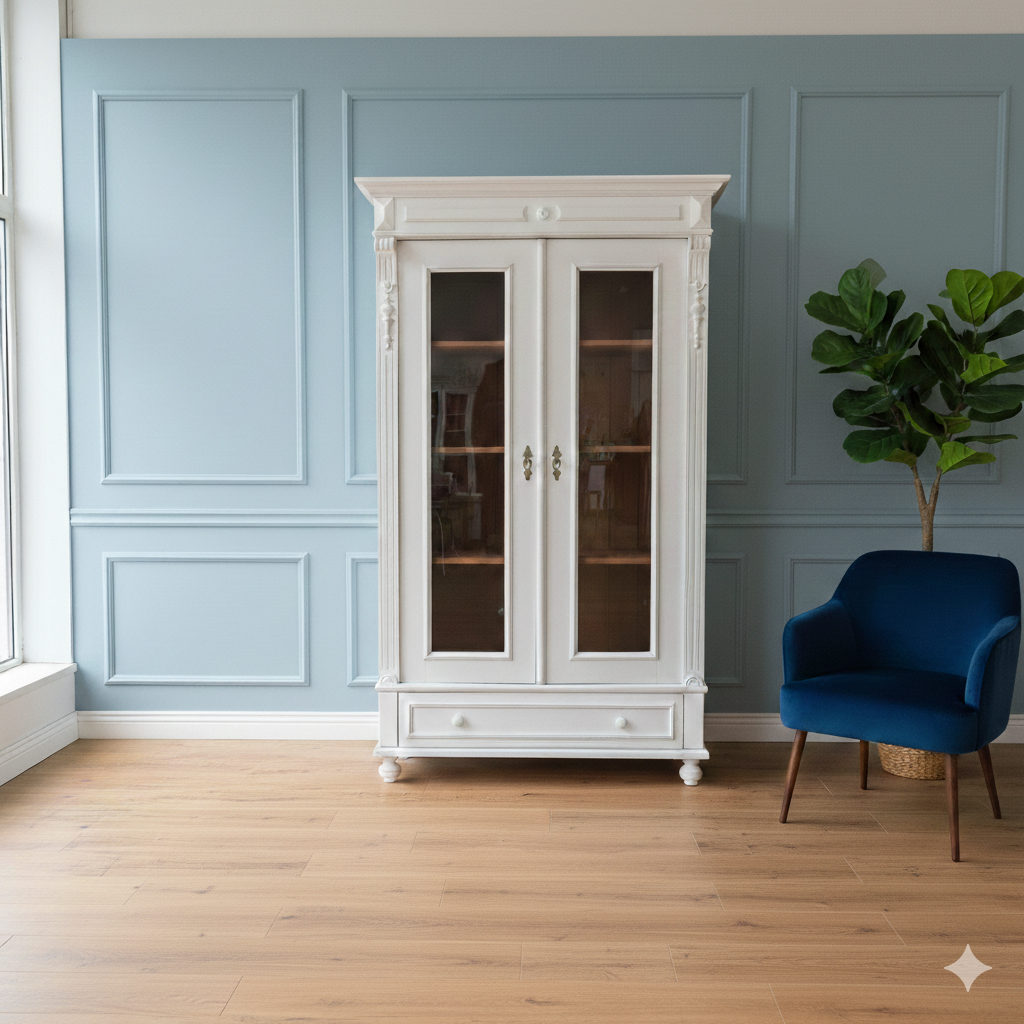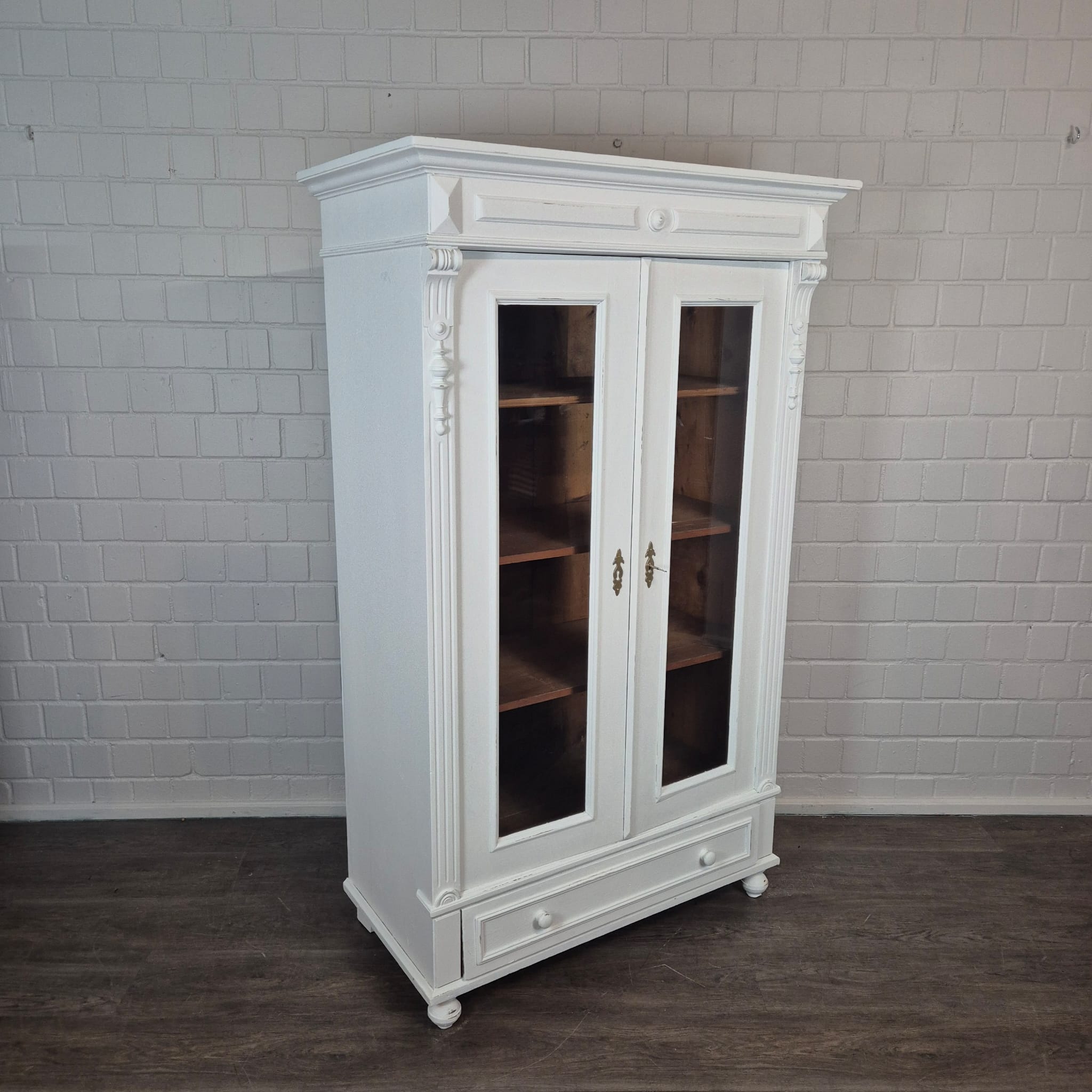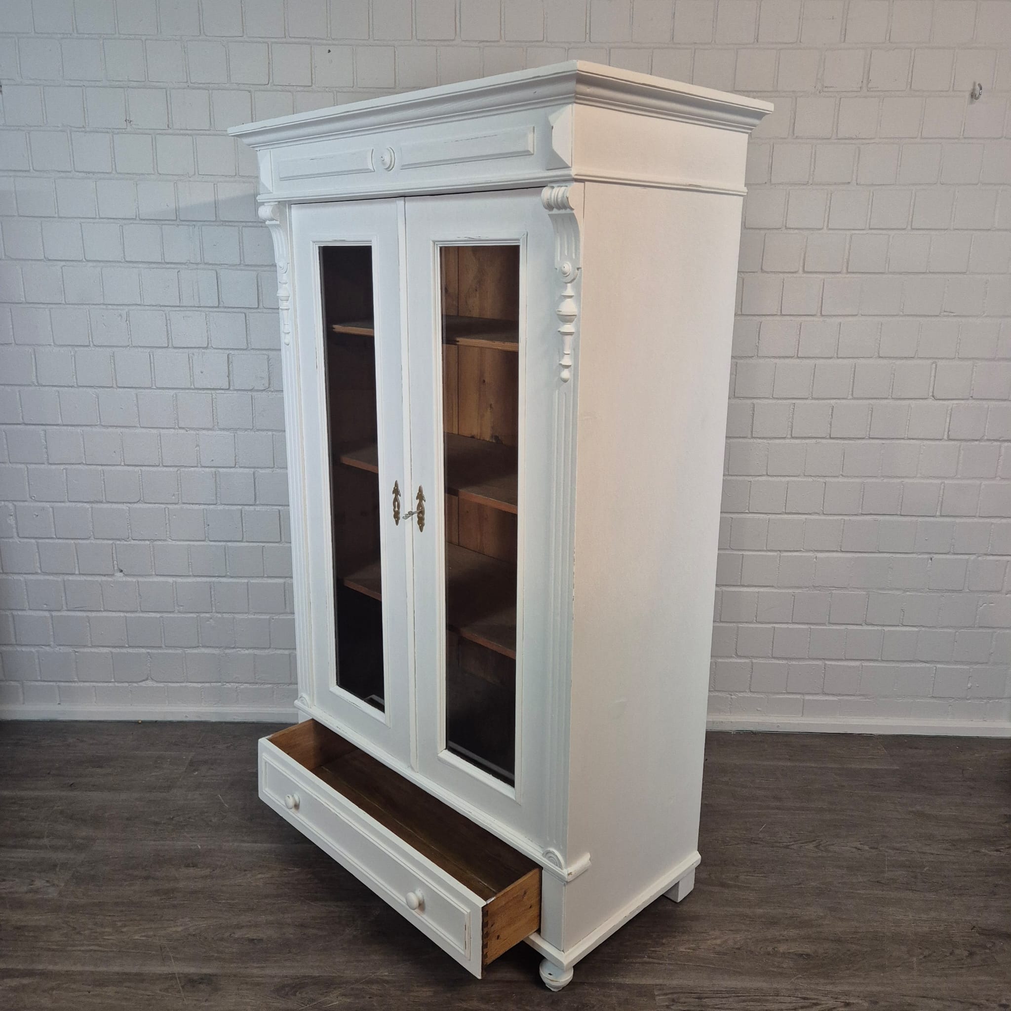 Gründerzeit Vitrinekast / Kledingkast – Massief Grenen, ca. 1880