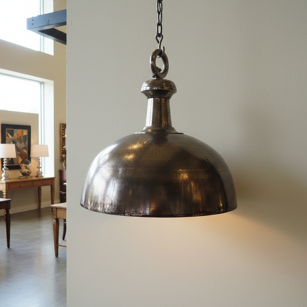Hanglamp van metaal in een nostalgische look. Geschikt voor huis, gastronomie en handel.