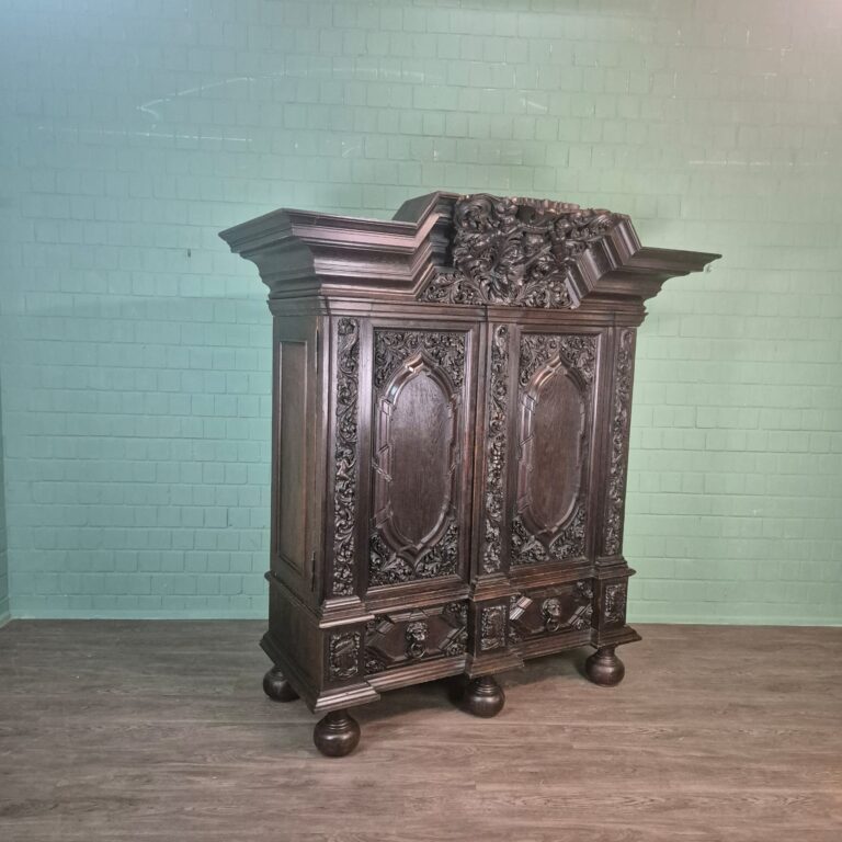 Gerestaureerde barok kledingkast gemaakt van massief eiken (gewaxt) uit ca. 1880. De kledingkast is in een zeer goede staat en heeft minimale gebruikssporen. Demontabel (8-delig).