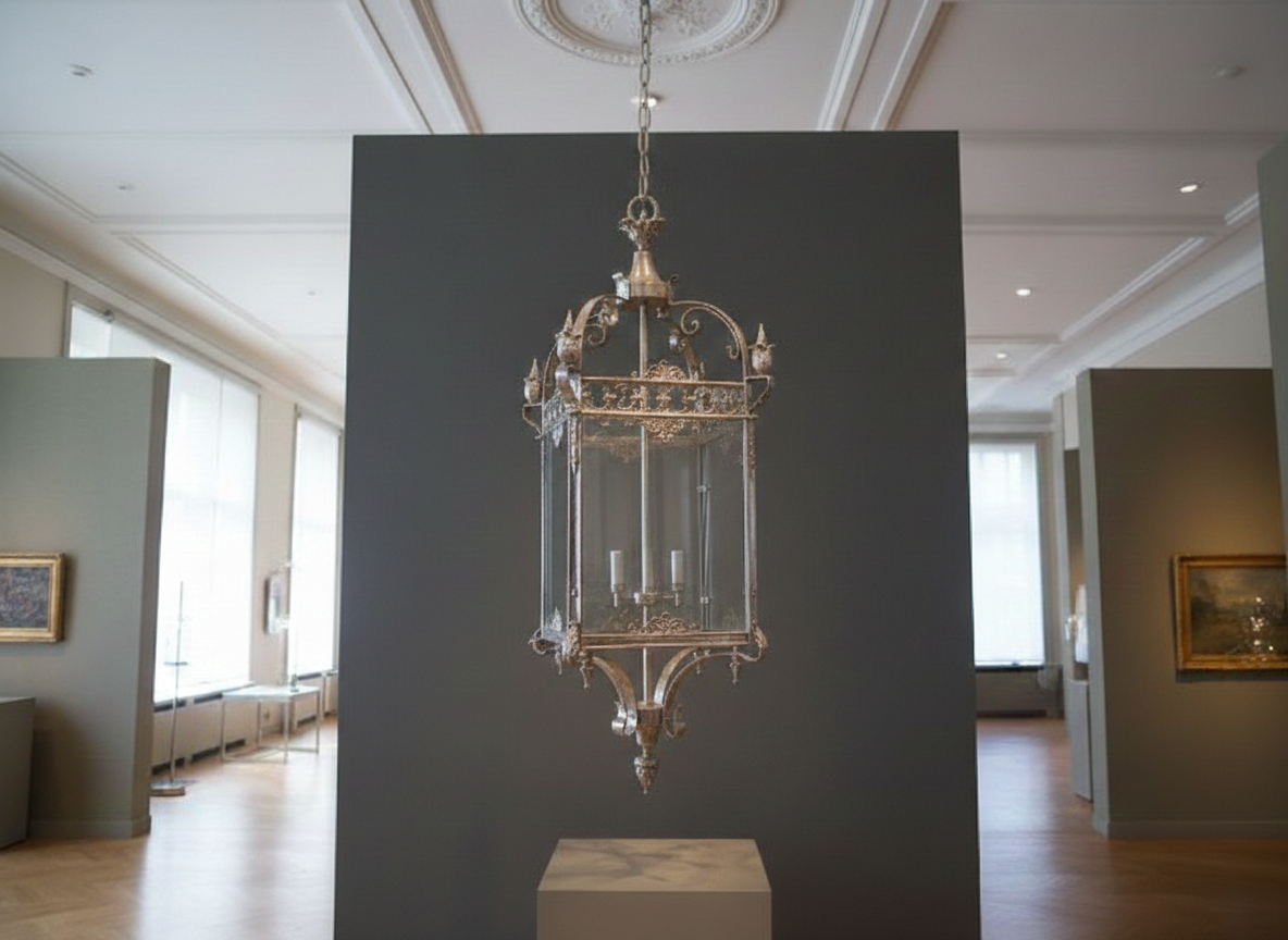 Prachtige lamp gemaakt van ijzer en glas in nostalgische look.