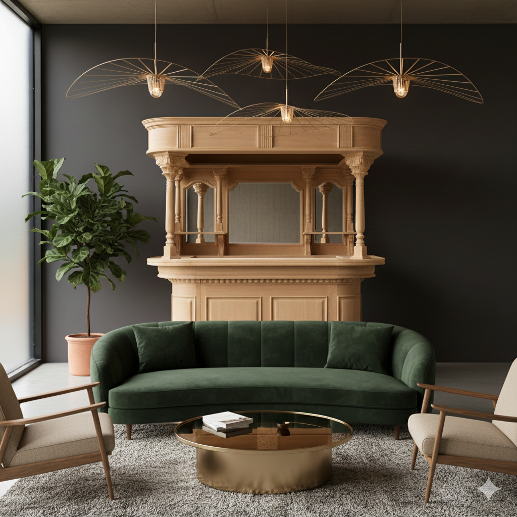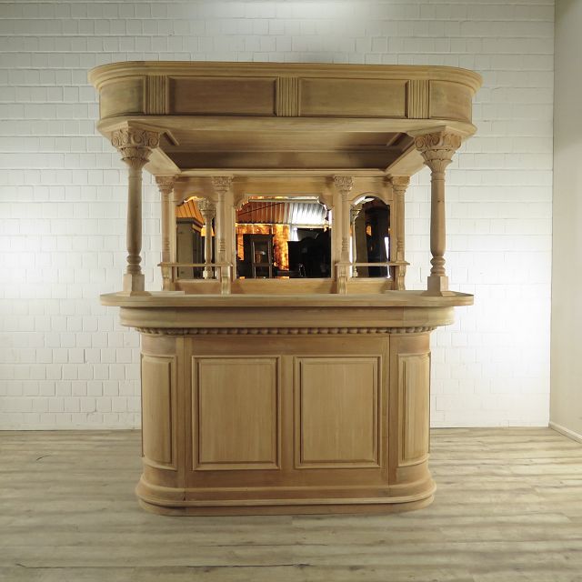 Thuisbar gemaakt van massief mahoniehout. Met spiegel en pilaren in de achterbalk. In 4 delen te scheiden.