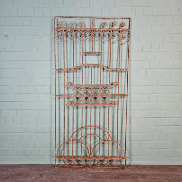 Voeg een uniek, historisch element toe aan uw huis of tuin met dit prachtige, originele smeedijzeren Jugendstil hekwerk, gemaakt rond 1910. Dit authentieke stuk is een waar bewijs van de elegantie en het vakmanschap van rond de eeuwwisseling en heeft karakteristieke vloeiende vormen en bloemmotieven.