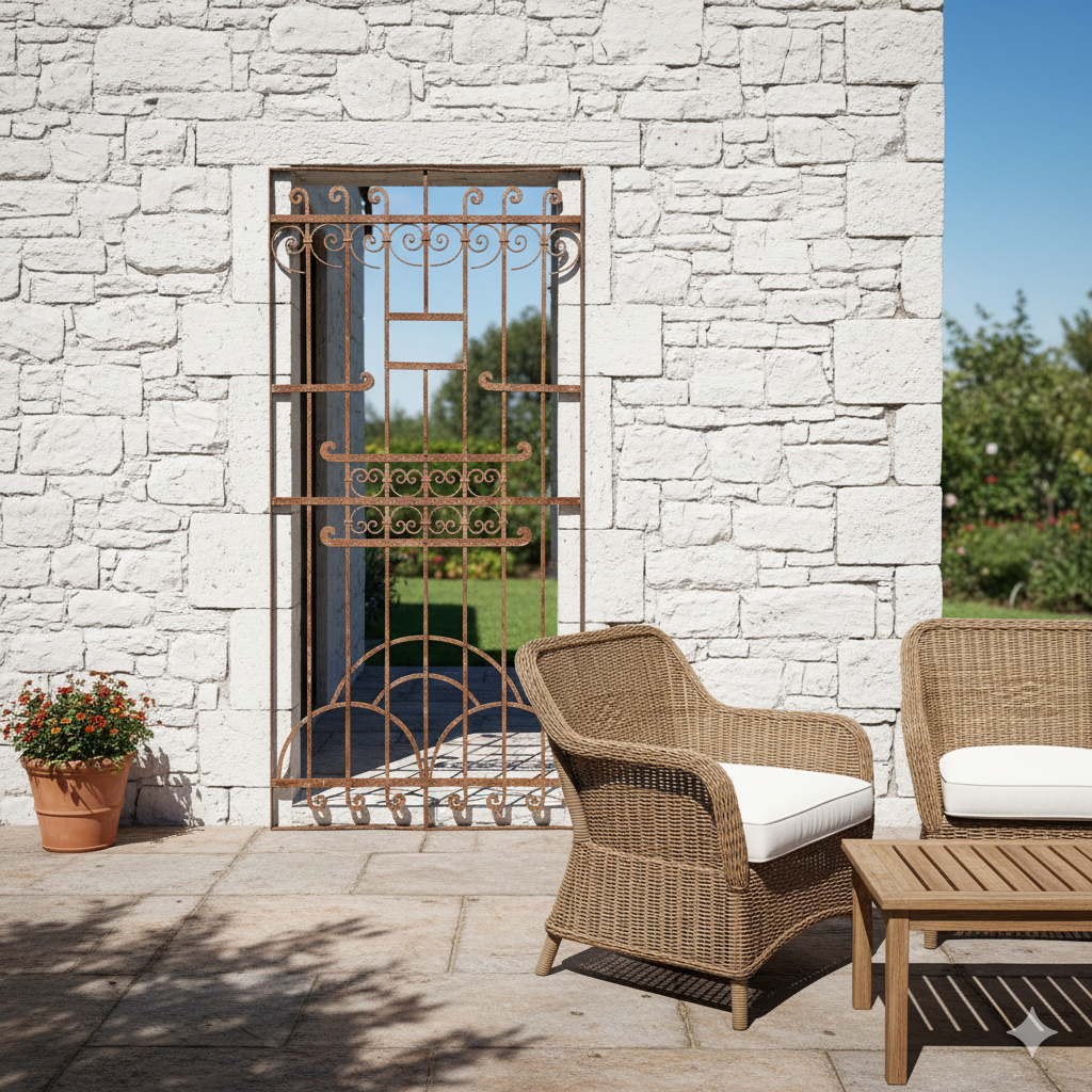 Veelzijdig inzetbaar: Ideaal als decoratief element in de tuin, als wanddecoratie binnen en buiten, voor het creëren van een individueel schuttingelement, een poortvulling of als designhighlight in een moderne loft of historisch pand. Het kan ook uitstekend dienen als rek voor planten.