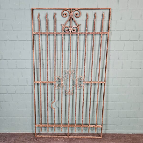 Voeg een uniek, historisch element toe aan uw huis of tuin met dit prachtige, originele smeedijzeren Jugendstil hekwerk, gemaakt rond 1910. Dit authentieke stuk is een waar bewijs van de elegantie en het vakmanschap van rond de eeuwwisseling en heeft karakteristieke vloeiende vormen en bloemmotieven.