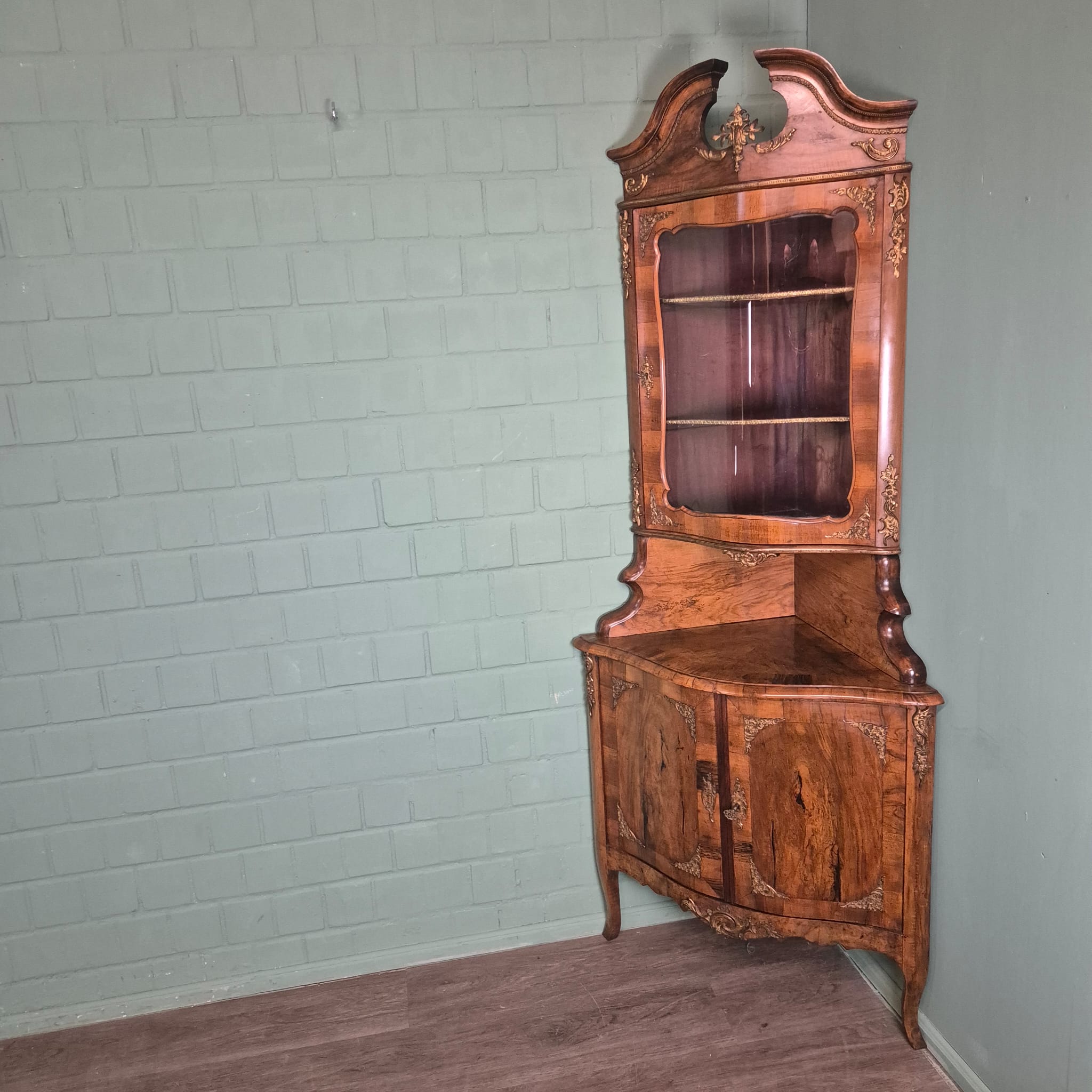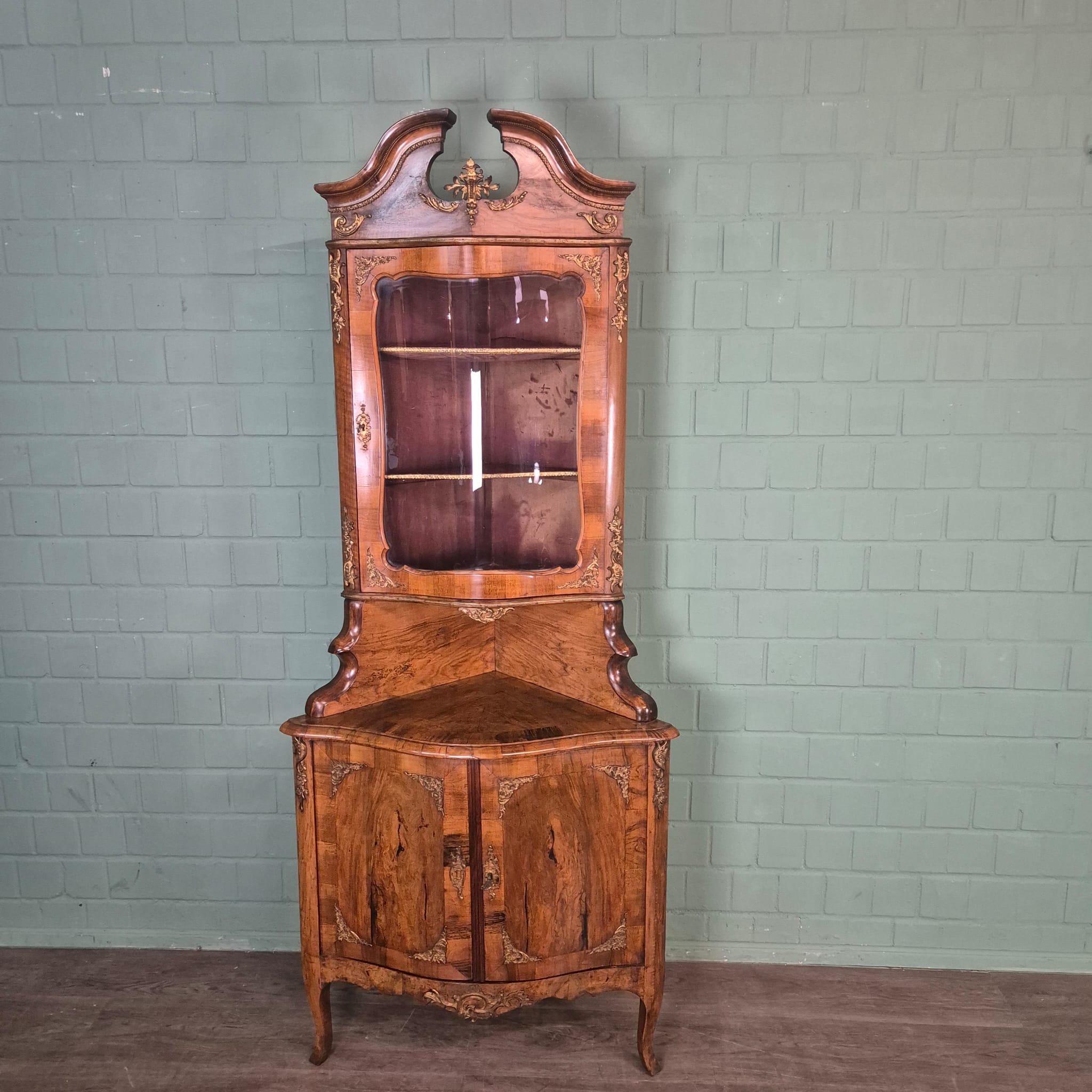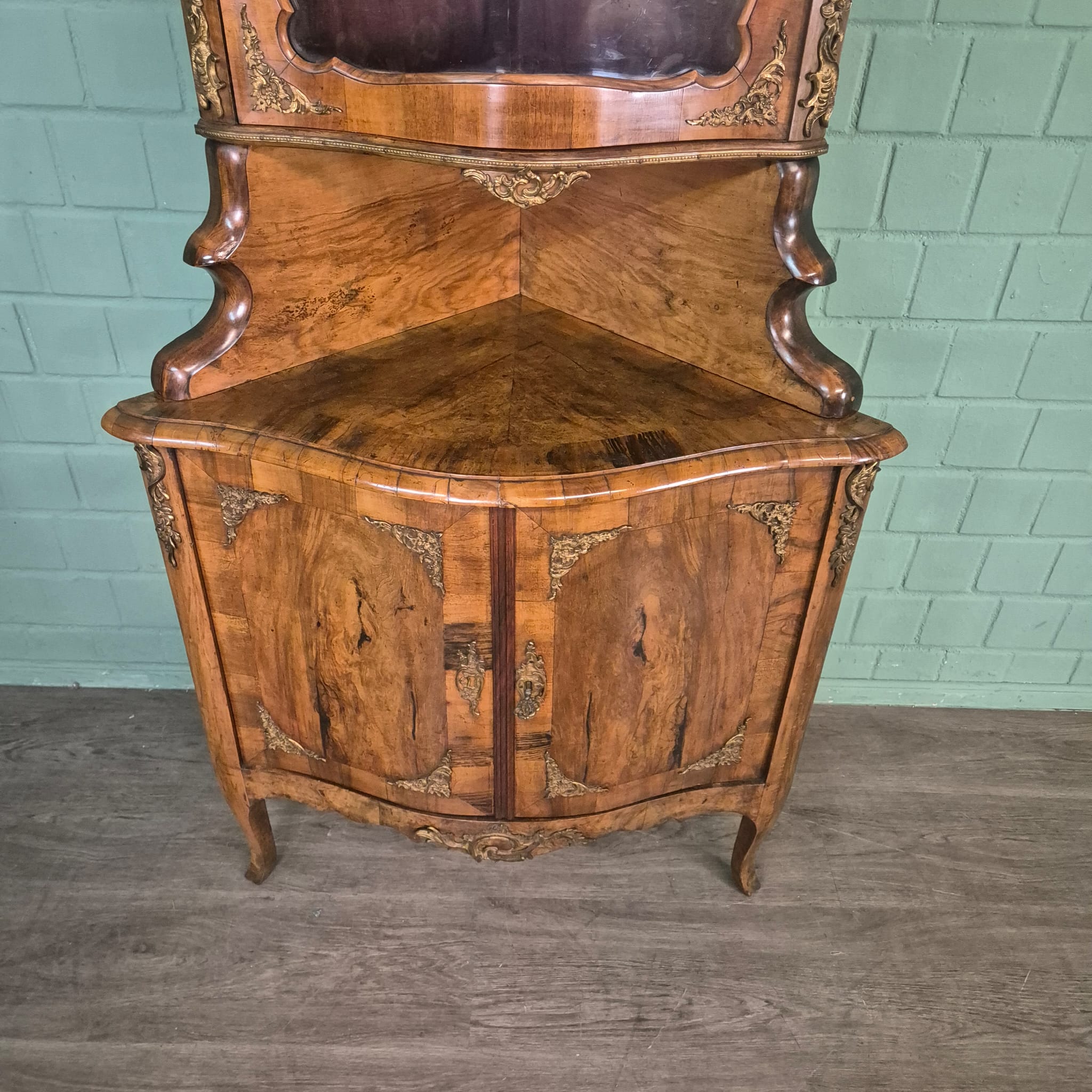 Gerestaureerde barok hoekkast noten gefineerd uit ca. 1780. De kast is in een zeer goede staat en heeft minimale gebruikssporen. Demontabel (2-delig).