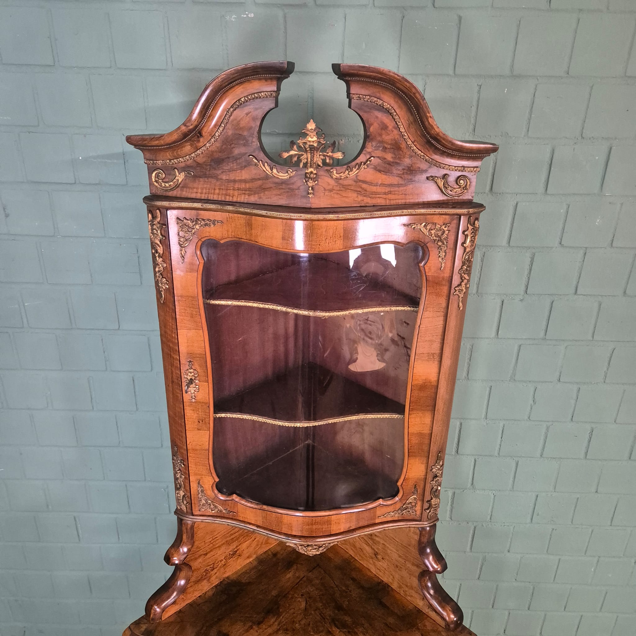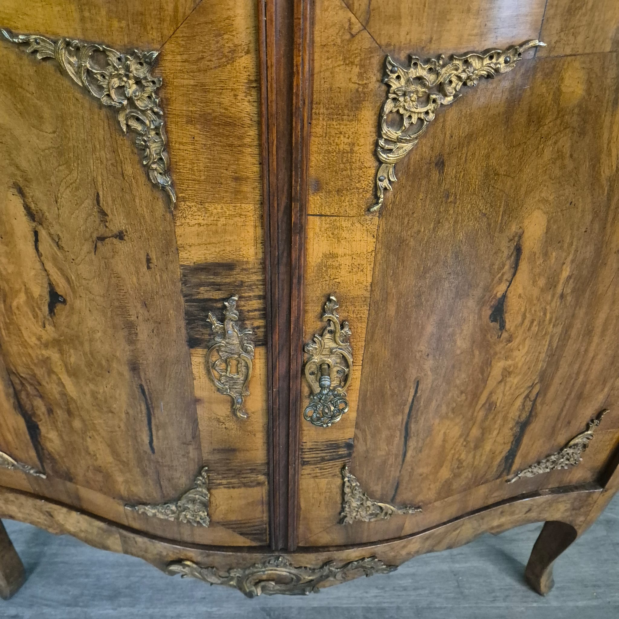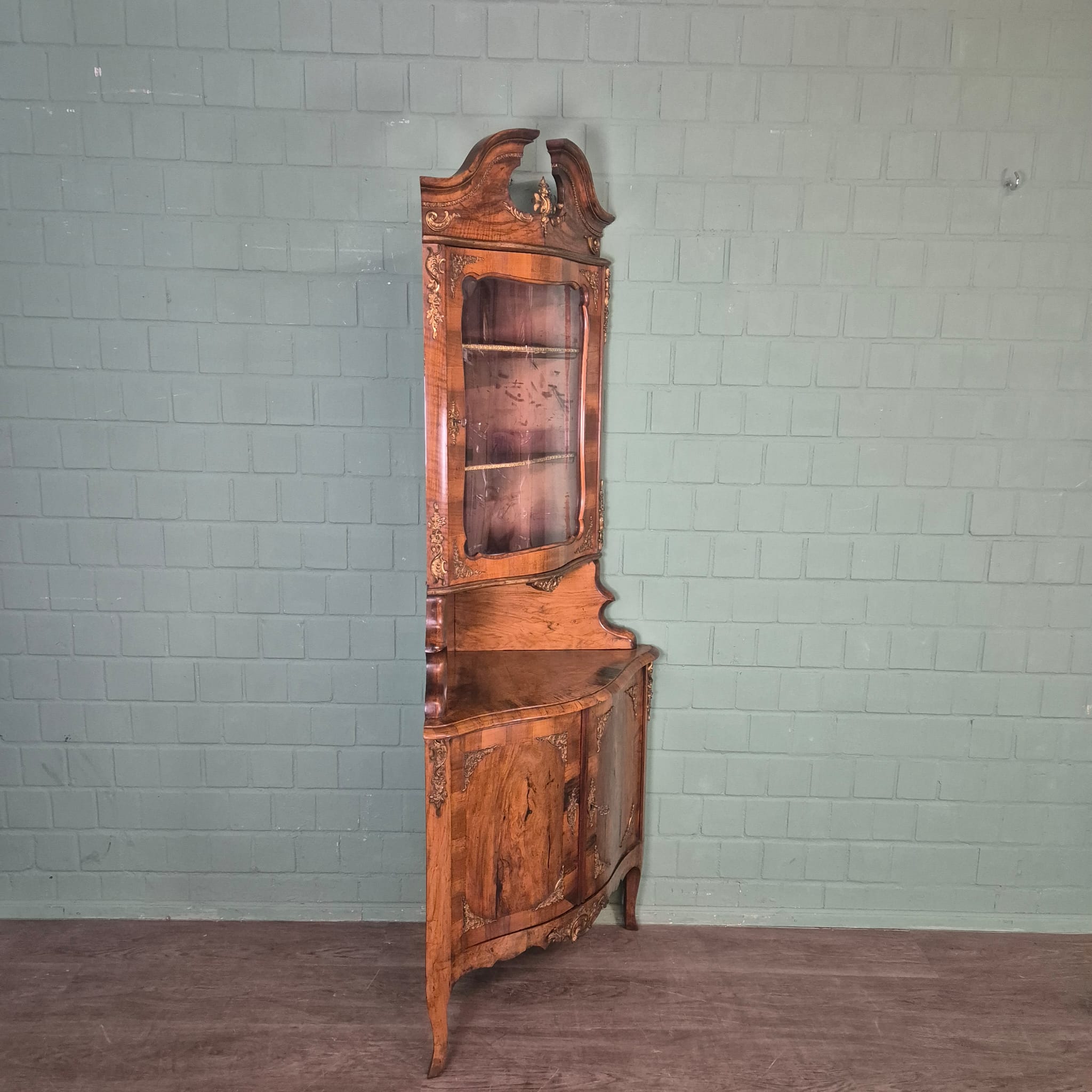 Gerestaureerde barok hoekkast noten gefineerd uit ca. 1780. De kast is in een zeer goede staat en heeft minimale gebruikssporen. Demontabel (2-delig).