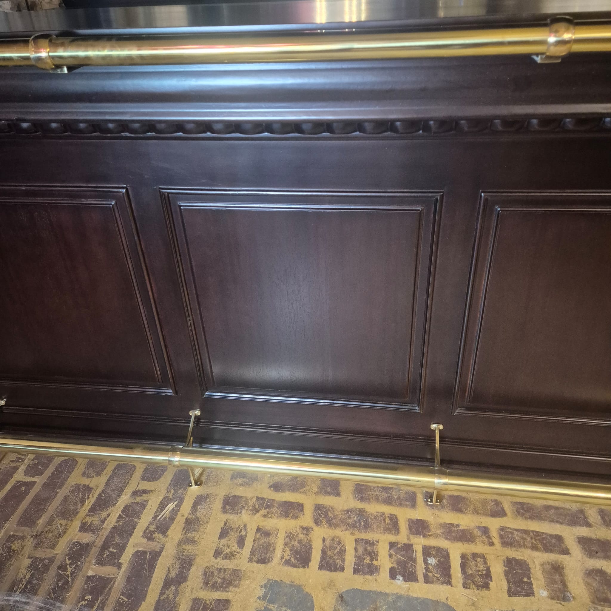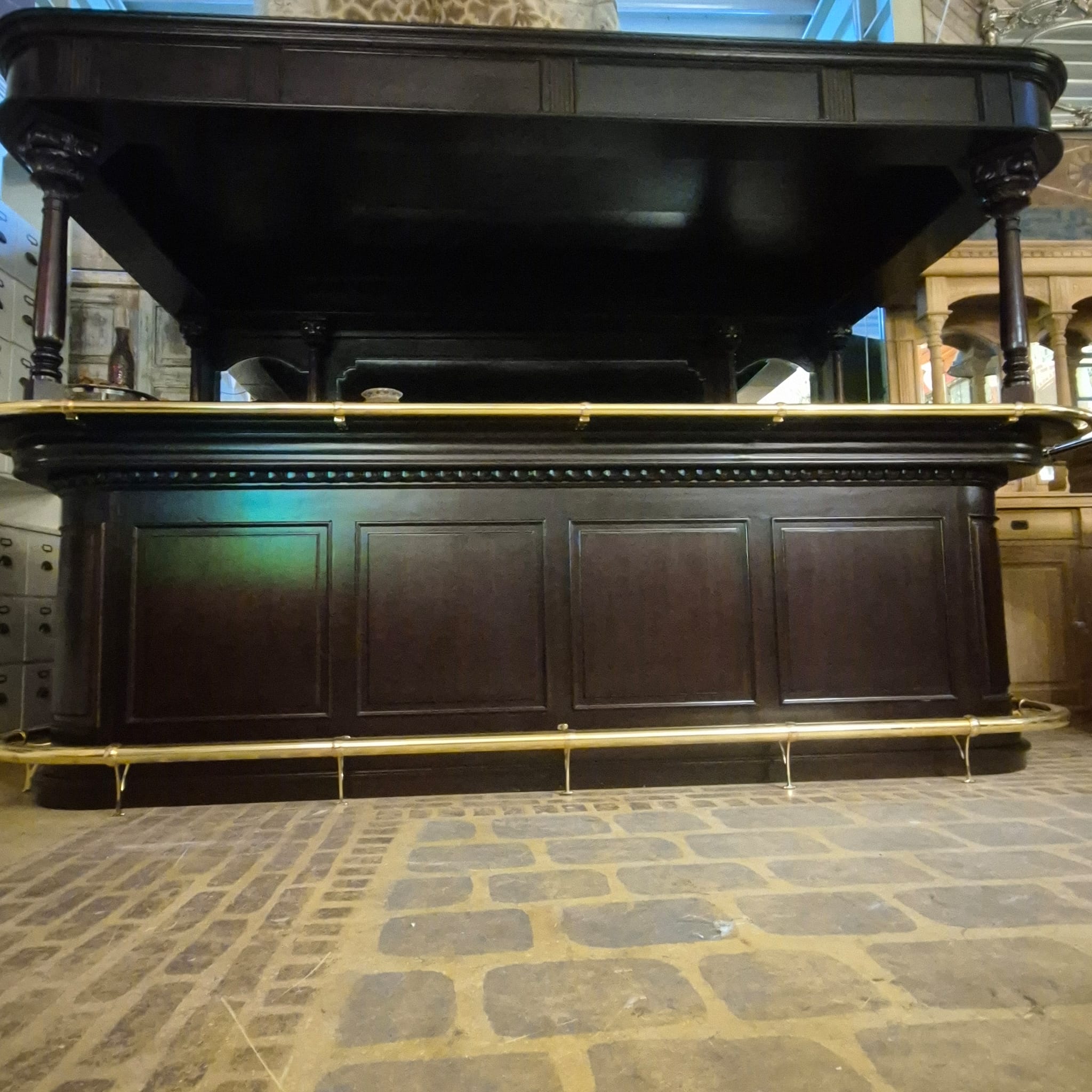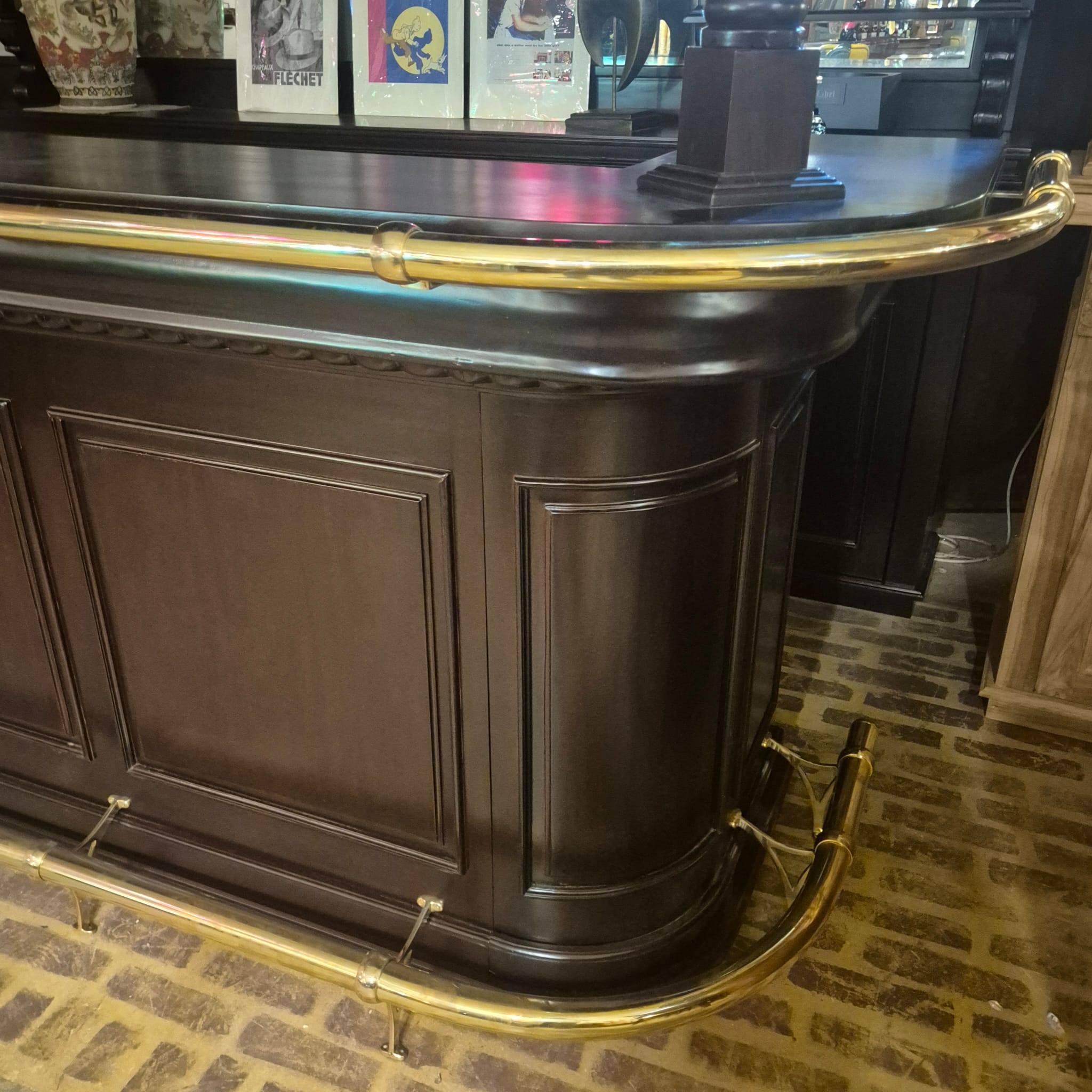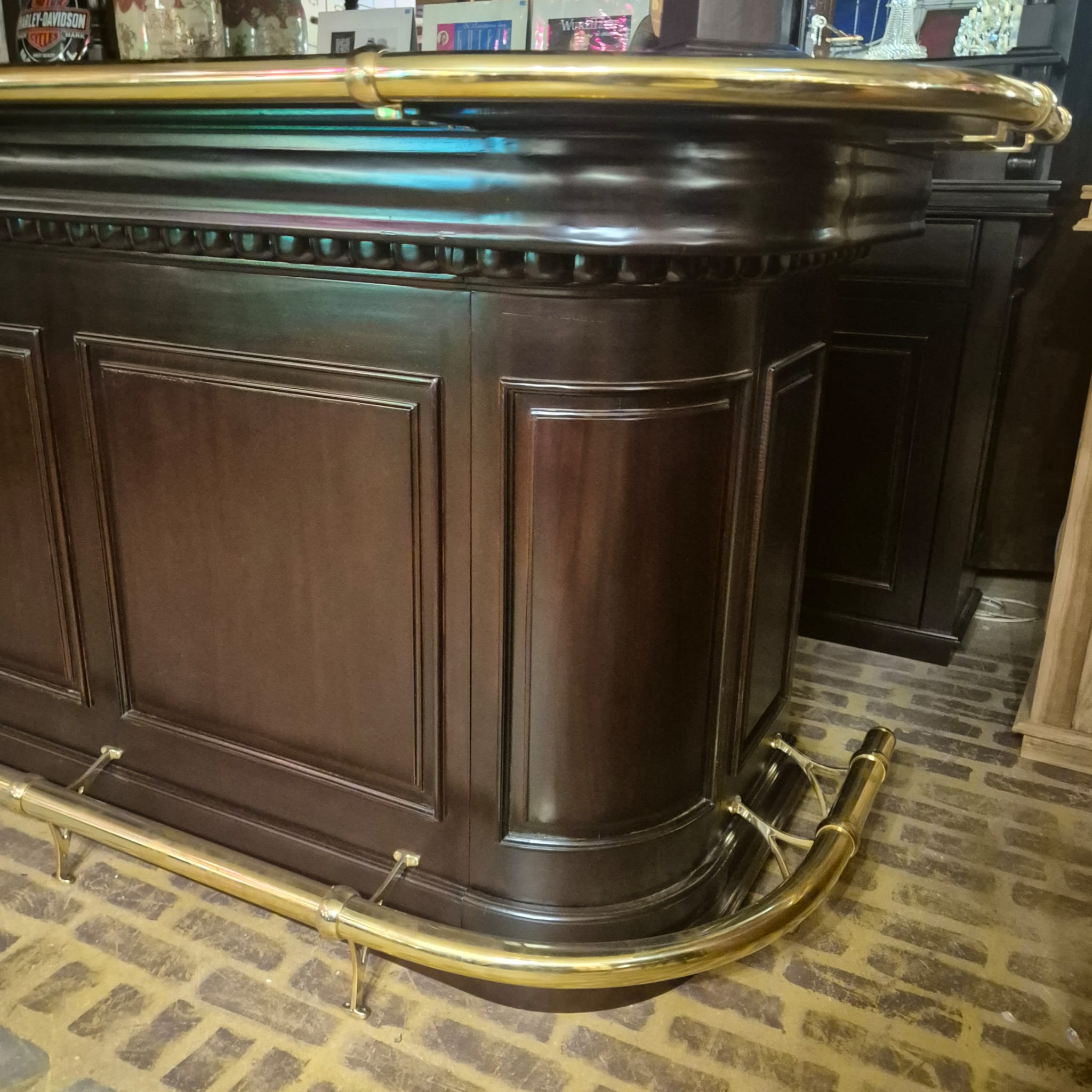Huisbar gemaakt van massief hout, maakt indruk met zijn imposante uitstraling, evenals de stijlvolle achterkast met spiegels en zuilen. Demontabel (8-delig).