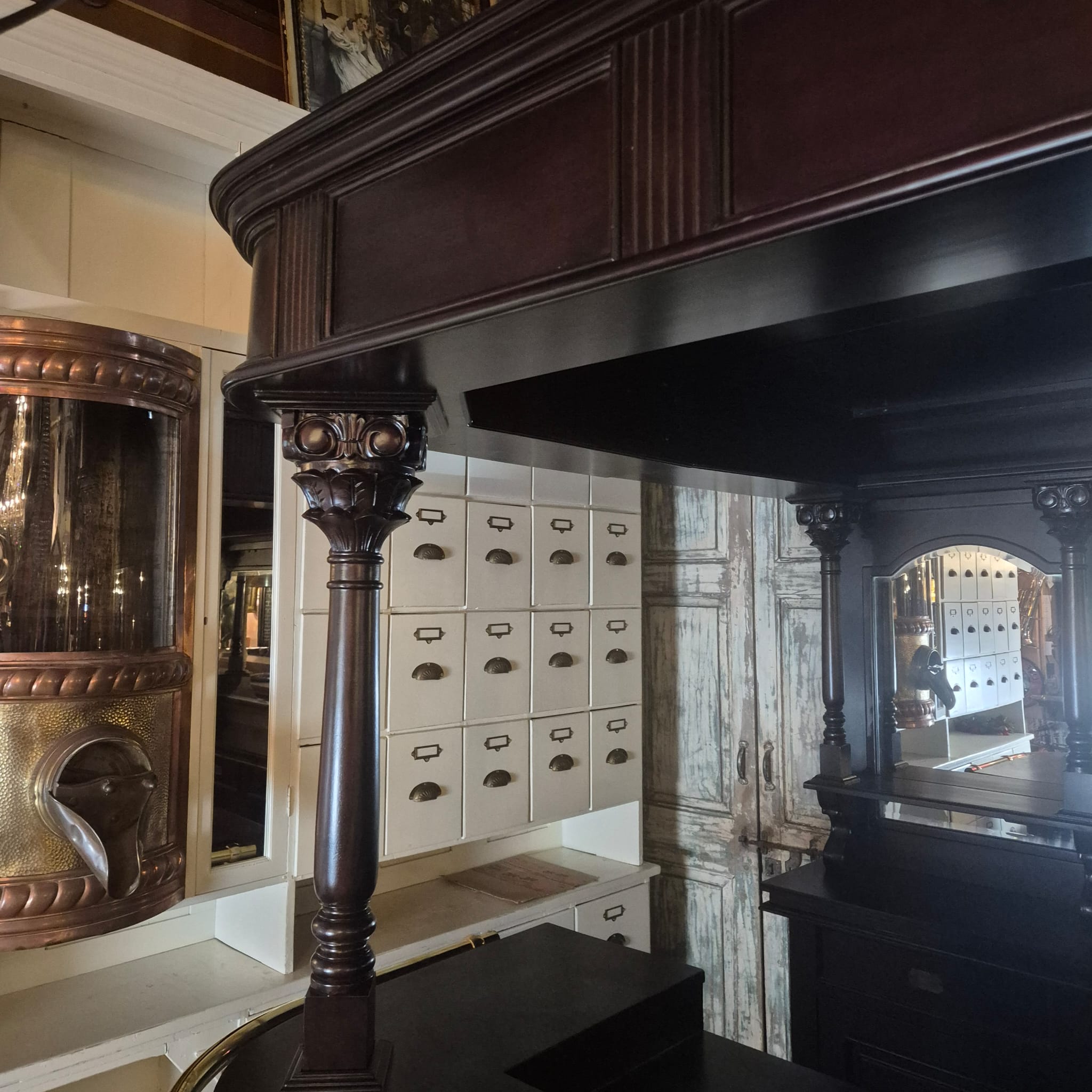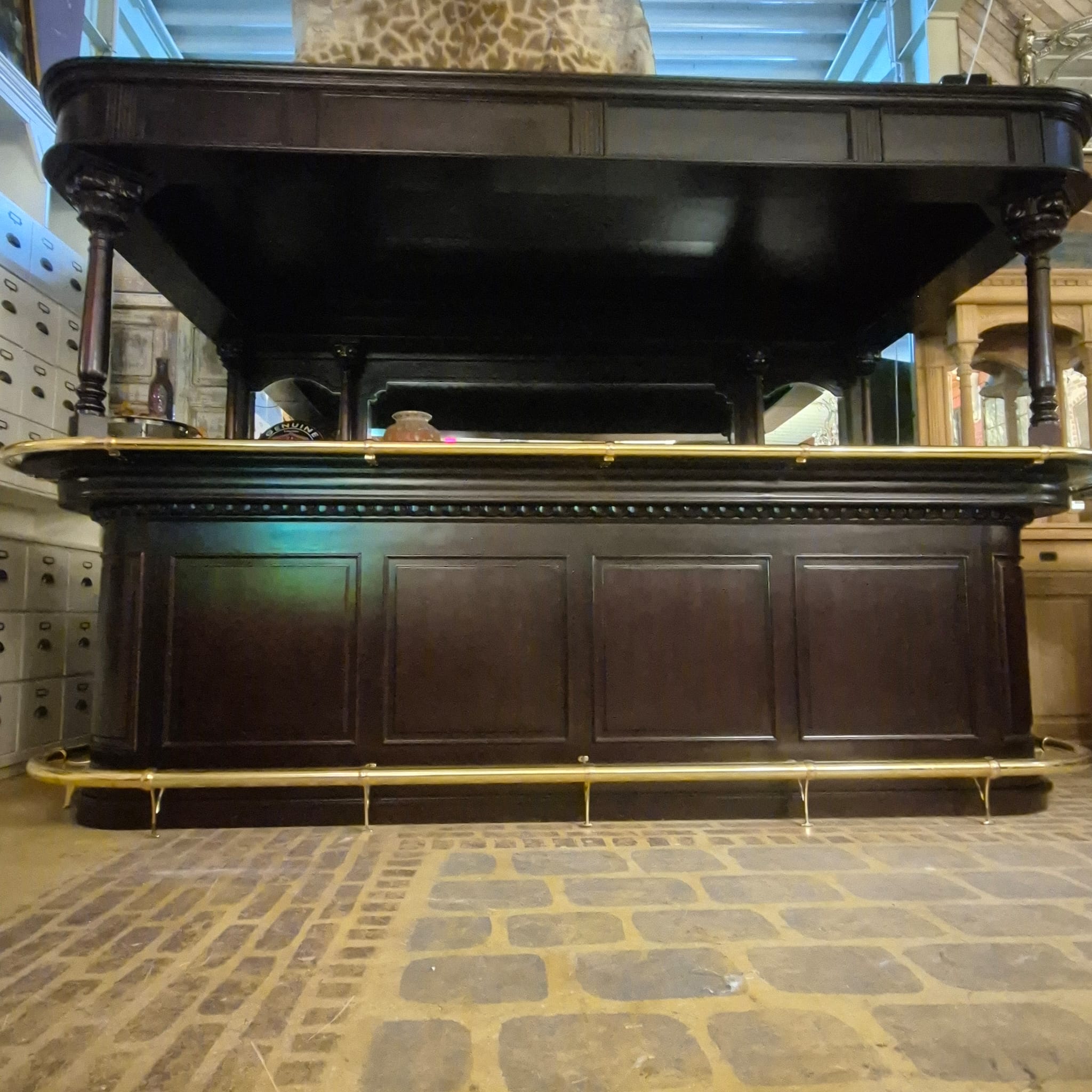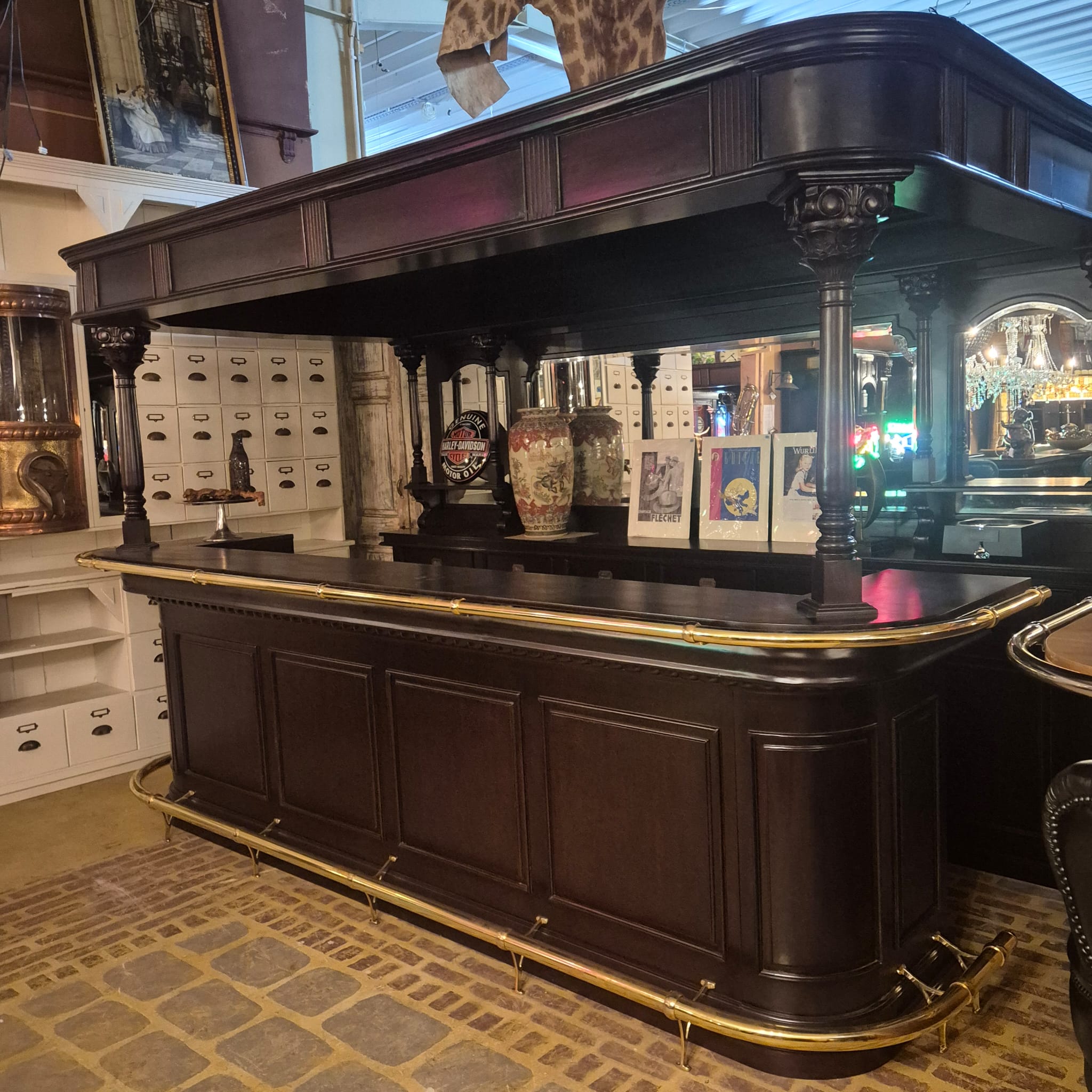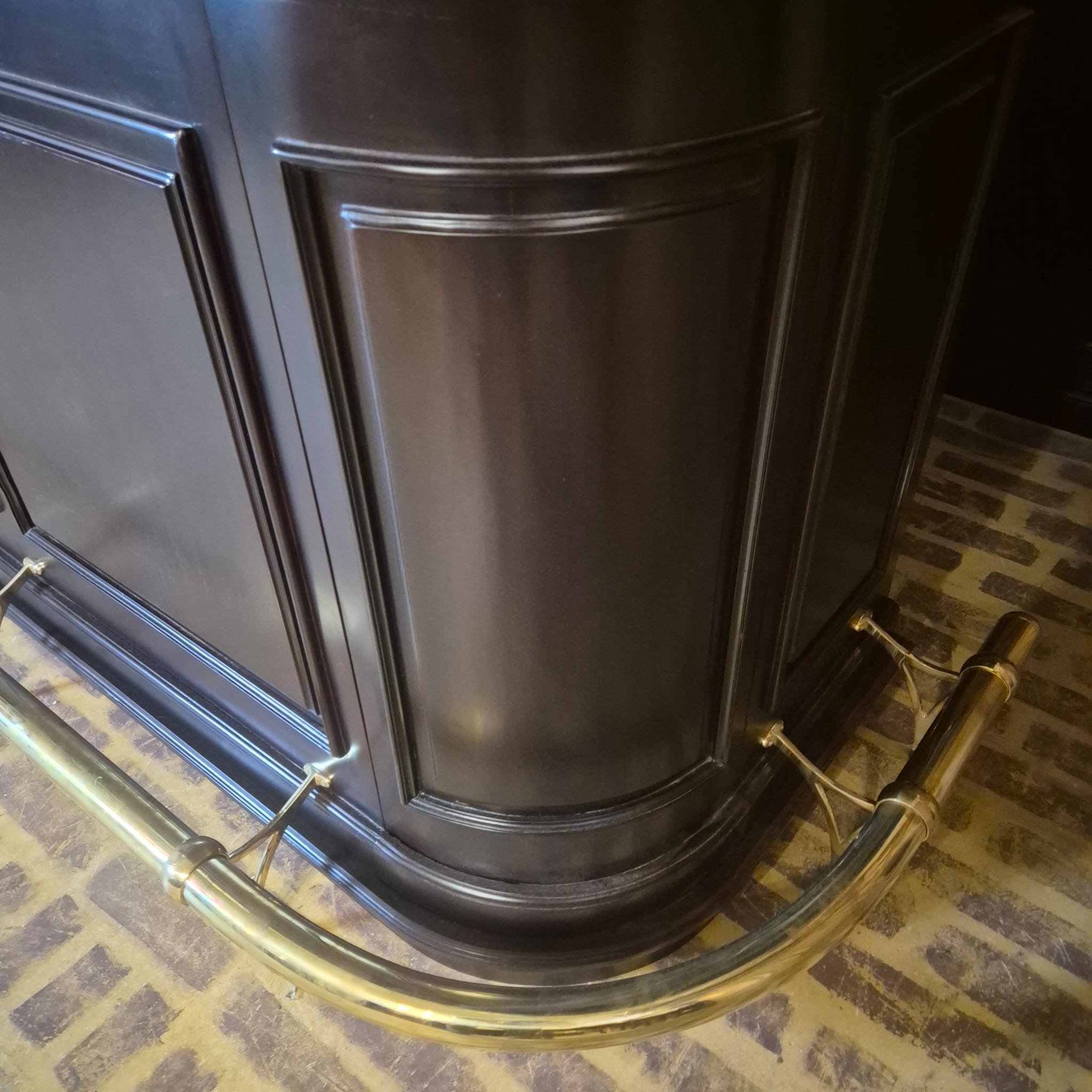 Huisbar gemaakt van massief hout, maakt indruk met zijn imposante uitstraling, evenals de stijlvolle achterkast met spiegels en zuilen. Demontabel (8-delig).