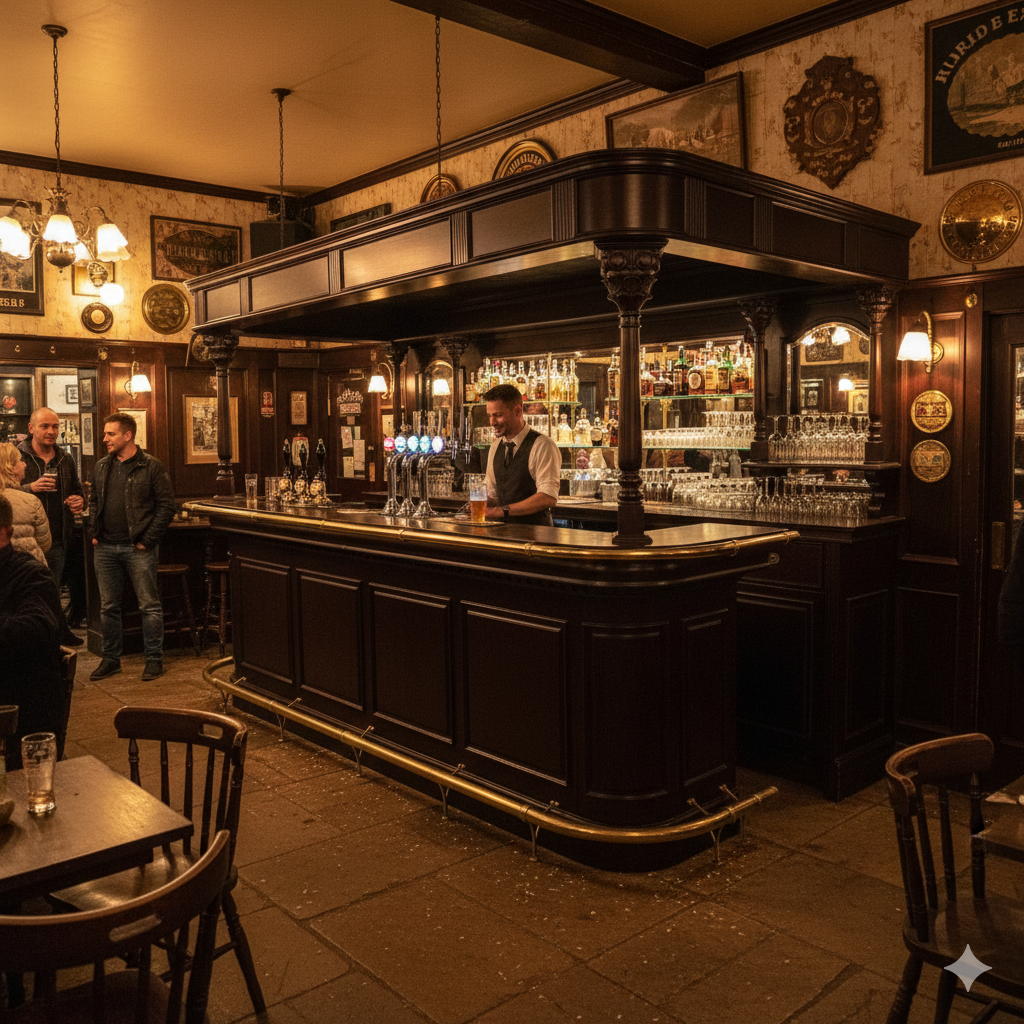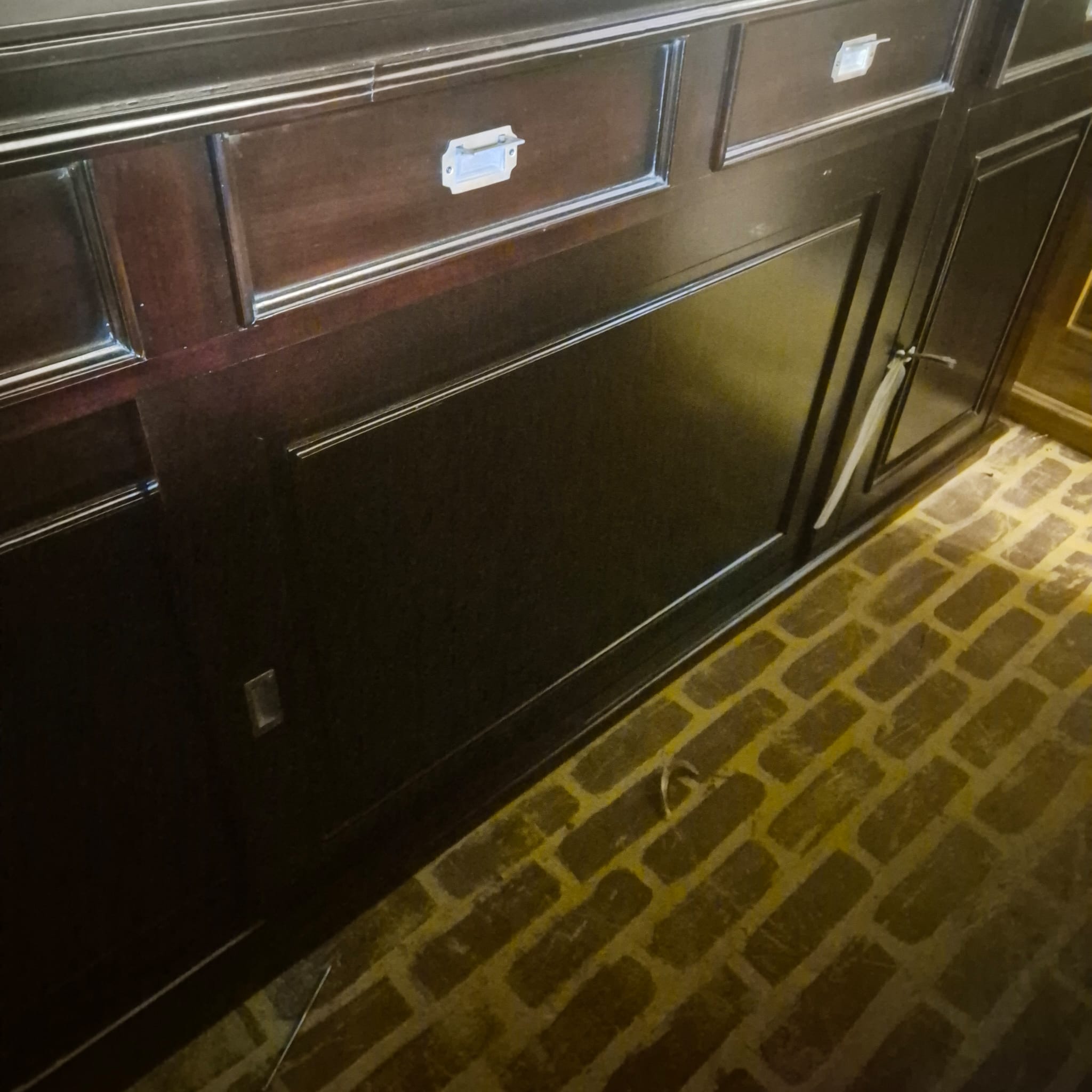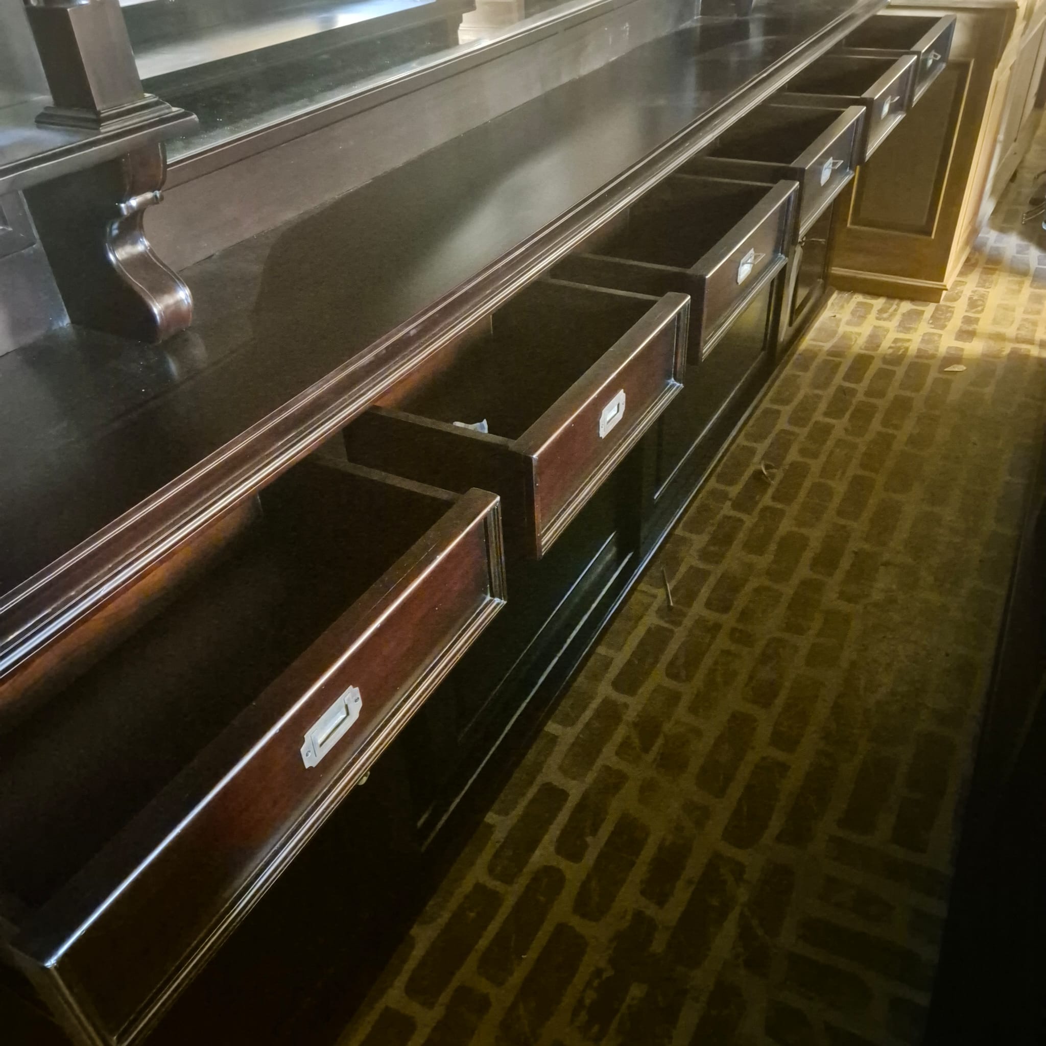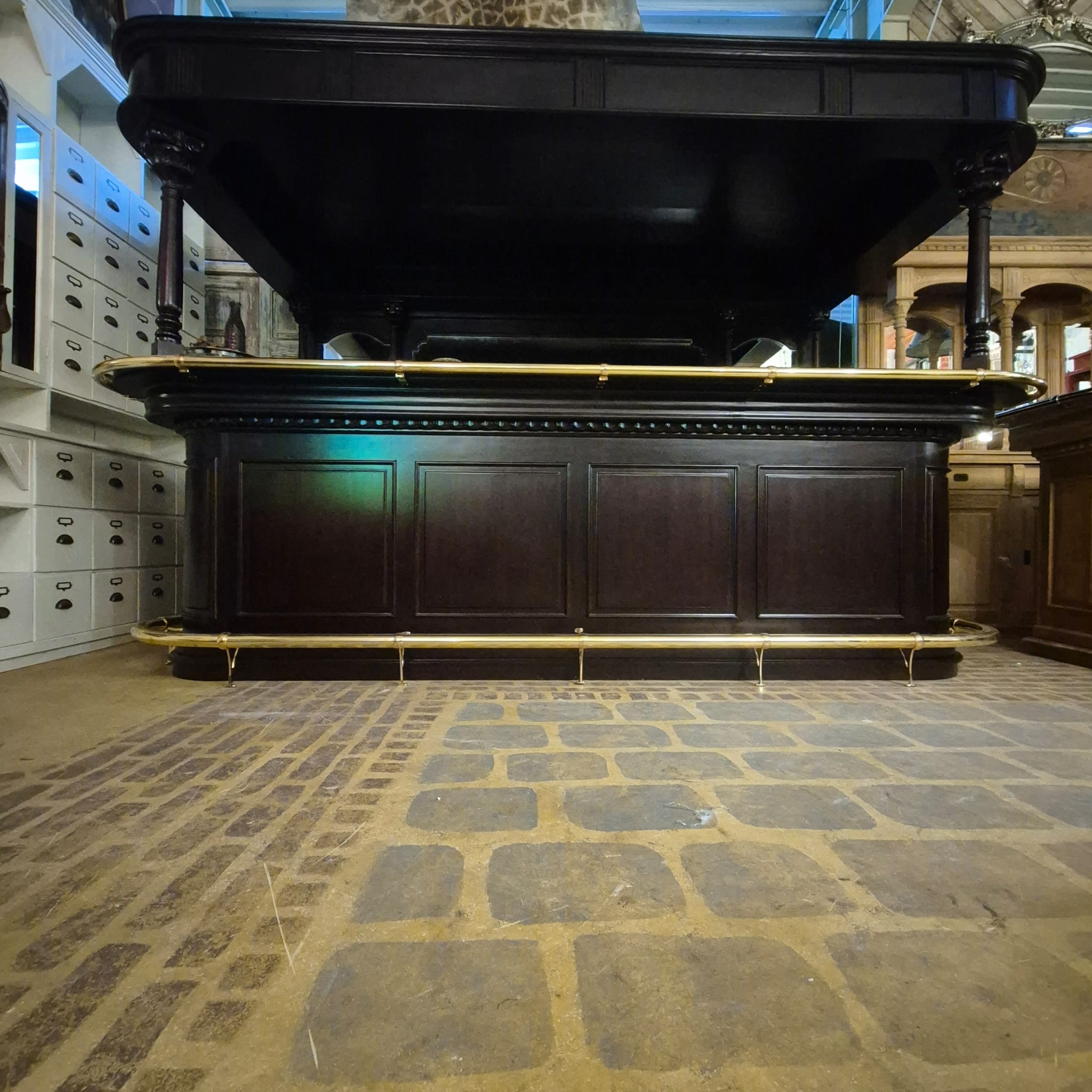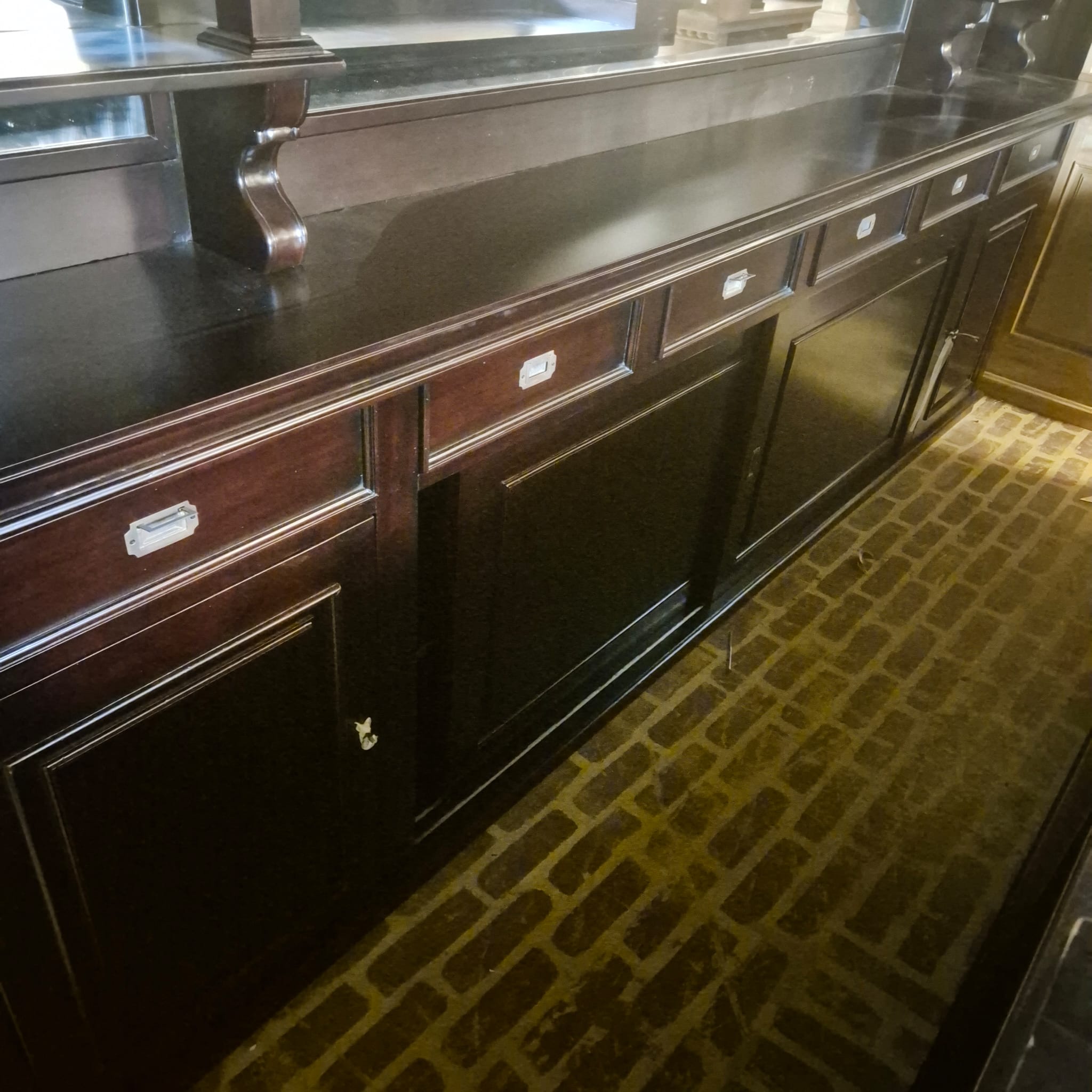 Huisbar gemaakt van massief hout, maakt indruk met zijn imposante uitstraling, evenals de stijlvolle achterkast met spiegels en zuilen. Demontabel (8-delig).