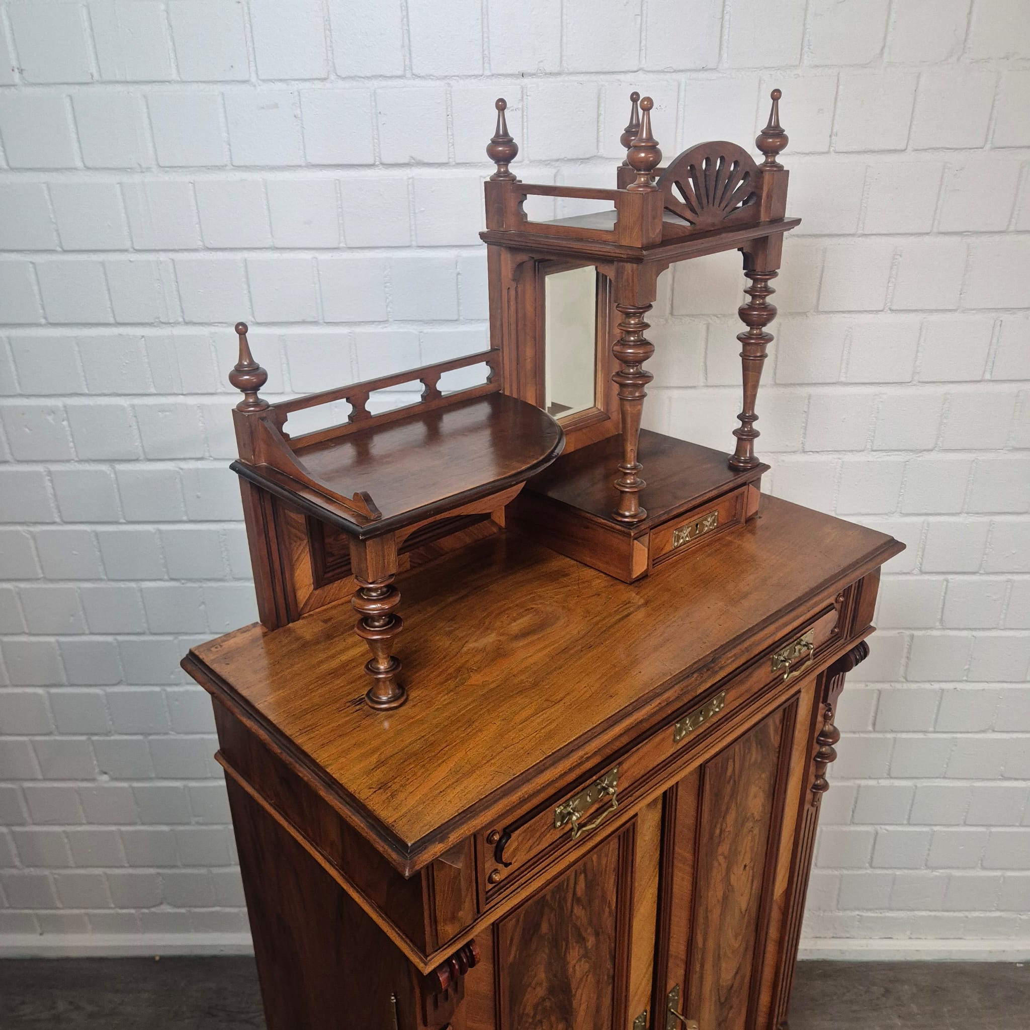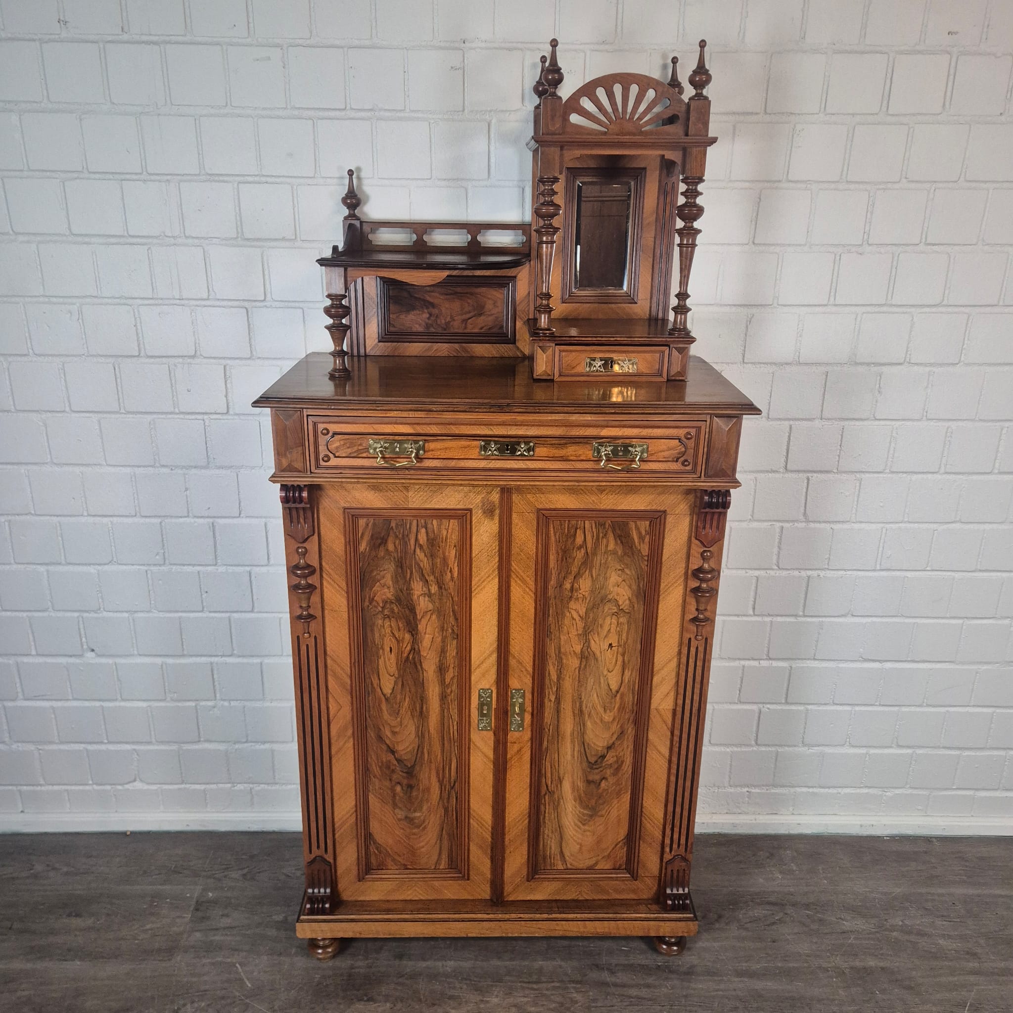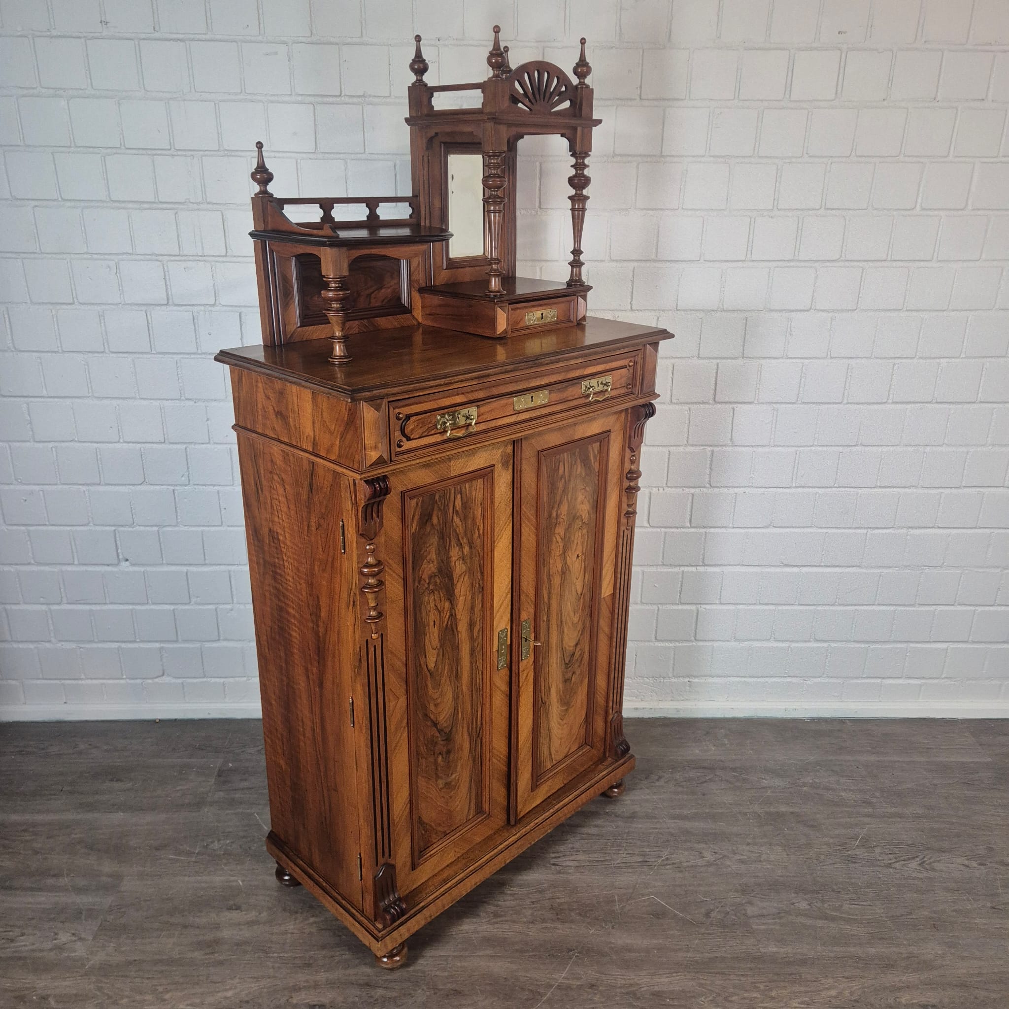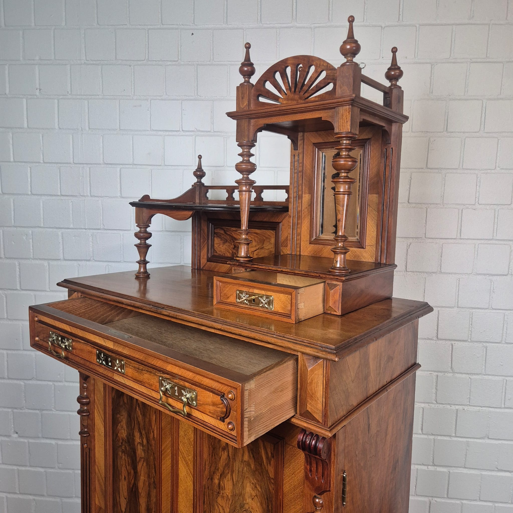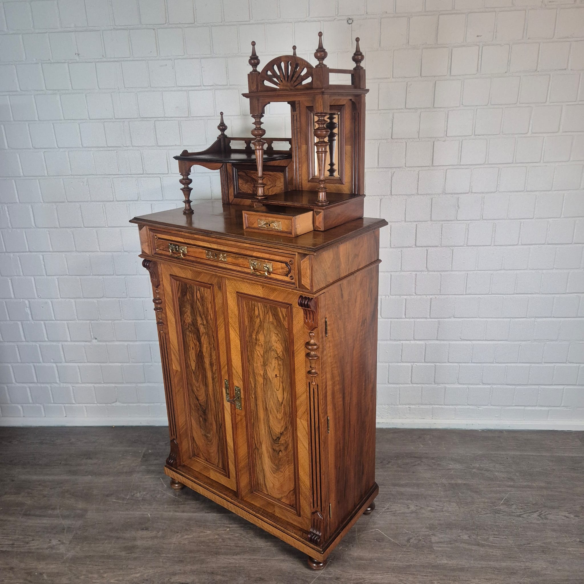 Jugendstil Vertiko met Opzetstuk 1900 Notenhout