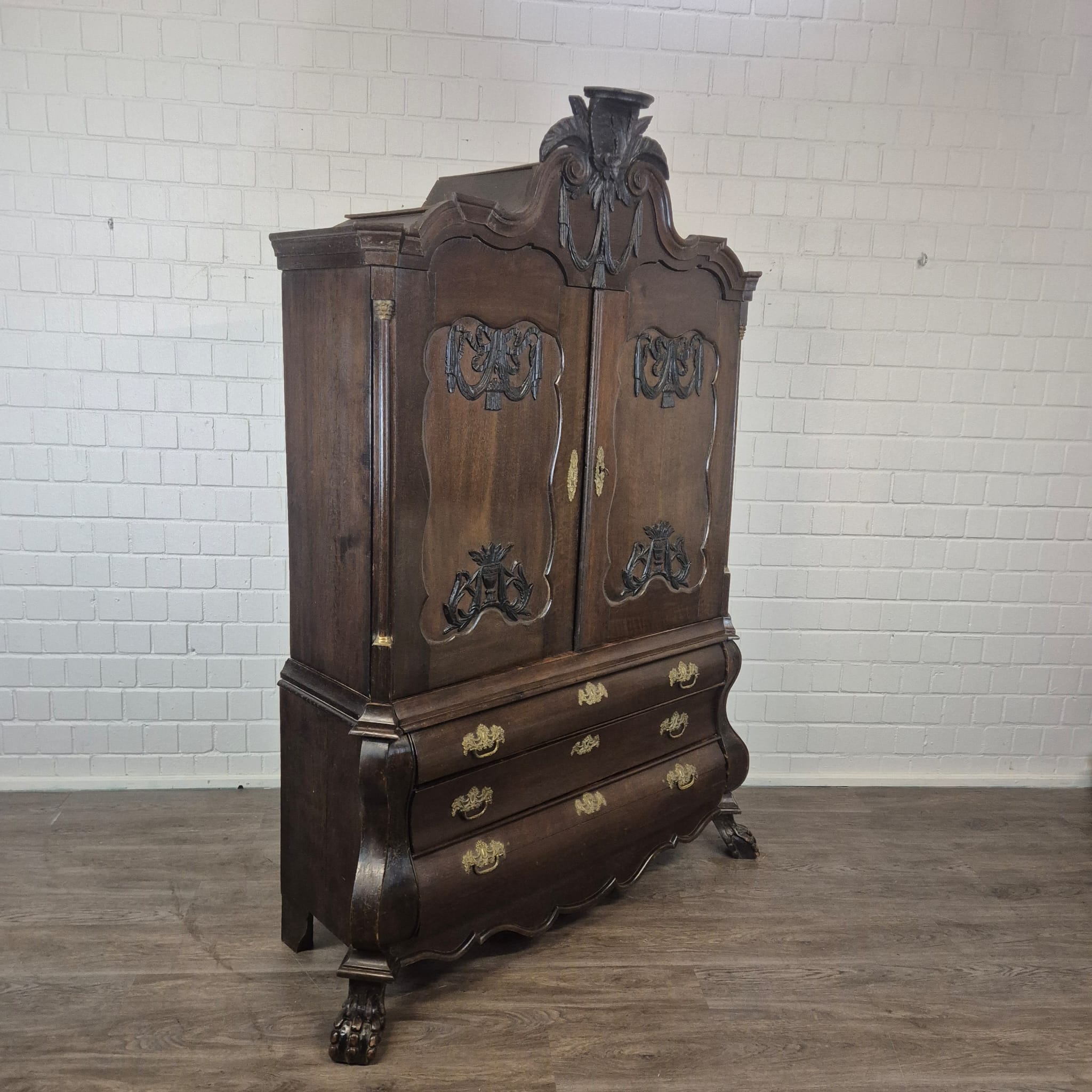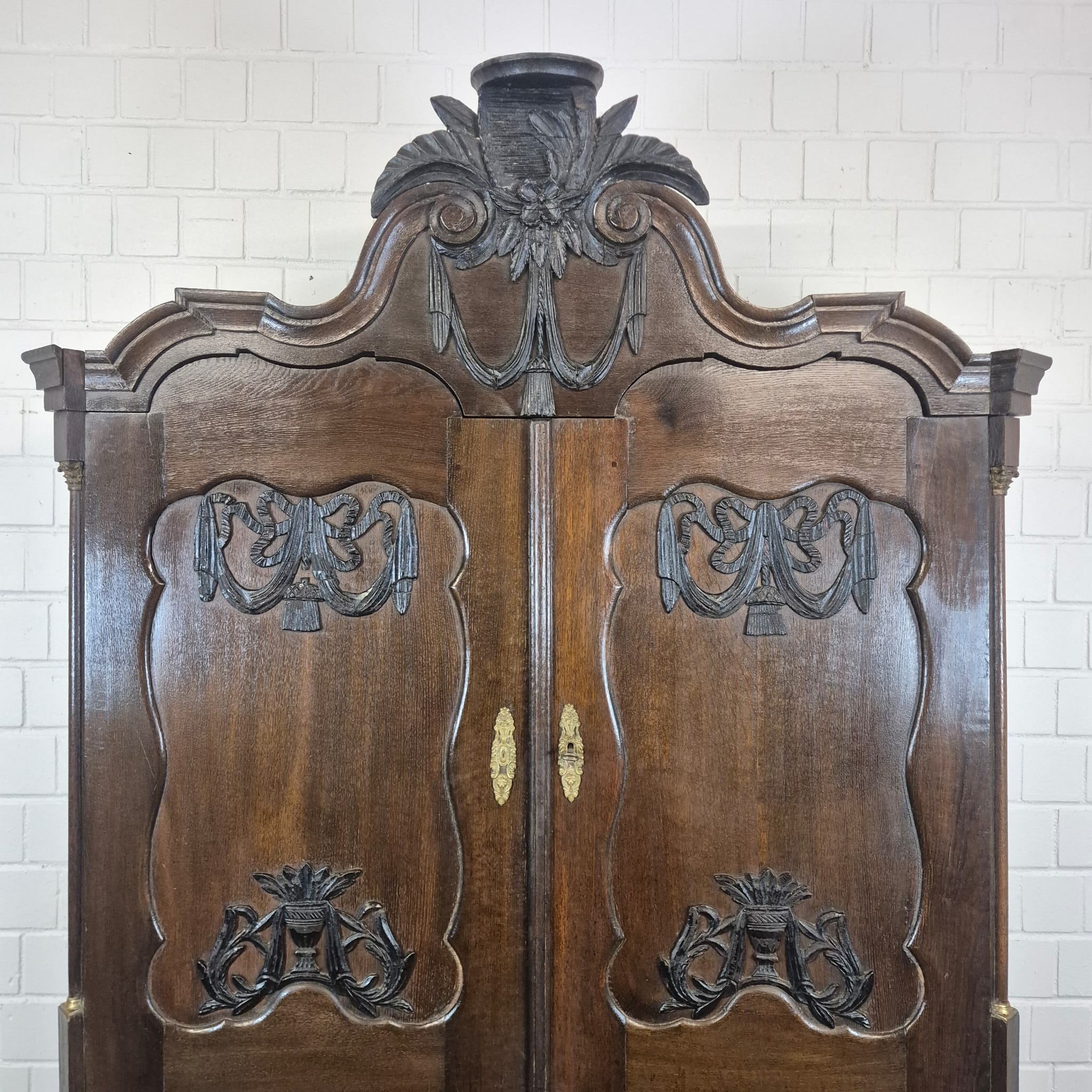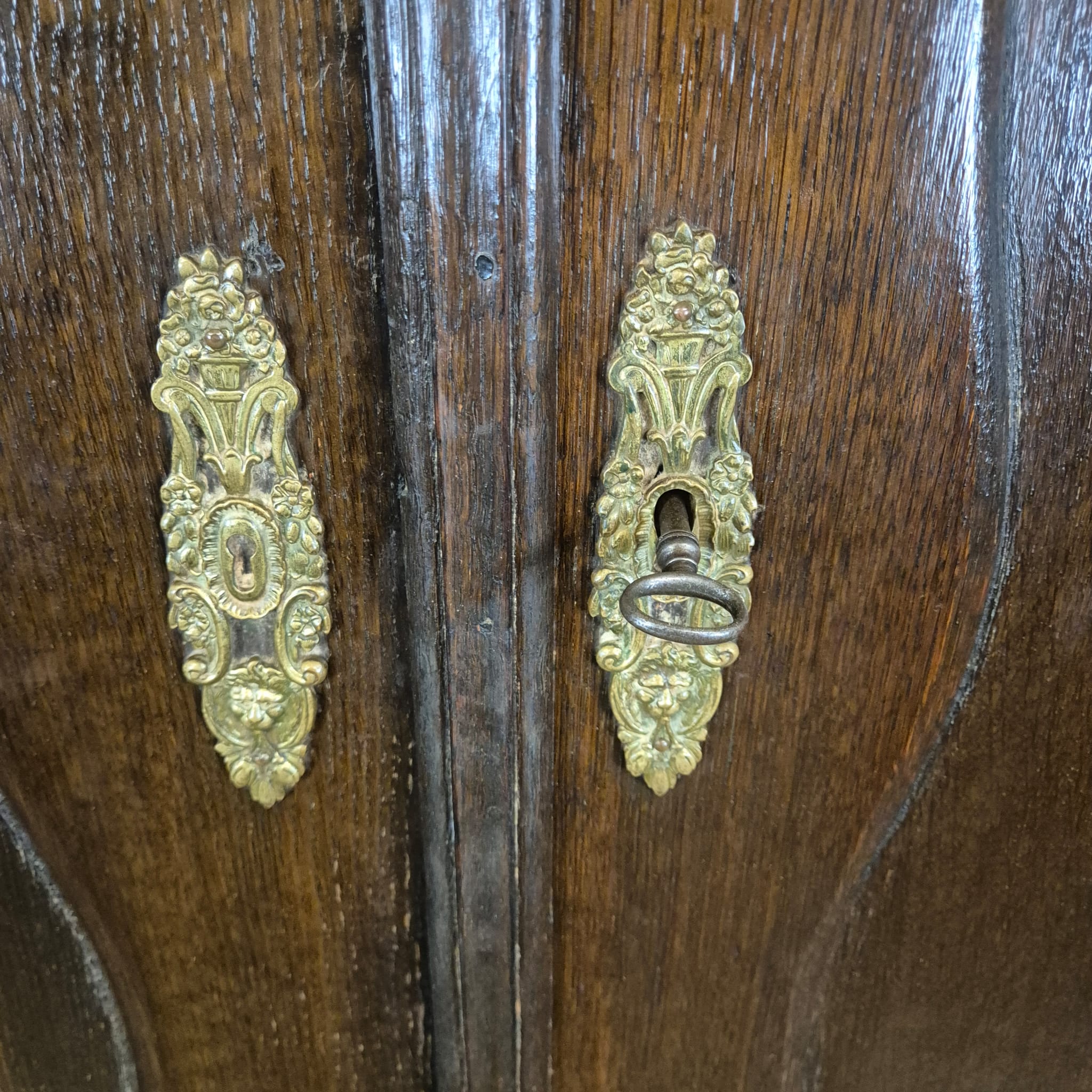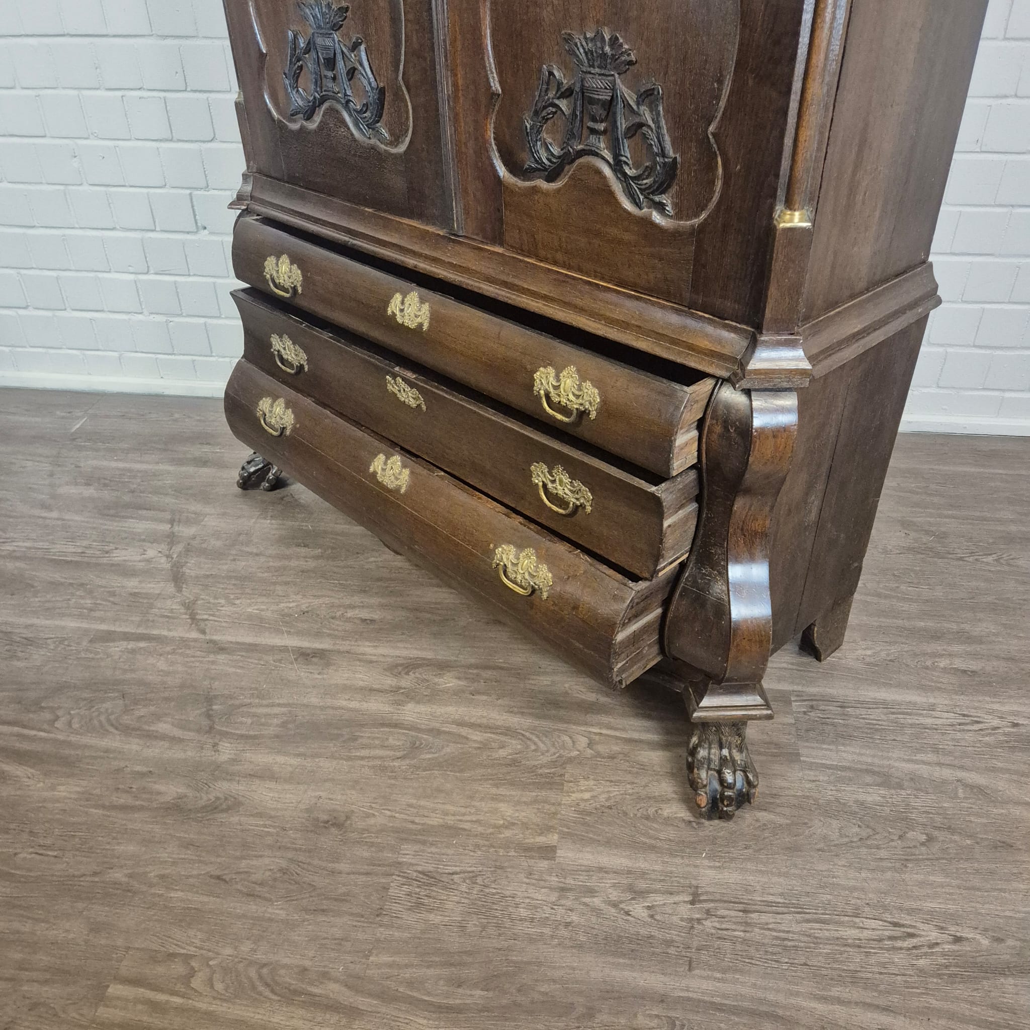 Gerestaureerde barok kast gemaakt van massief eiken (gewaxt) uit ca. 1770. De kast is in een goede staat en heeft lichte gebruikssporen. Demontabel (10-delig).